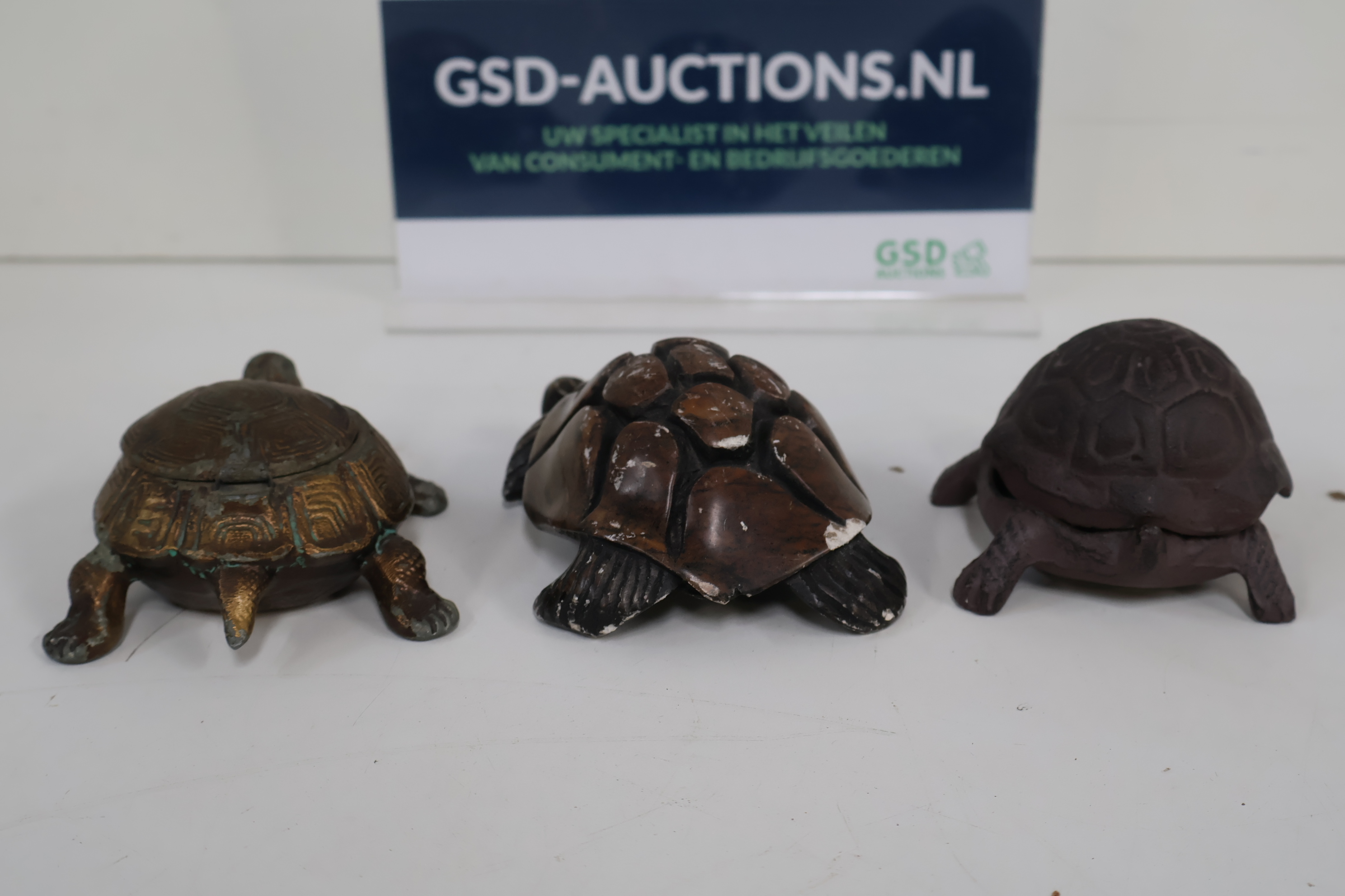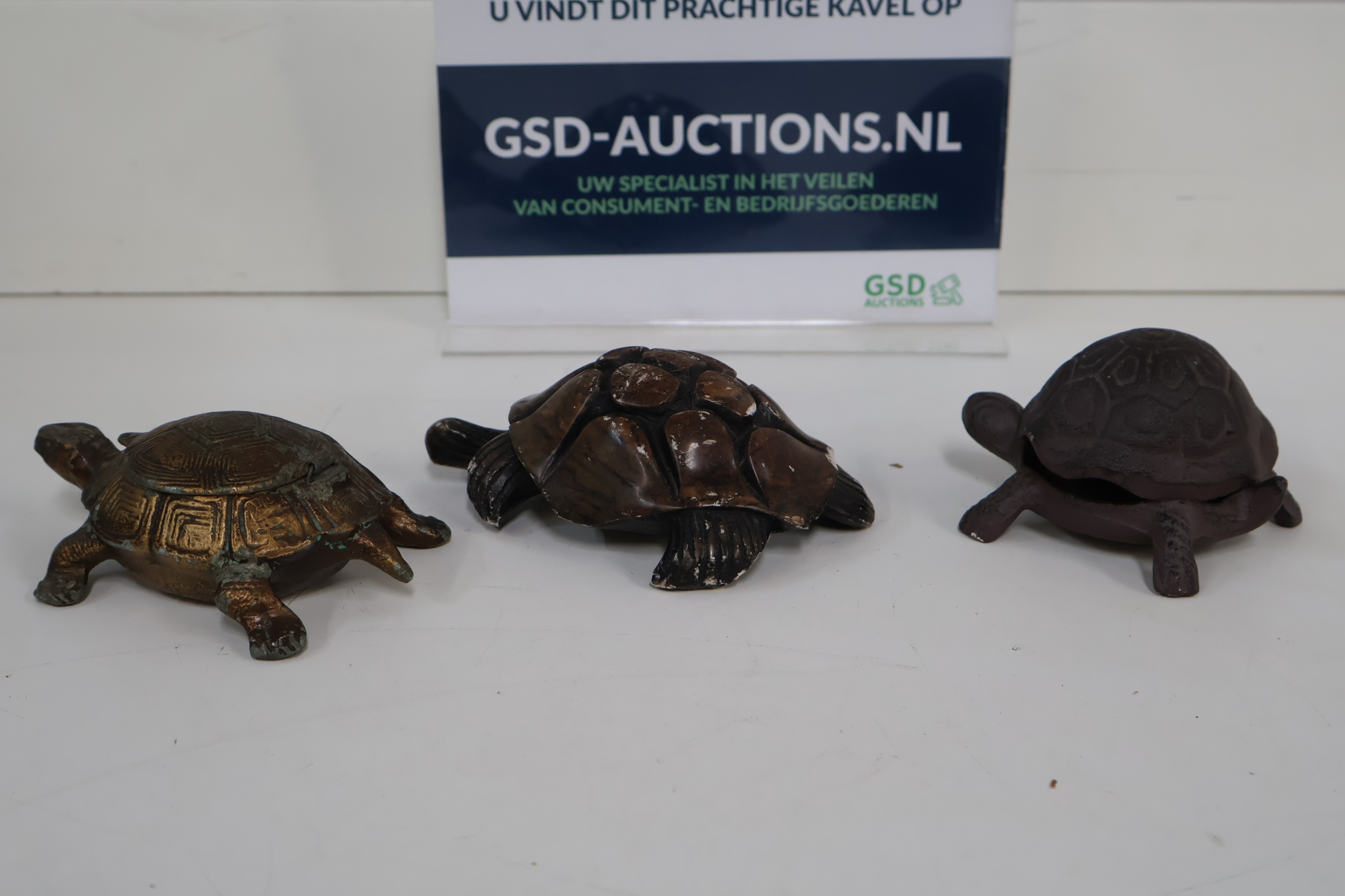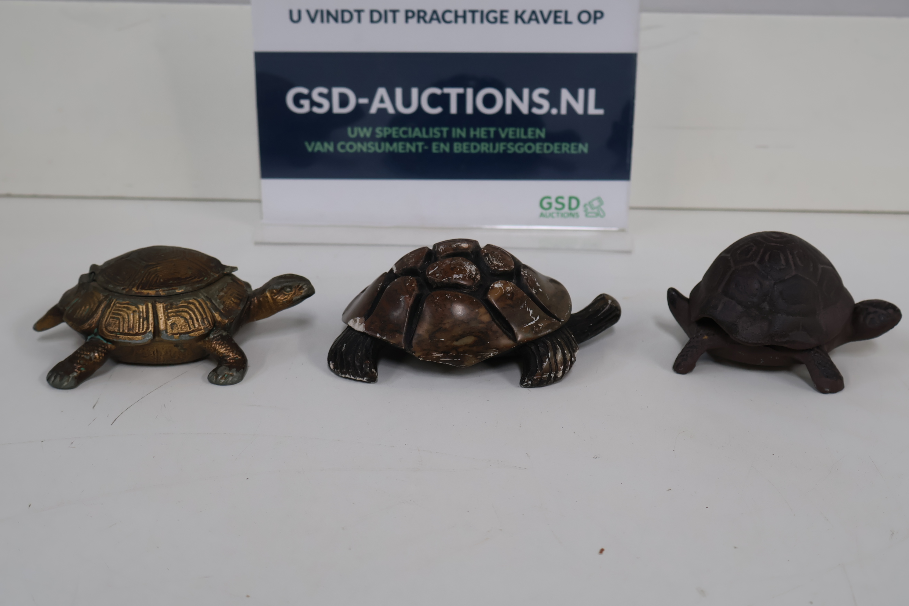 3 Decoratieve Schildpadden - Gietijzer, Steen, Messing