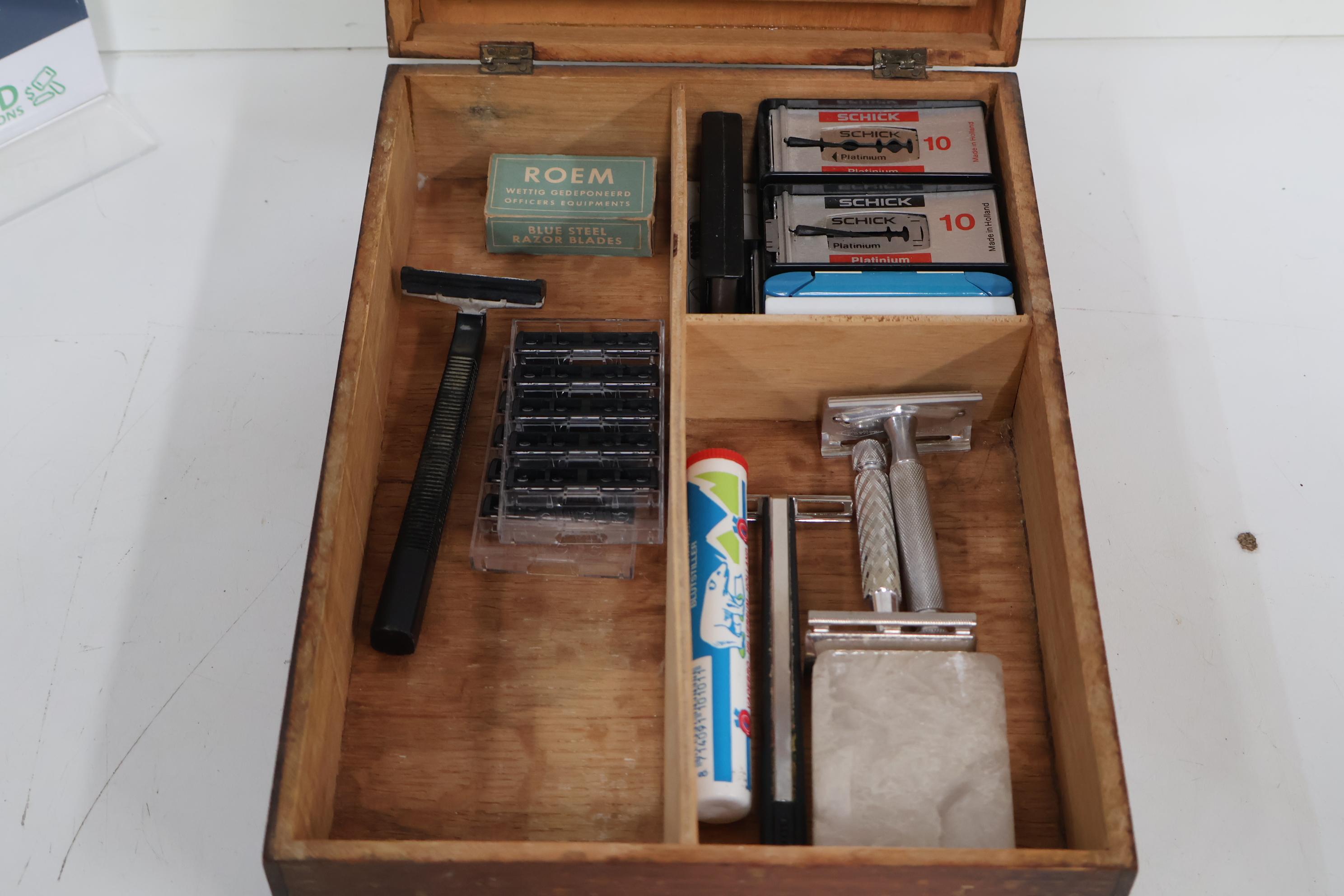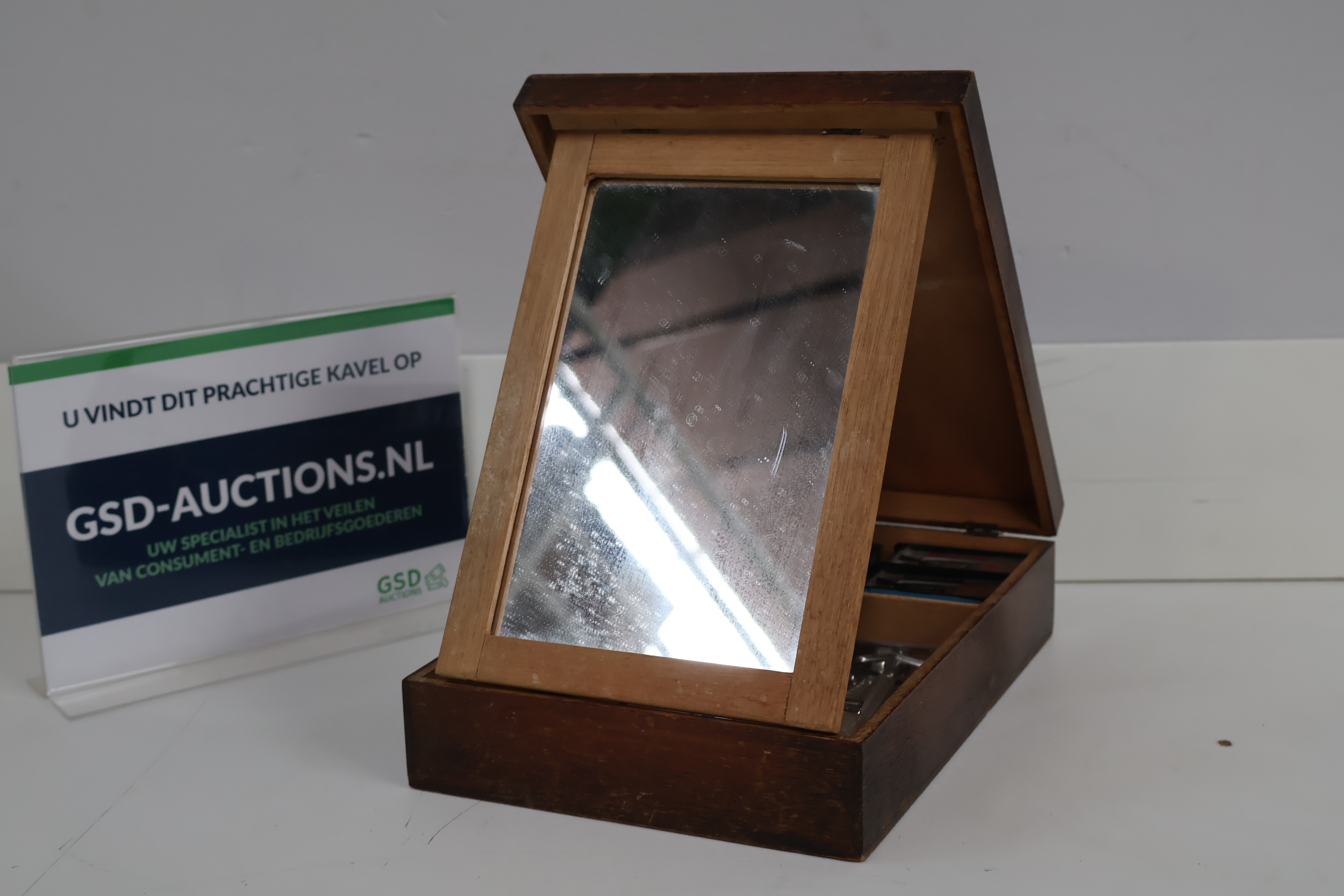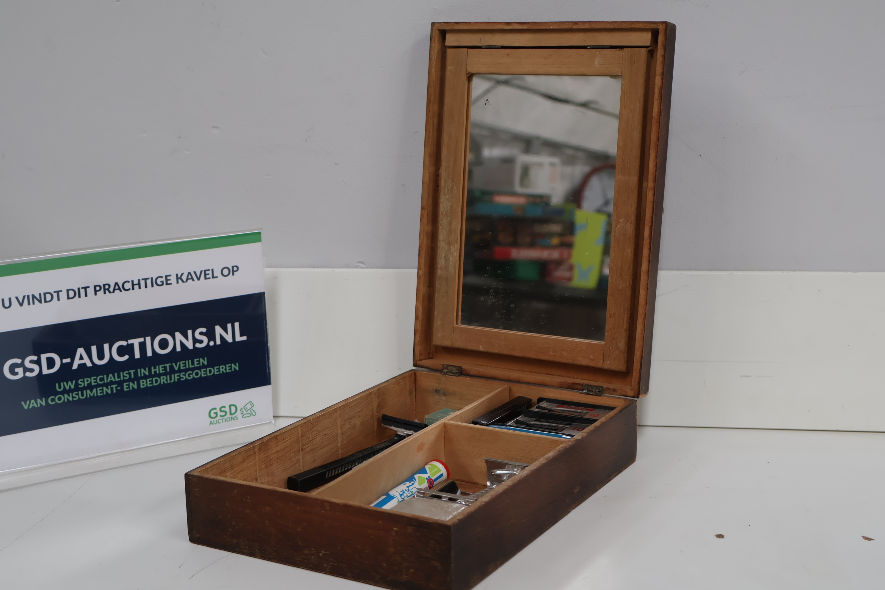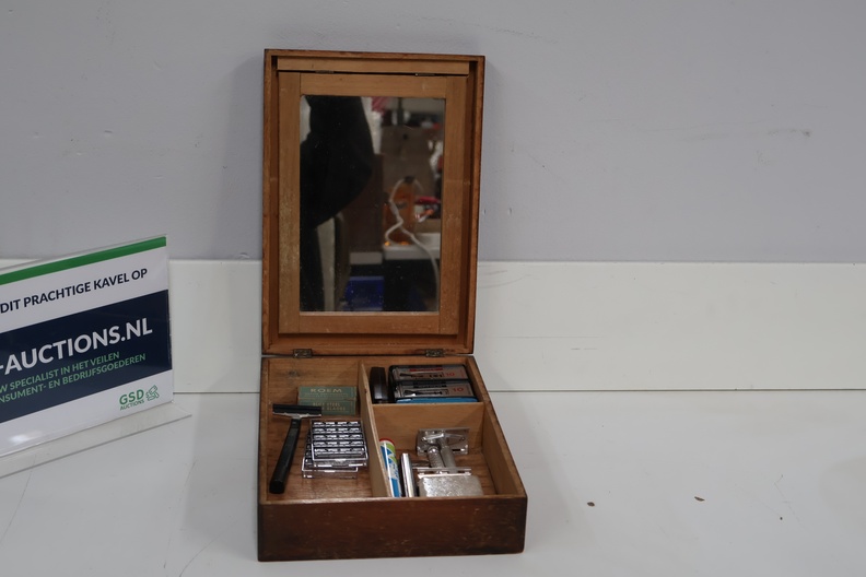 Vintage Scheerdoos, Kist - Met Spiegel en Inhoud