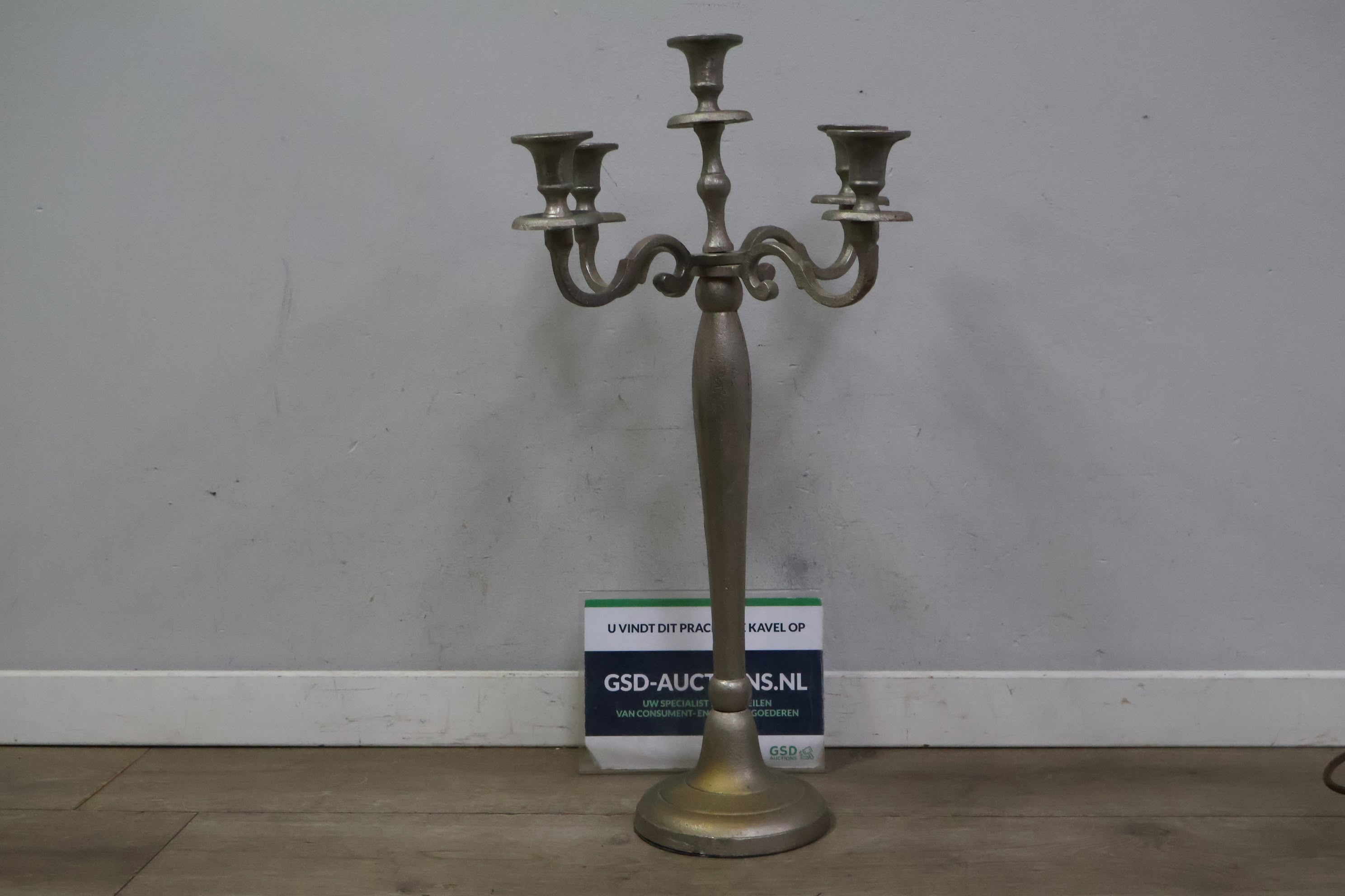 Brocante Metalen 5-Armige Kandelaar'