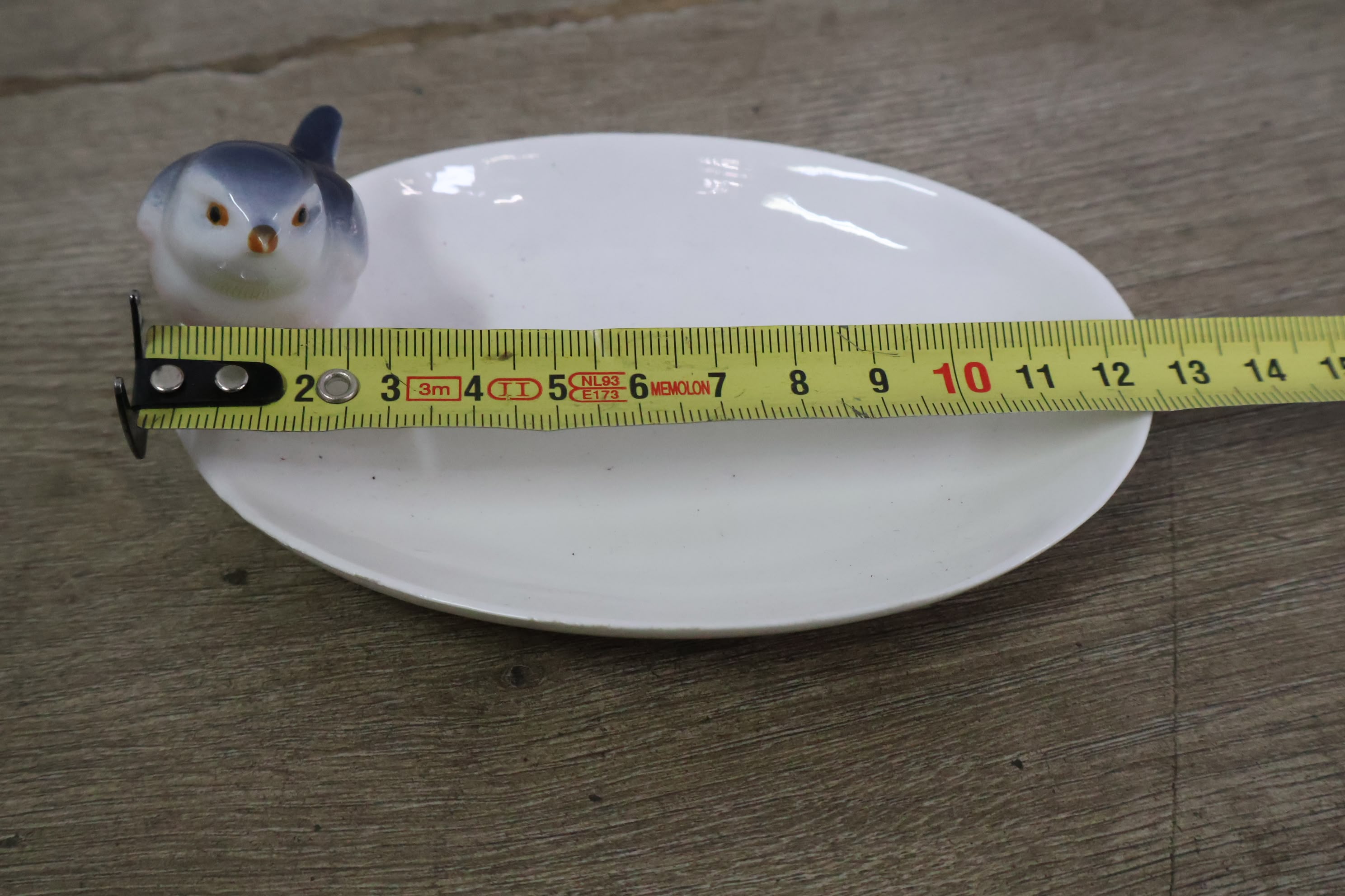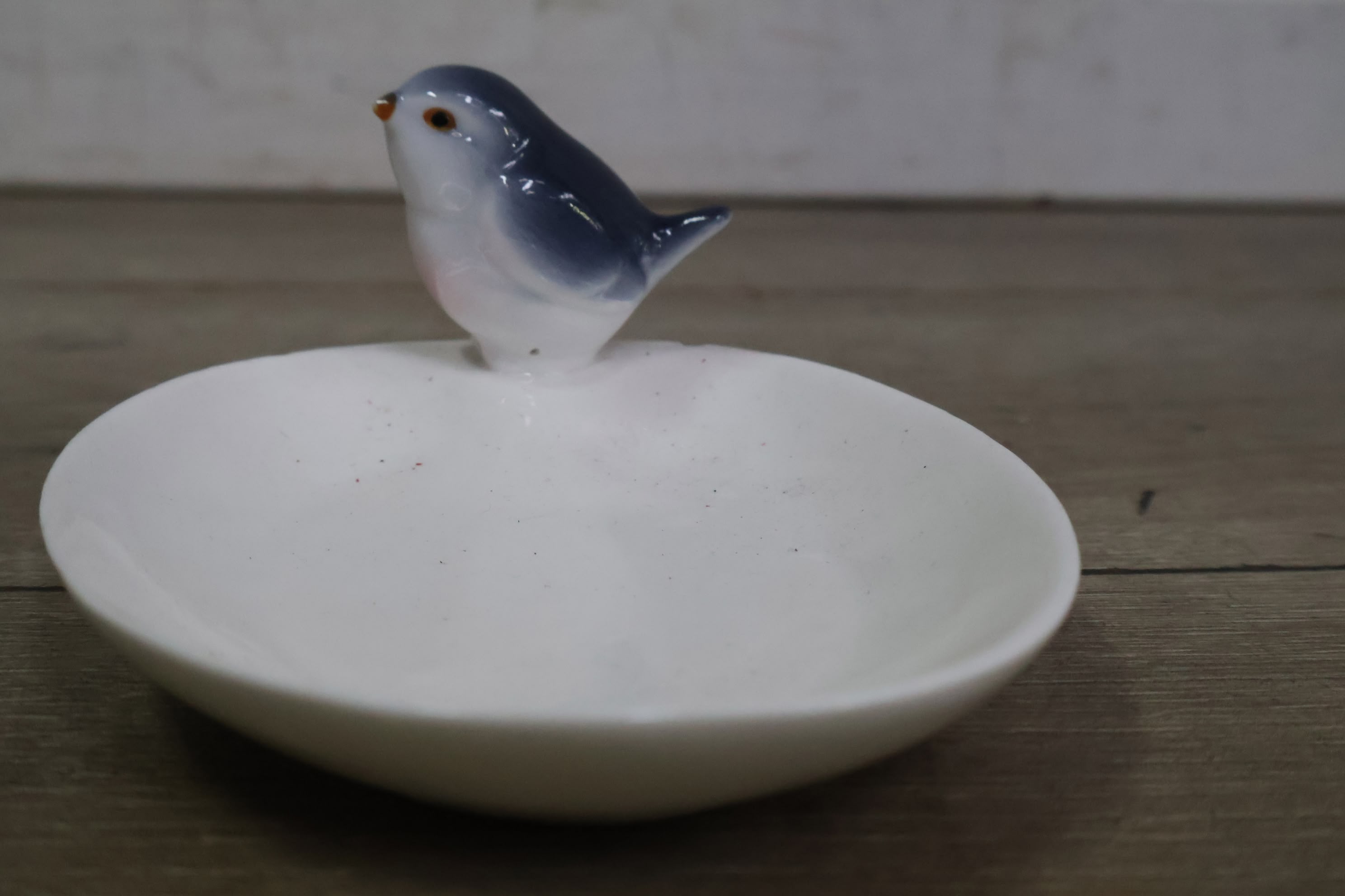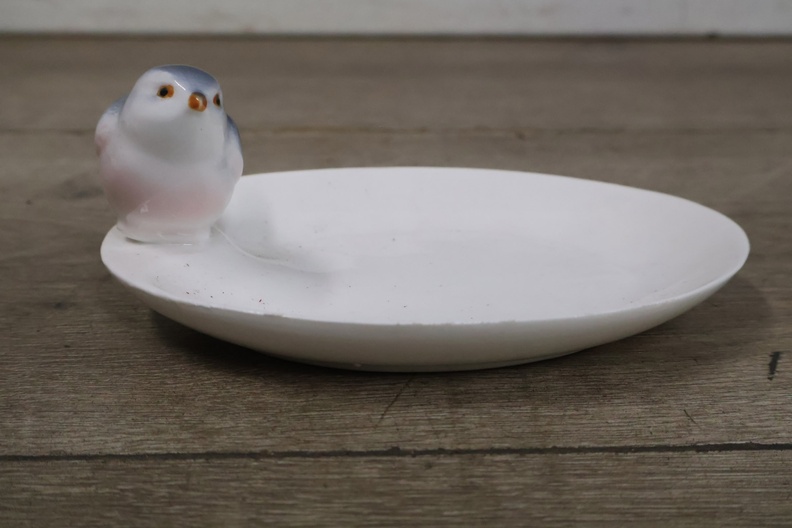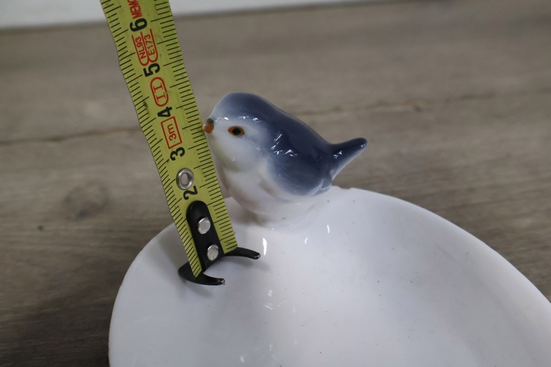 Porseleinen Baby in Kribbe met Vogeldrinkbakje'