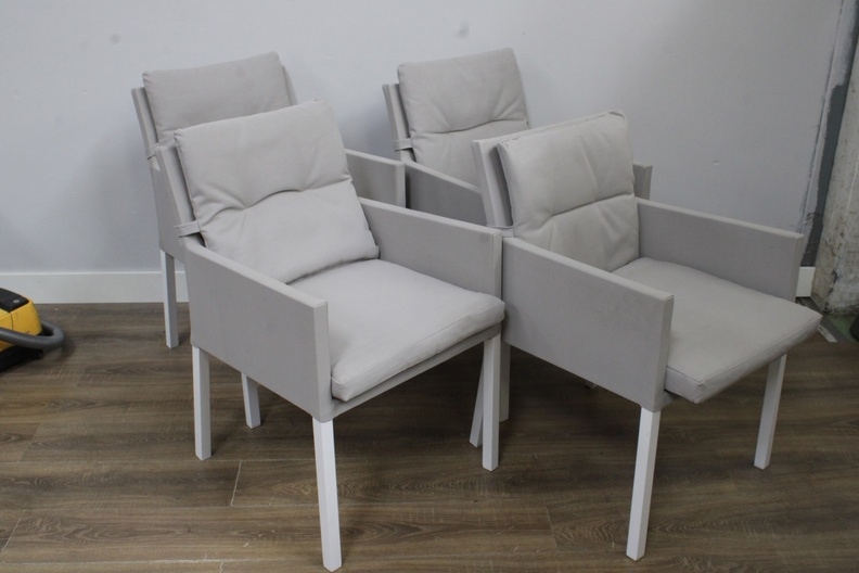 Set van 4 Wit/Grijze Tuinstoelen met Kussens