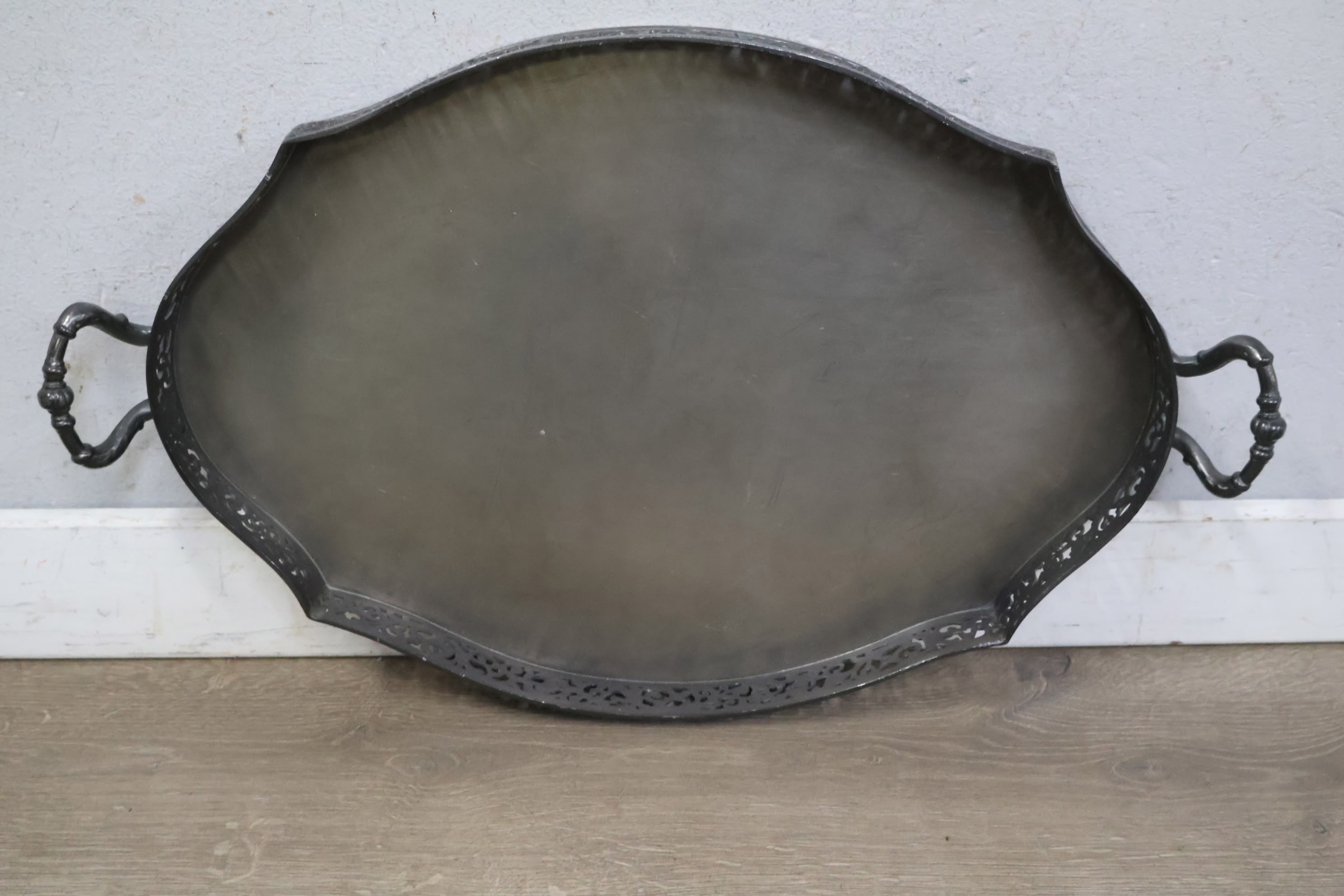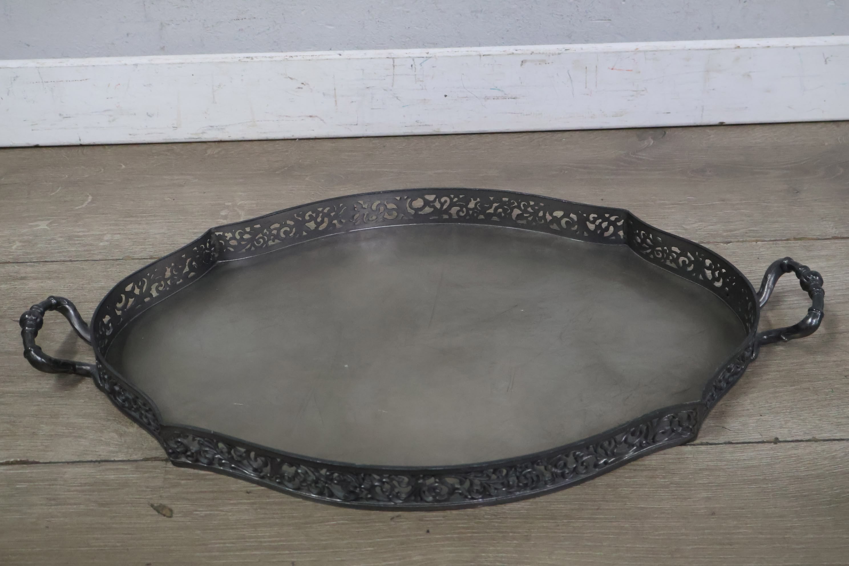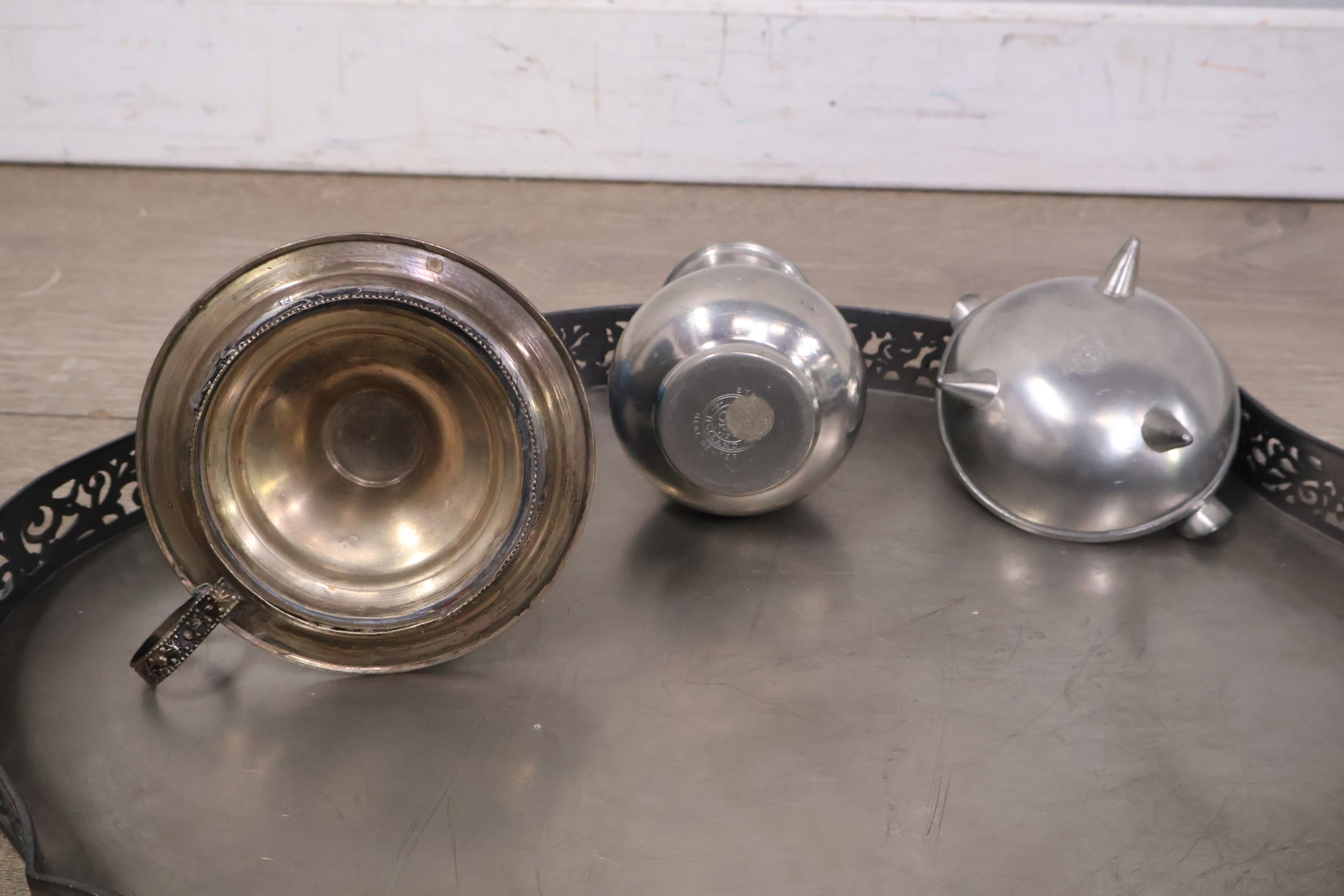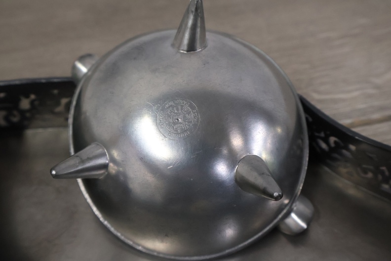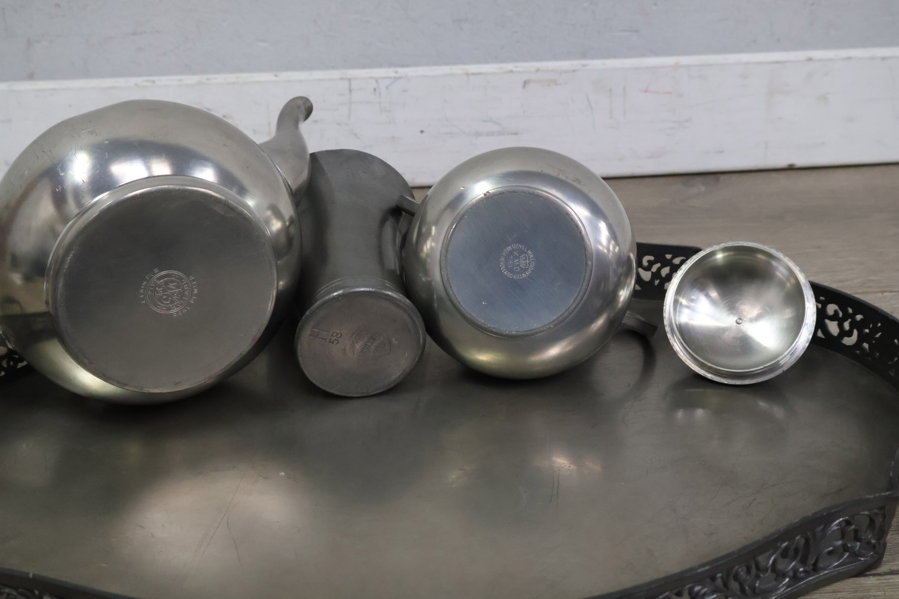 Set van 6 Stuks Antiek Tin op Dienblad