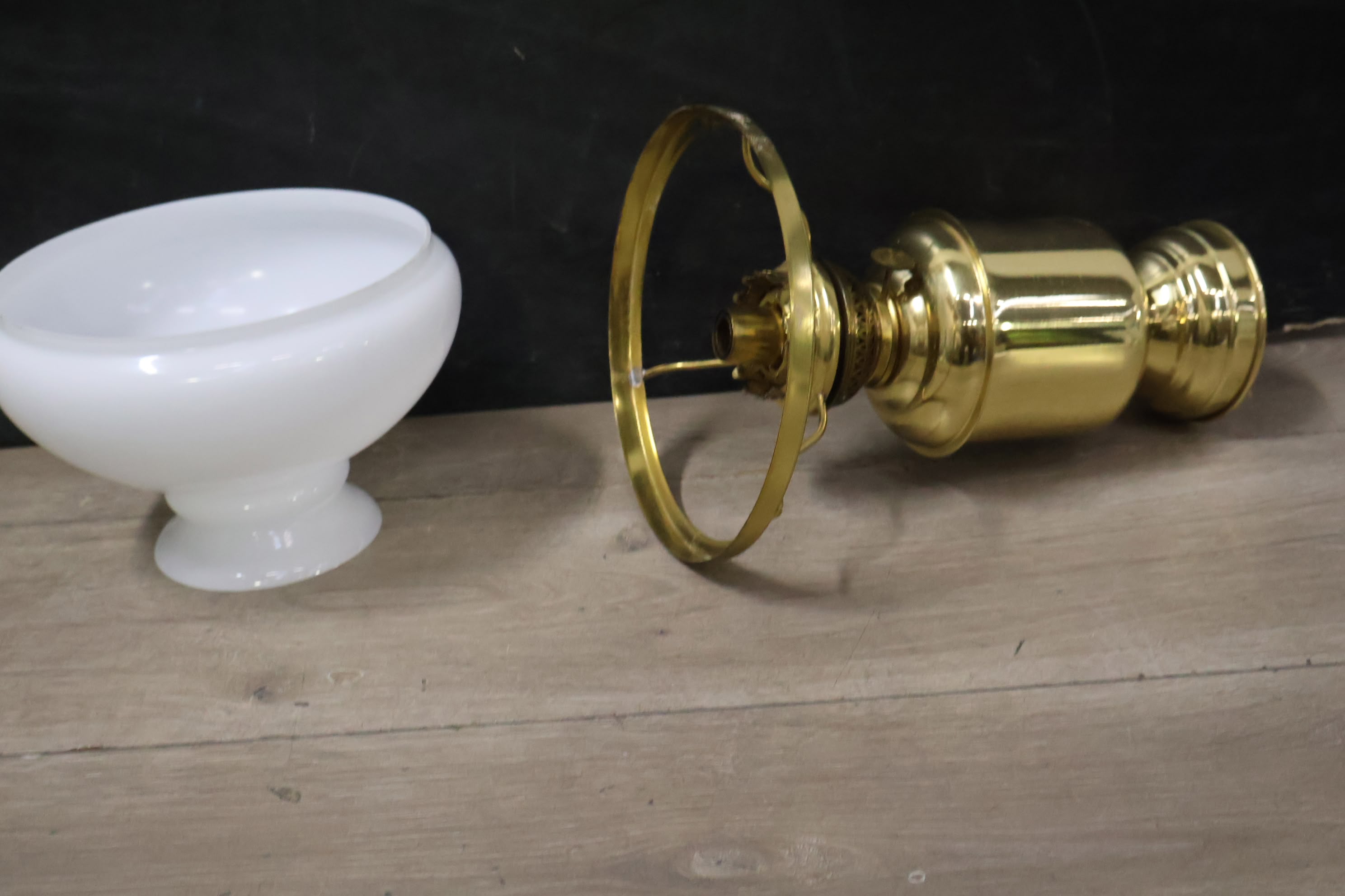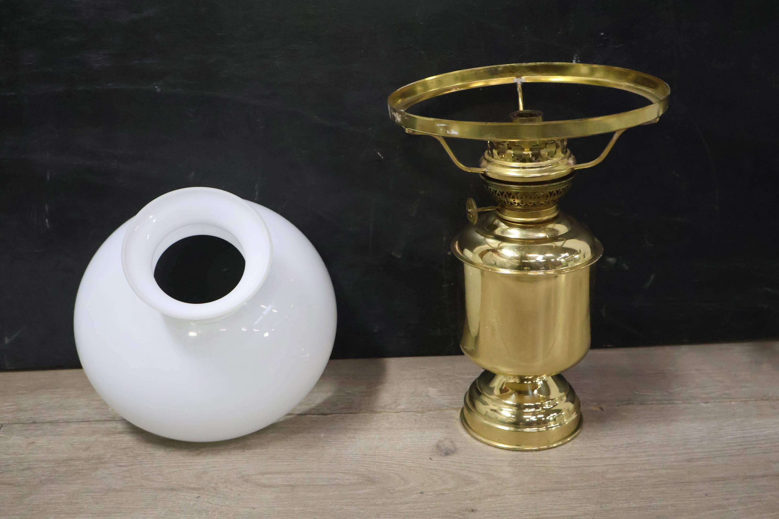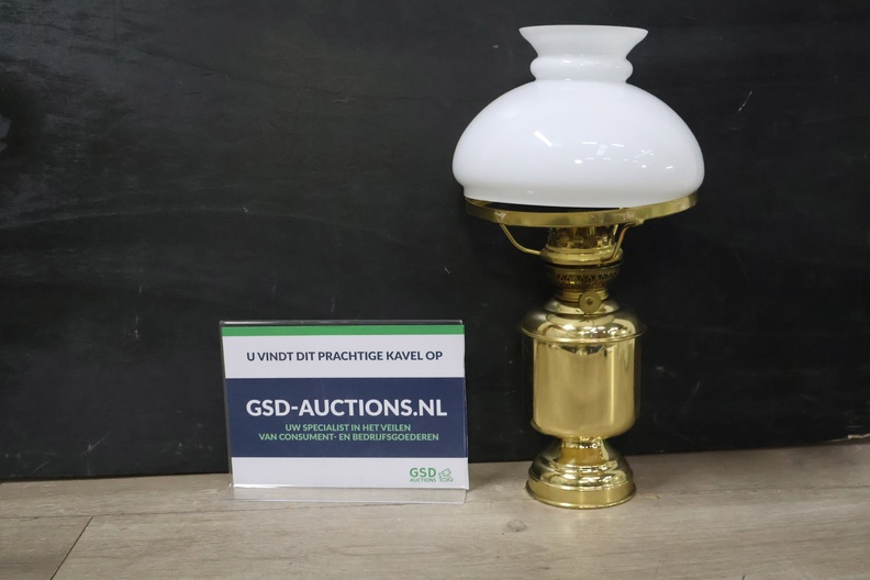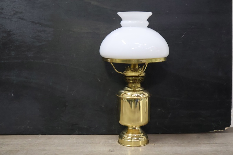 Messing Olielampje met Melkglazen Kap