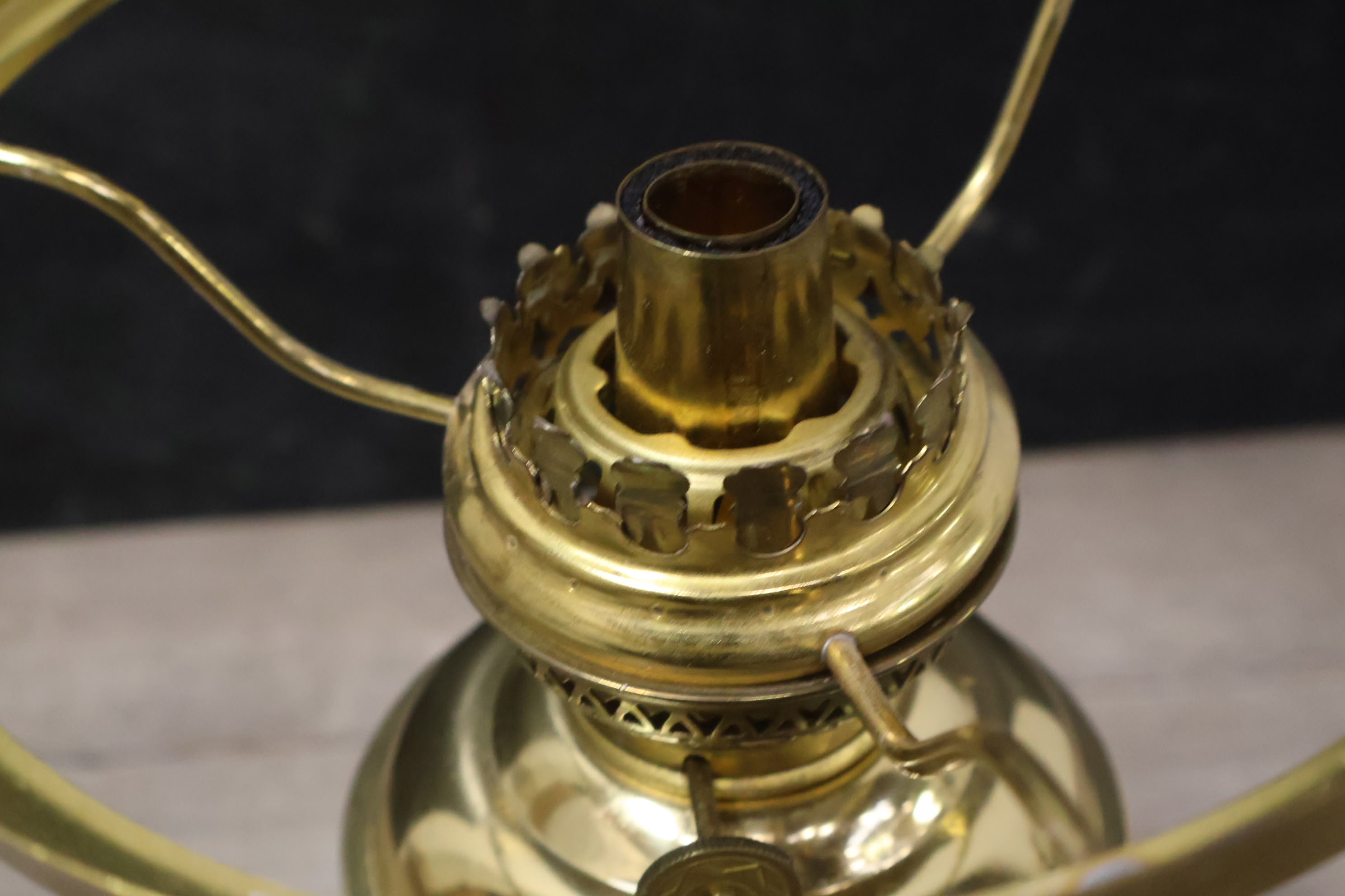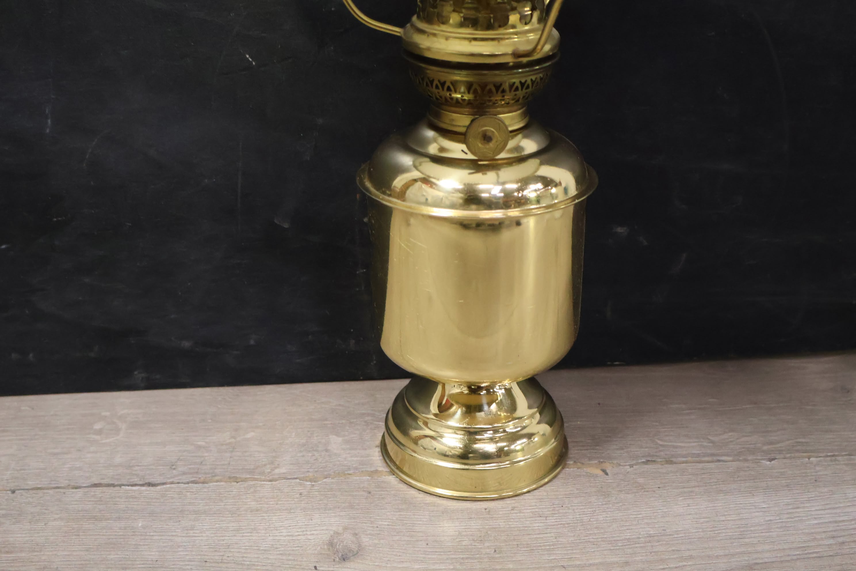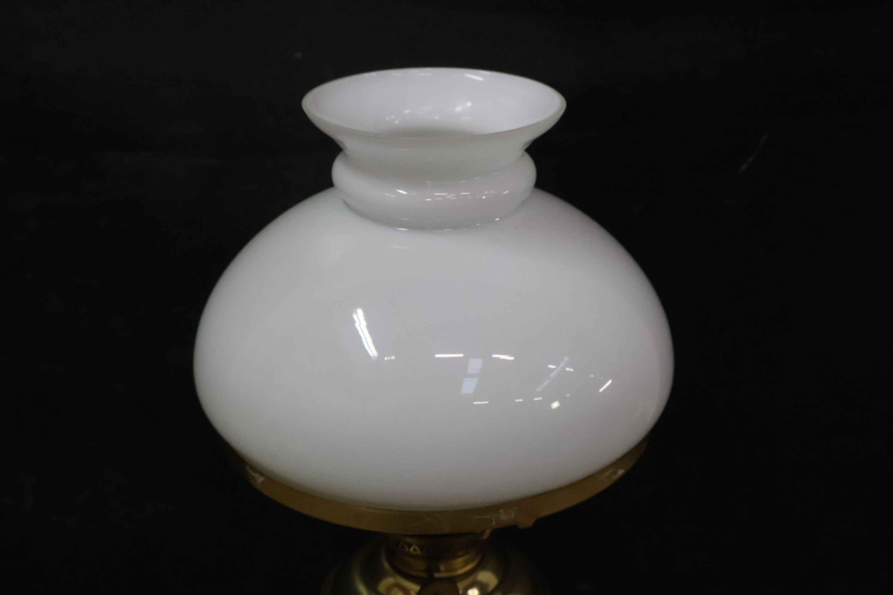 Messing Olielampje met Melkglazen Kap