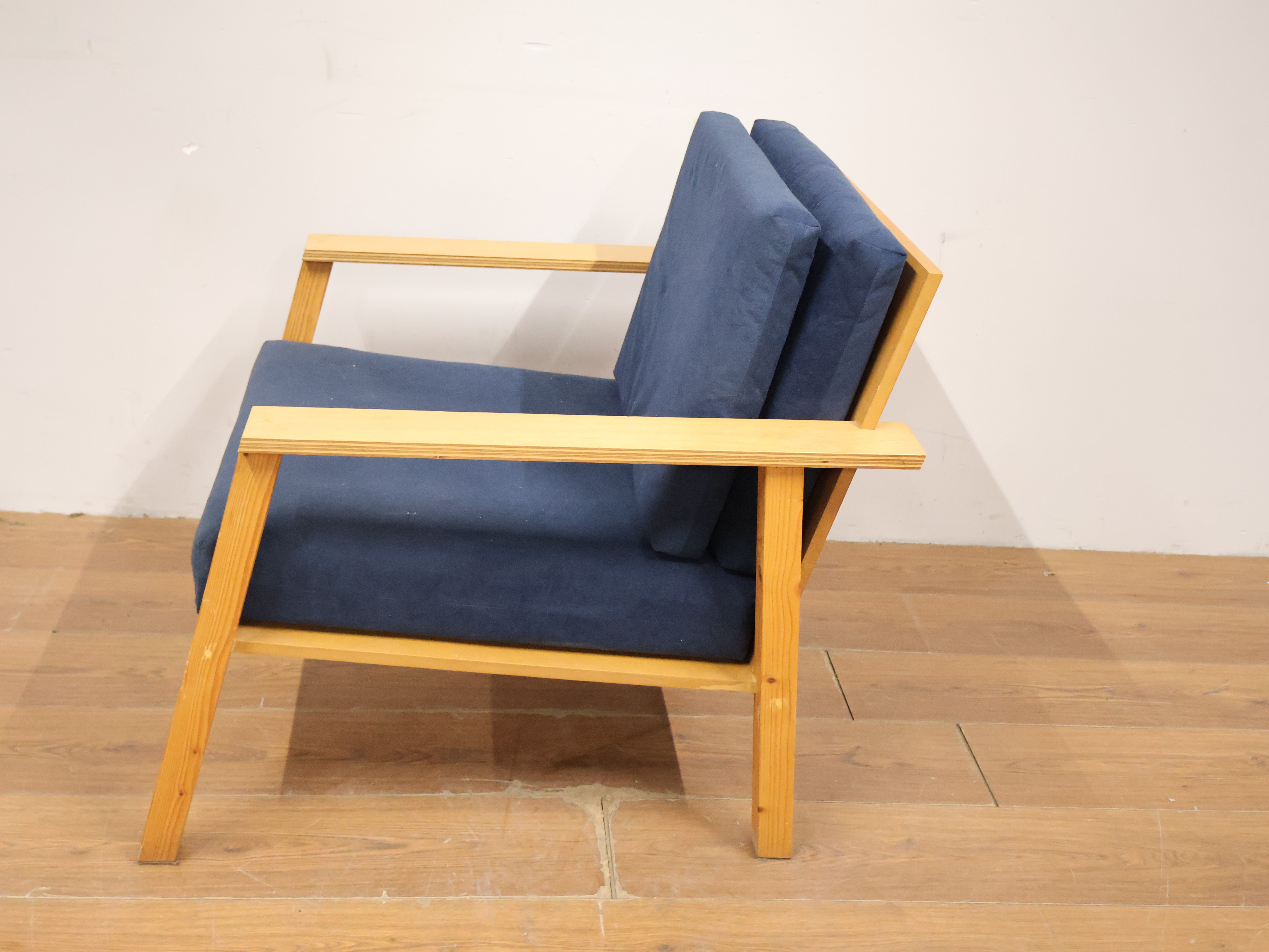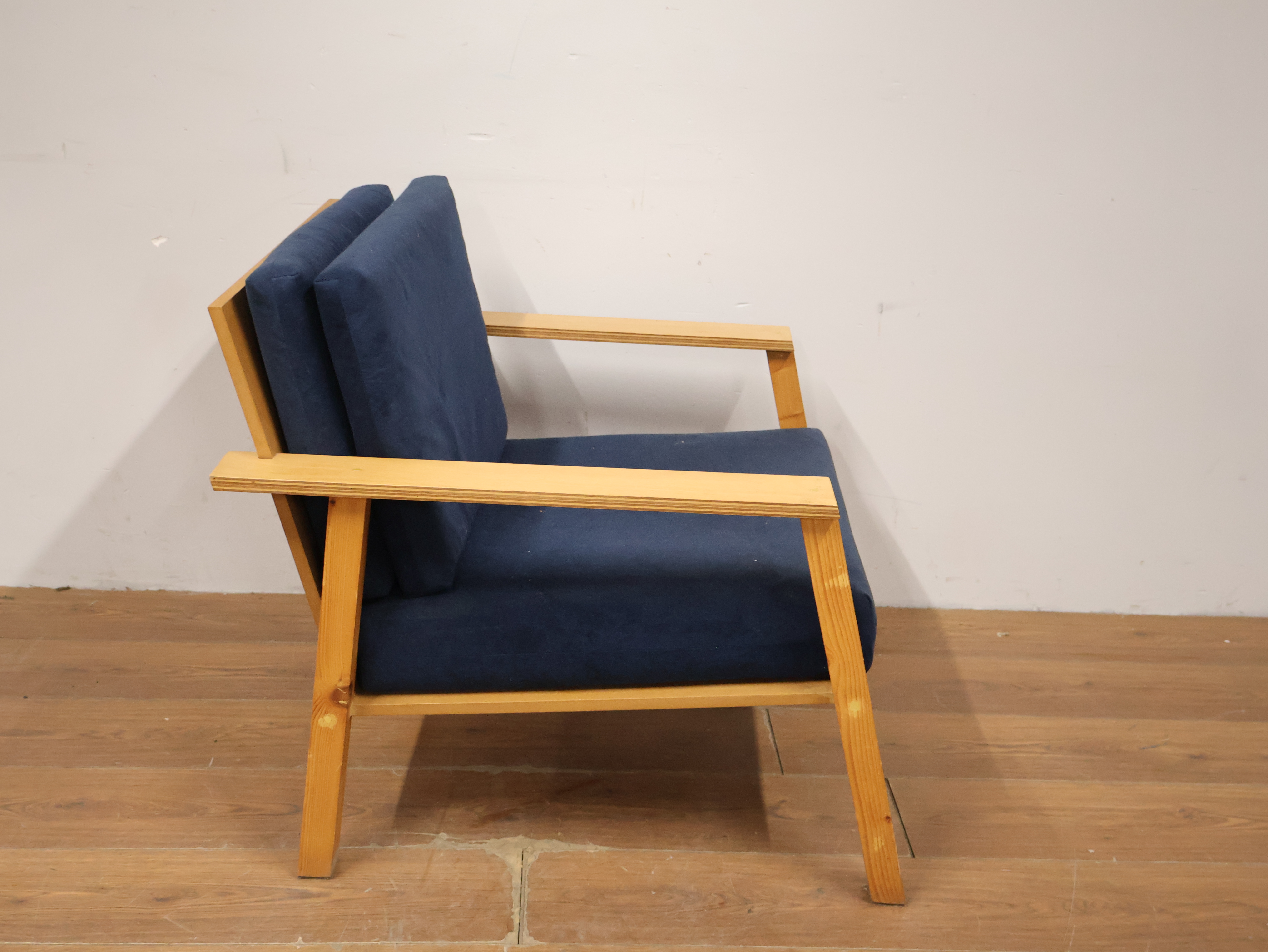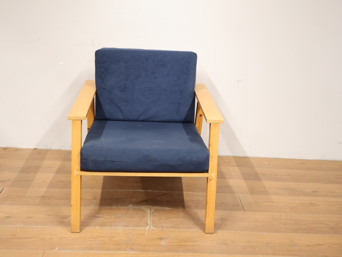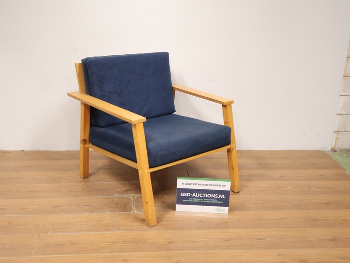 Vintage Scandinavische Fauteuil met Blauwe Kussens