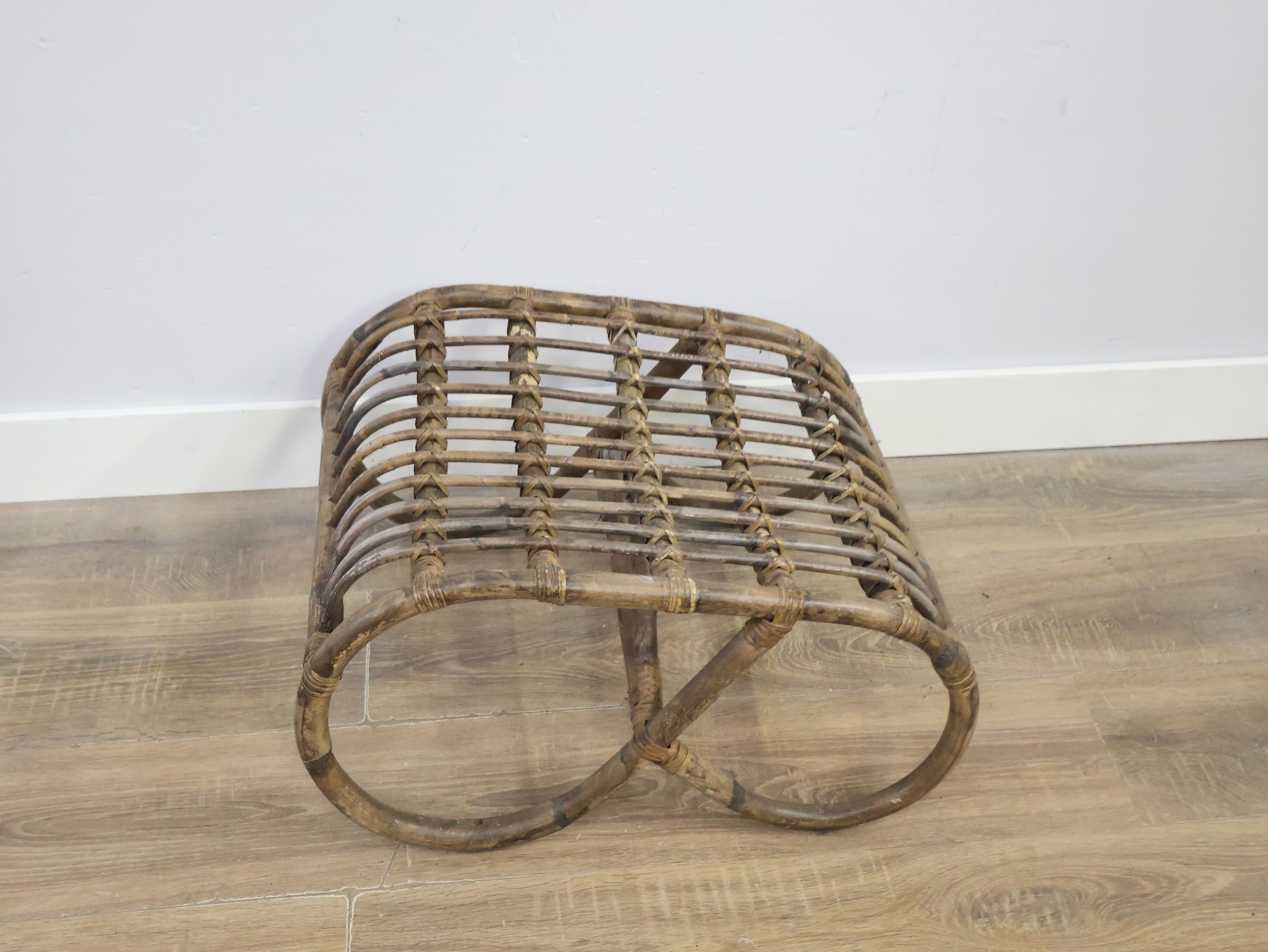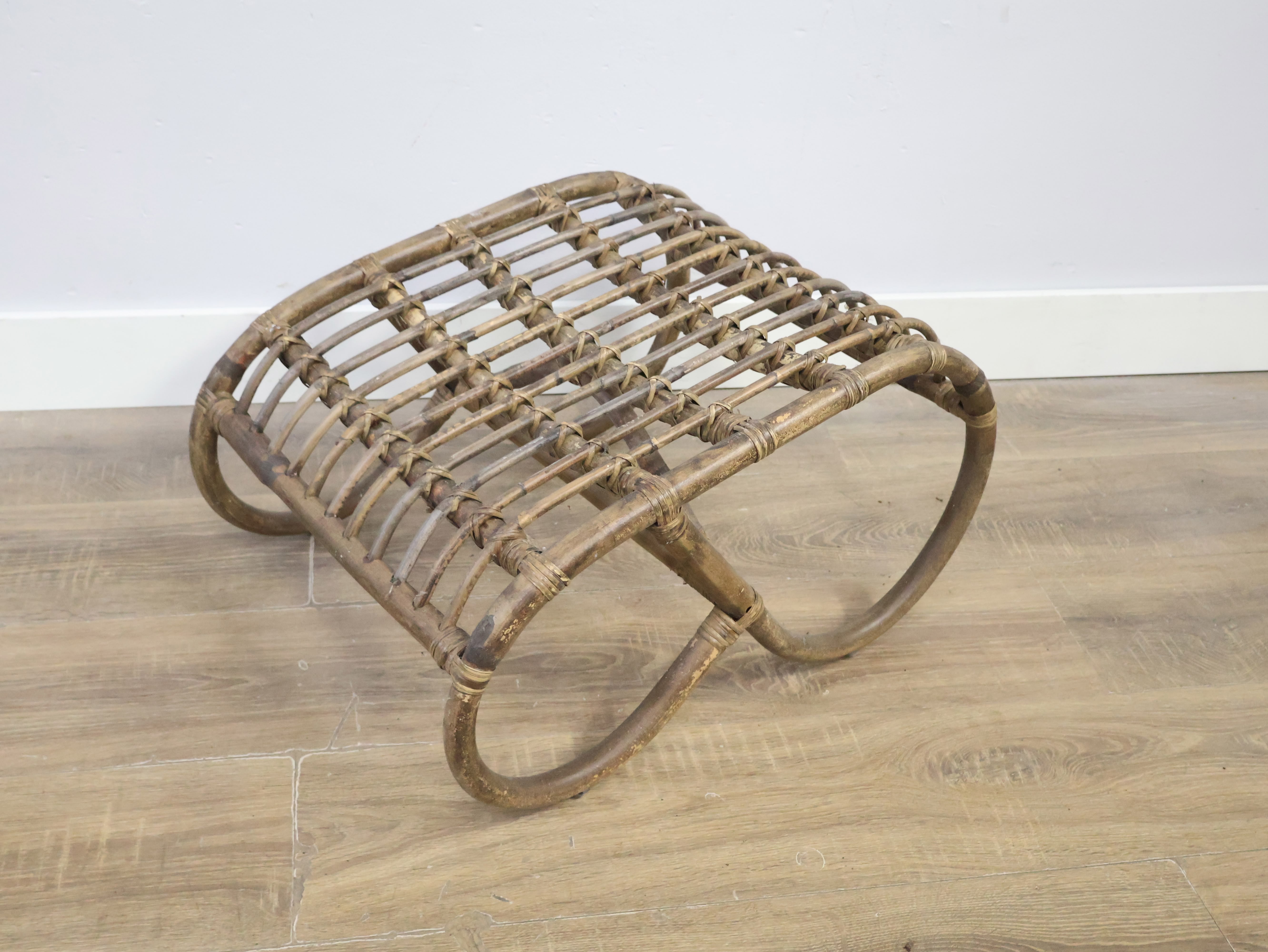 Vintage Rieten Voetenbankje