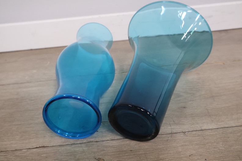 Blauwe glazen vazen 4 stuks