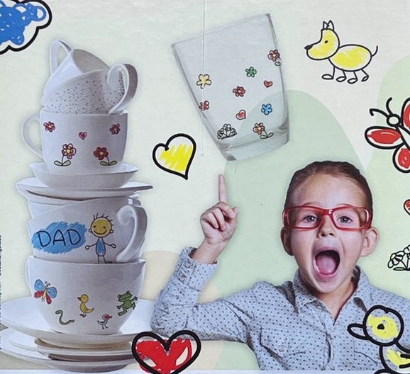 Met deze set van 5 servies markers tover je in een mum van tijd de mooiste tekeningen of teksten op glazen, borden of mokken. De inkt van deze set bestaande uit 5 stiften is geschikt voor keramiek, glas en melamine en is vaatwasbestendig. In totaal zitten er 5 kleuren in de verpakking: oranje, blauw, groen, geel, rood, zwart. Het gebruik is eenvoudig en staat ook beschreven op de verpakking, leuk voor een kinderfeestje of gezellige activiteit aan de kindertafel.