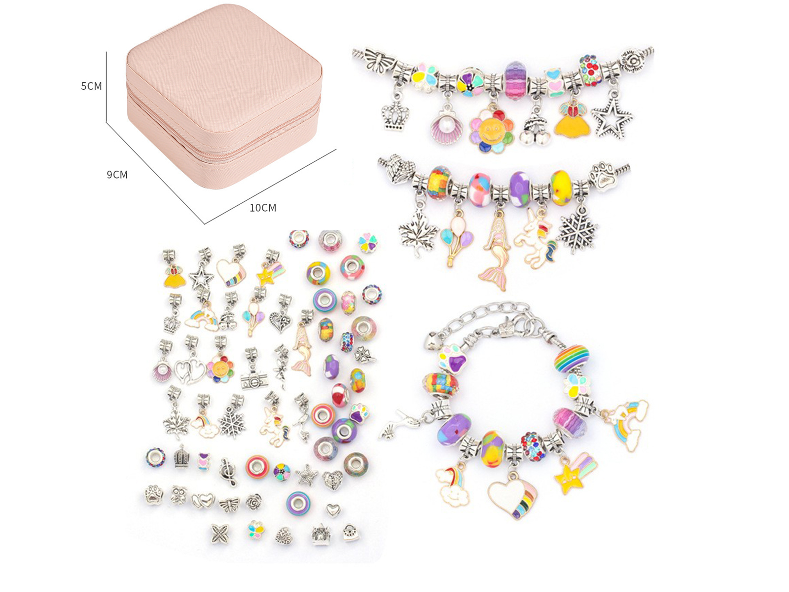 DIY armbanden set voor kids met juwelendoosje - regenboog kralen en bedels