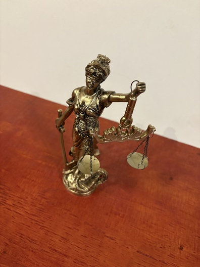 Decoratief beeld "de godin van rechtvaardigheid"
