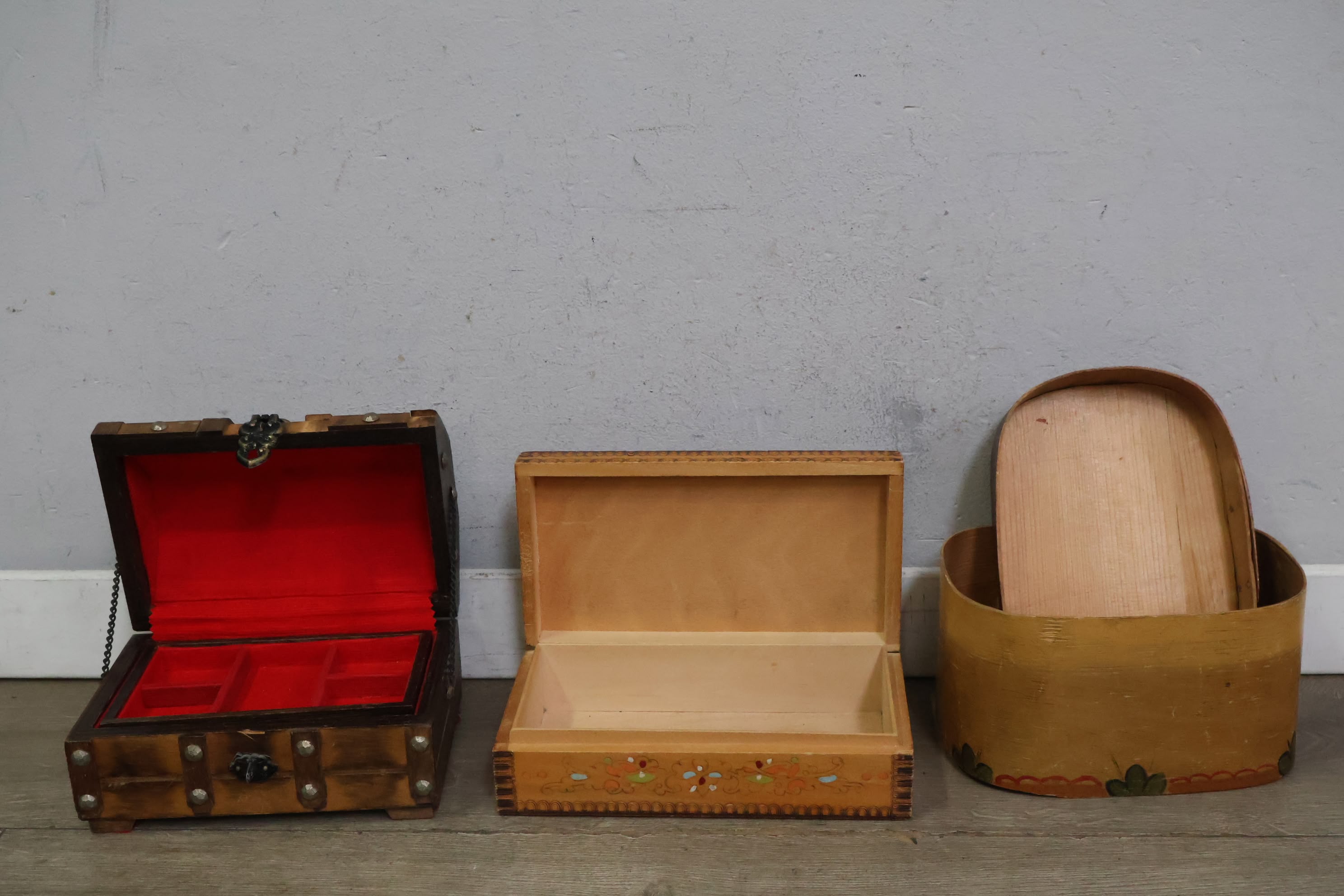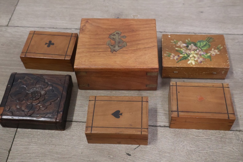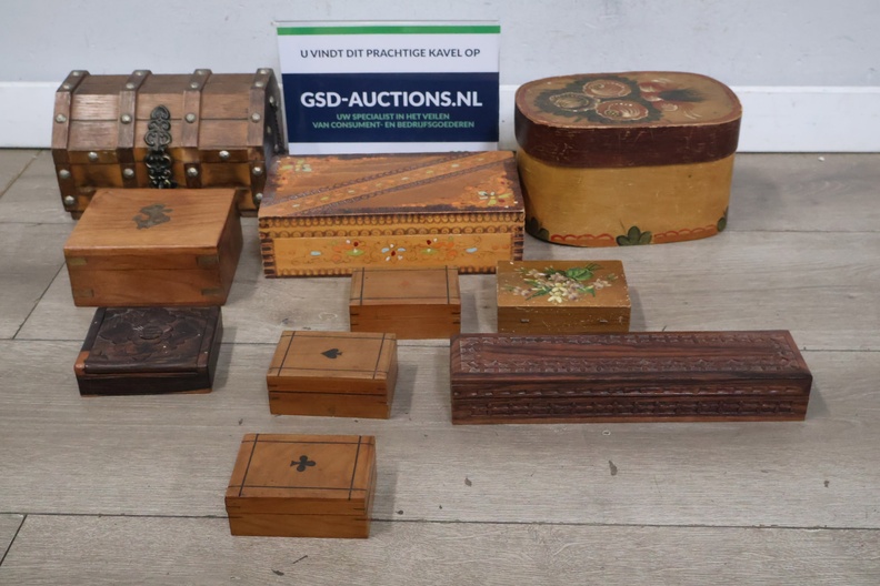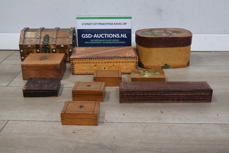 Collectie van 10 Vintage Houten Sieradendoosjes