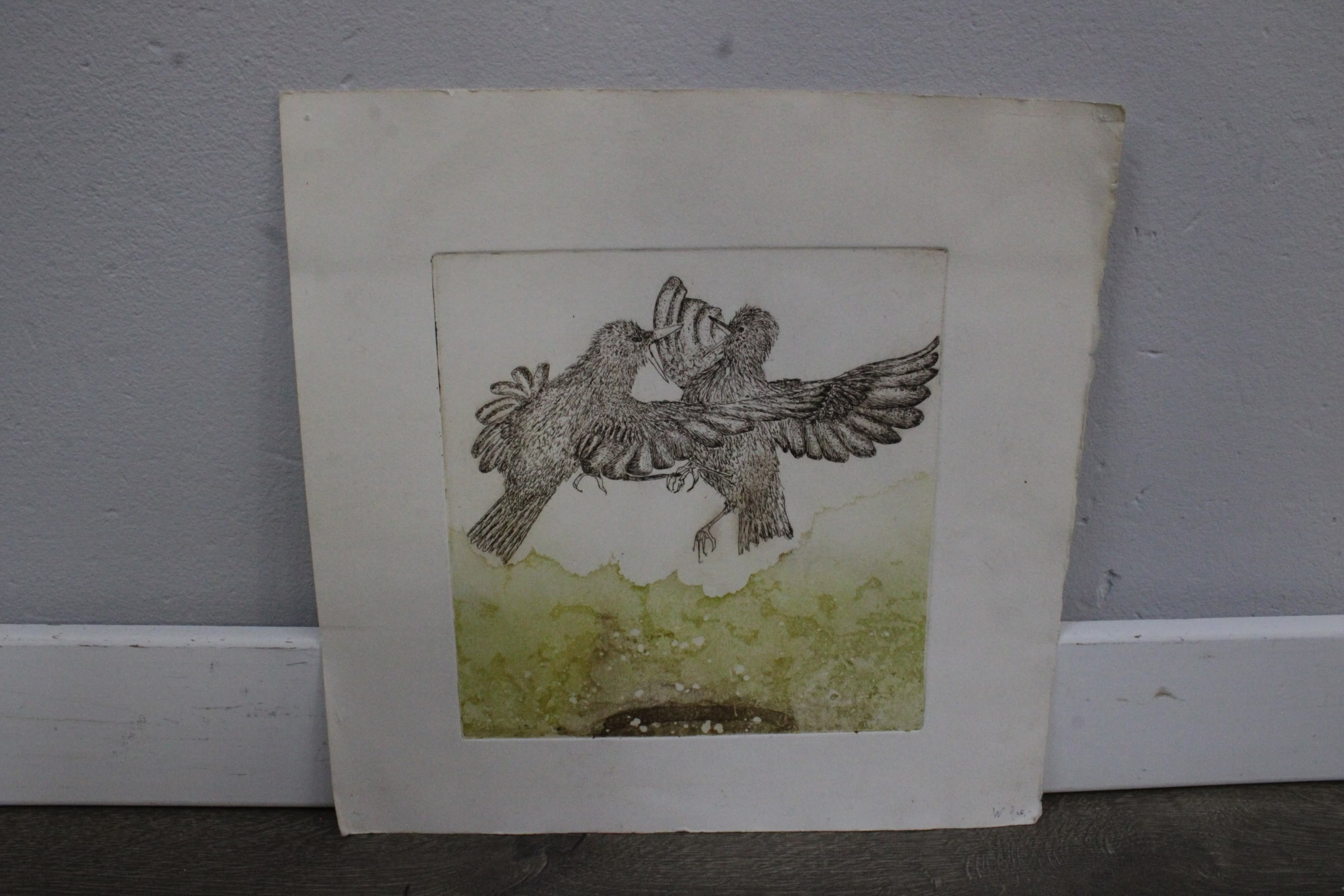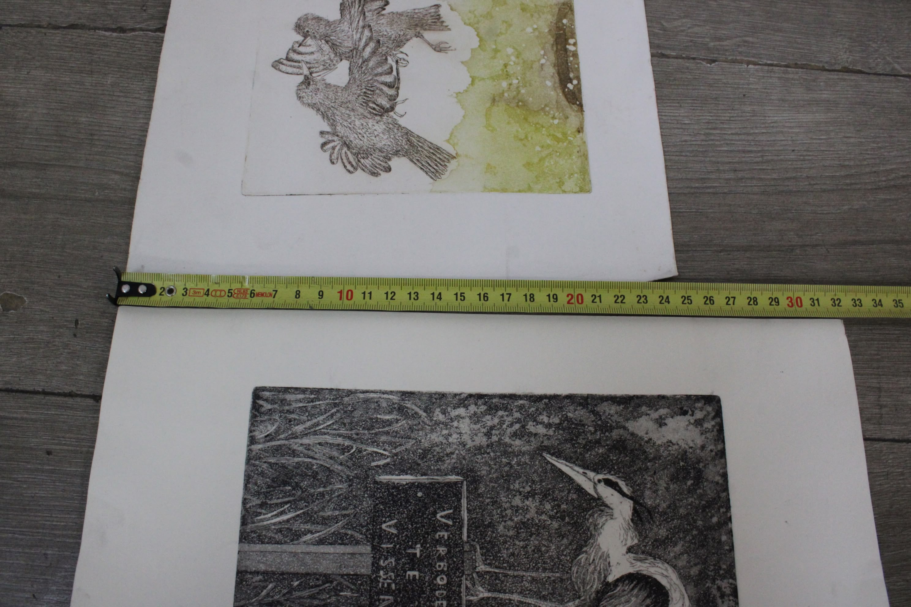 Set van 6 Vintage Vogel-Etsen