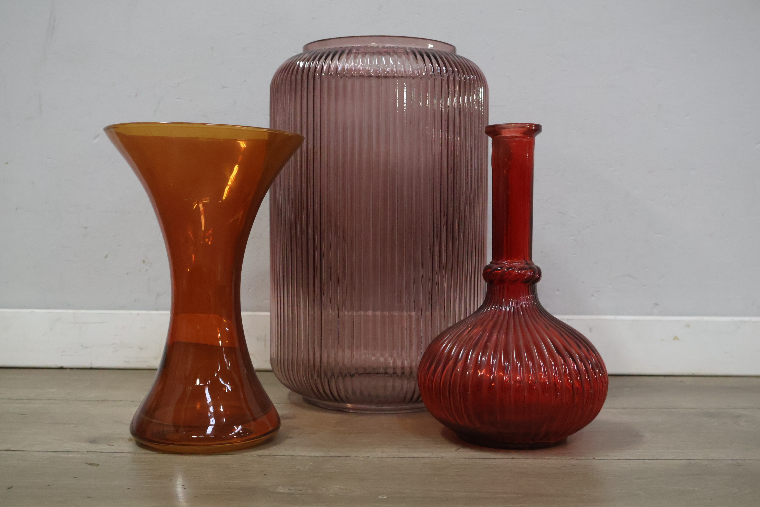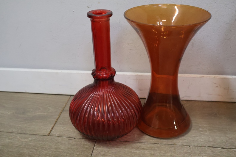 Glazen vazen in verschillende kleuren en vormen 3 stuks'