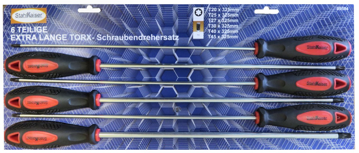 6-dlg. Extra lange Schroevendraaierset,TORX/T-Profil