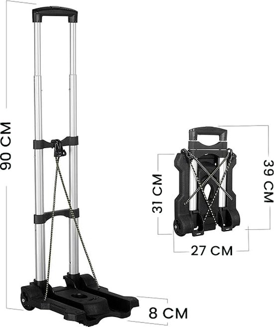 - Afmeting (ingeklapt): 8 x 27 x 39 cm (LxBxH).