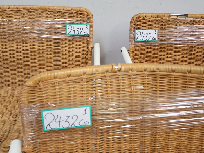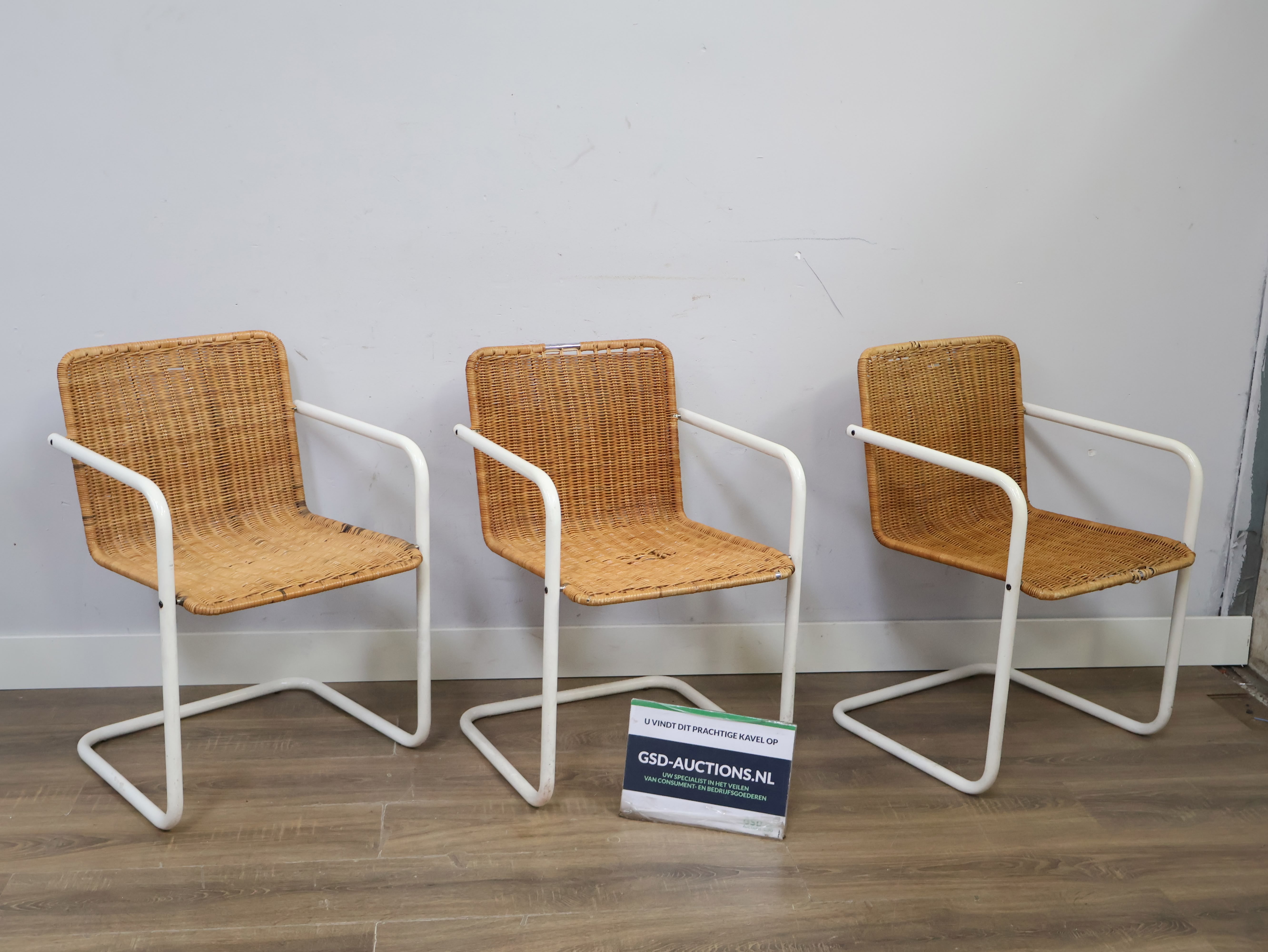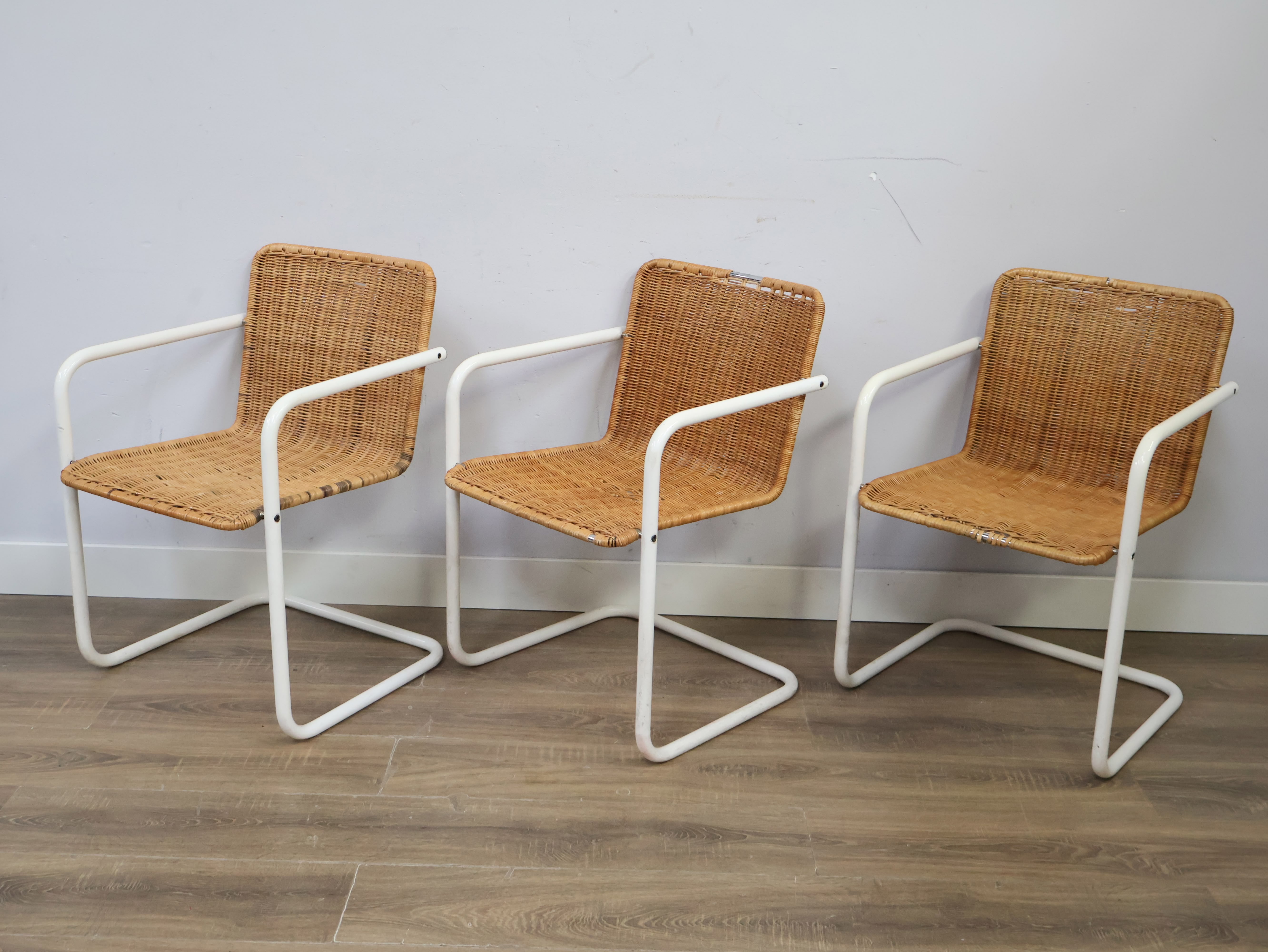 Set van 3 Rotan Bauhaus-Stijl Stoelen met Wit Buisframe'