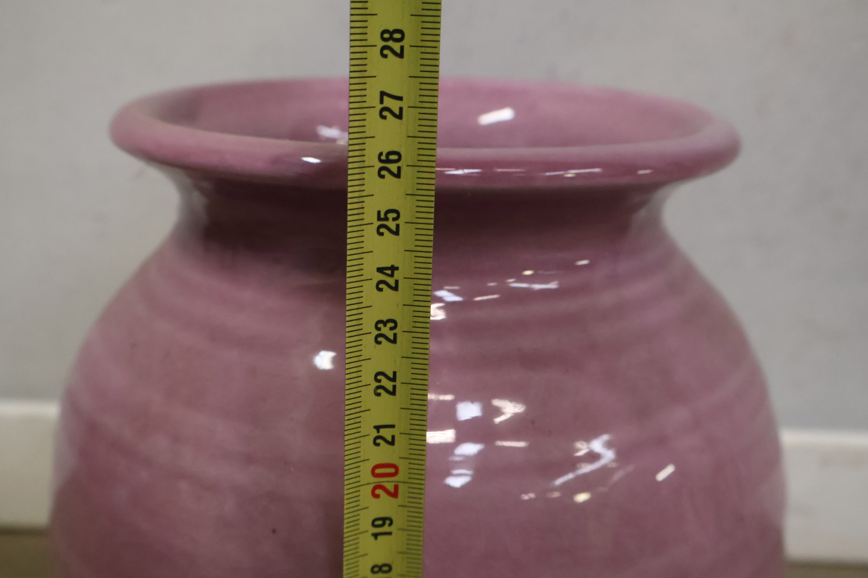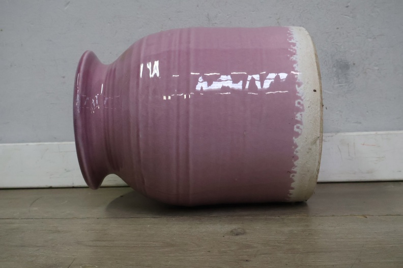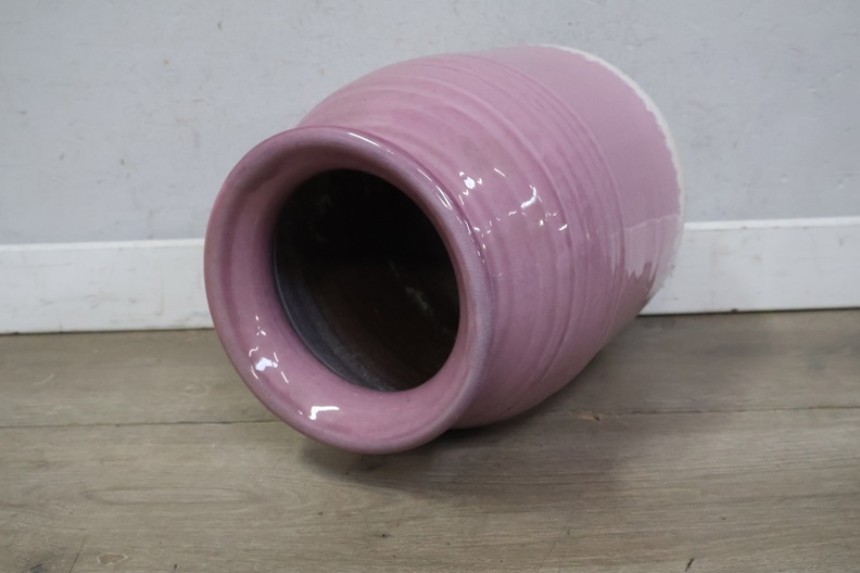 Vintage Keramische Roze Vaas met Witte Bodem'