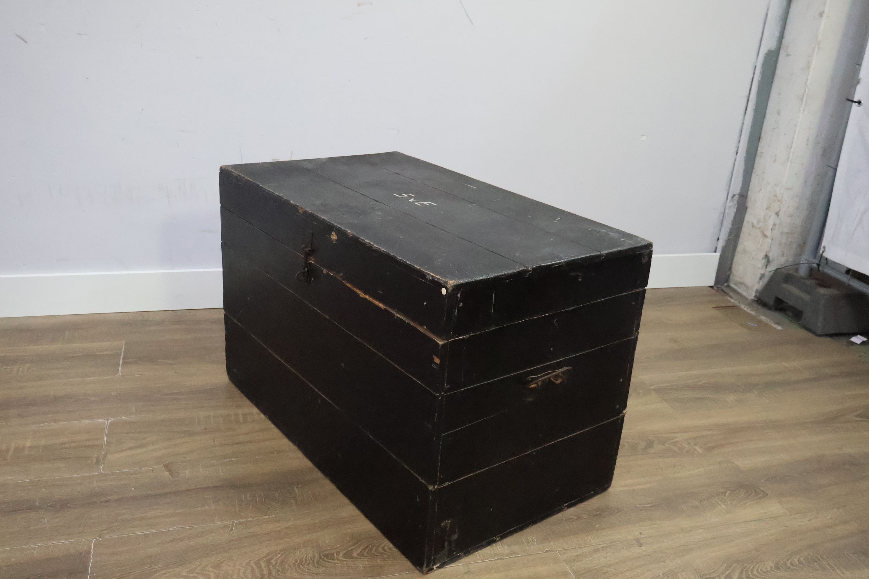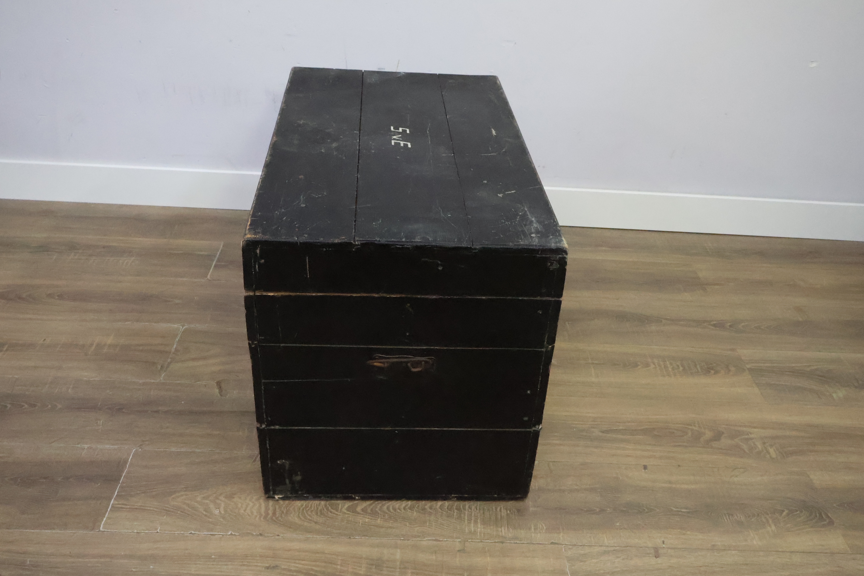 Vintage Zwart Houten Opbergkist