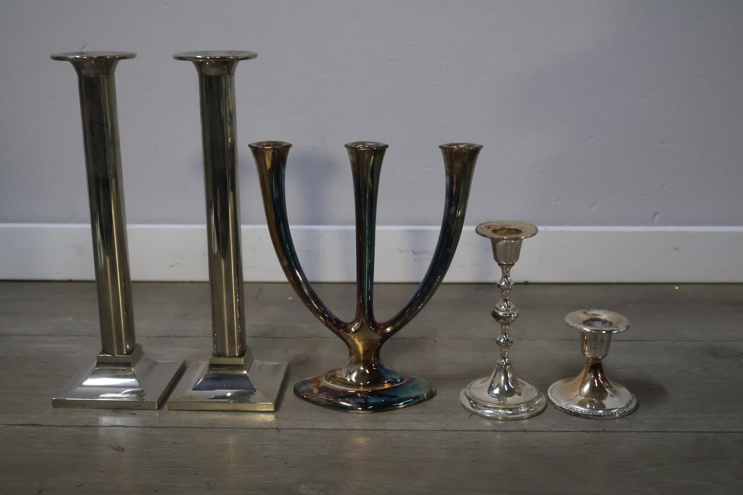 Set van 5 Verzilverde Kandelaars