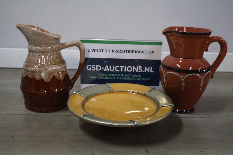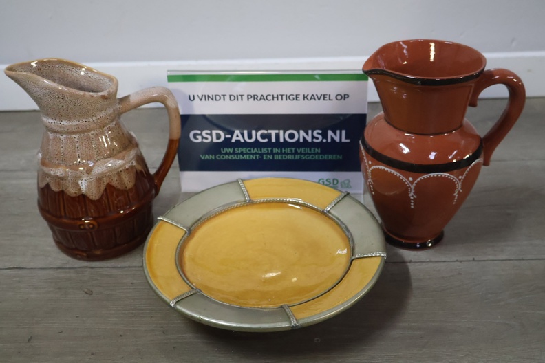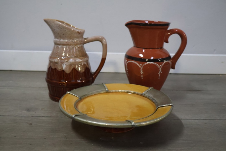 Set van 3 Stuks Portugees Aardewerk (2 Kannen & 1 Bord)