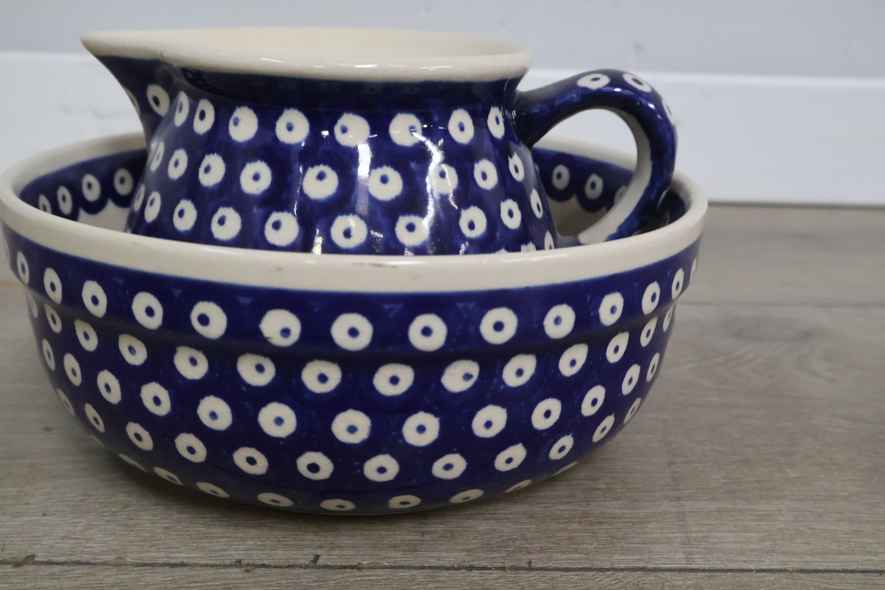 Boleslawiec pools aardewerk kom en schenkkan