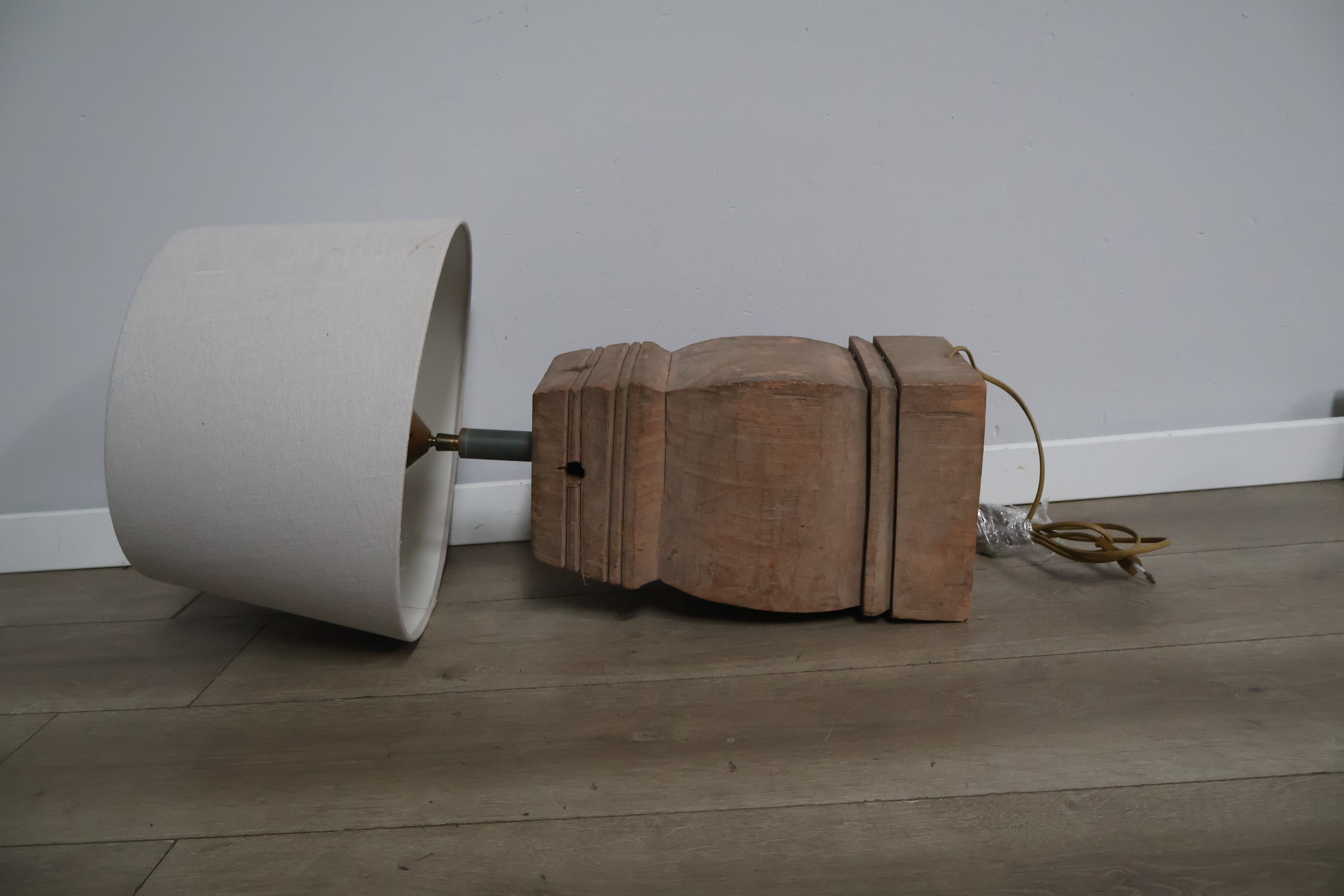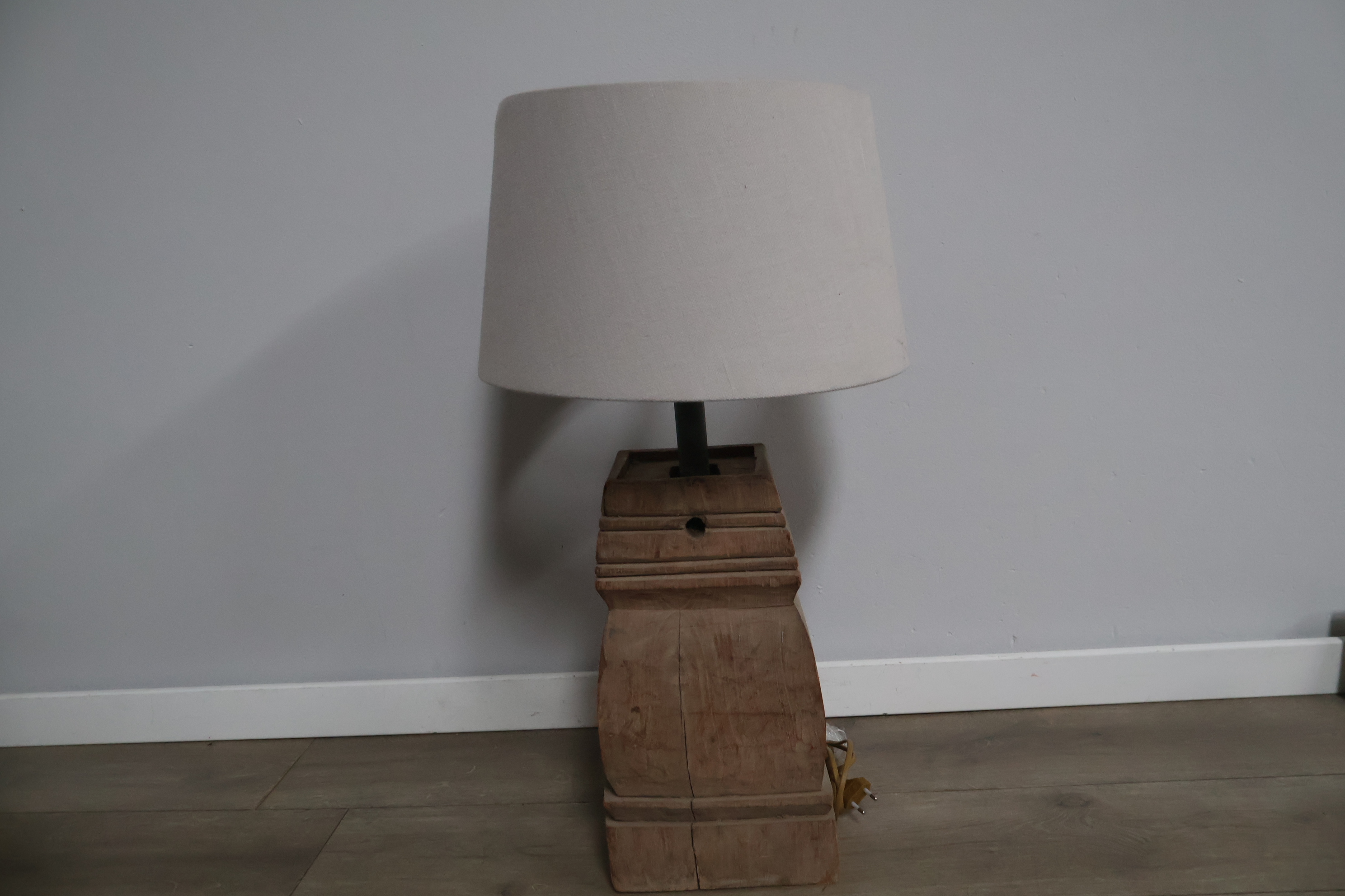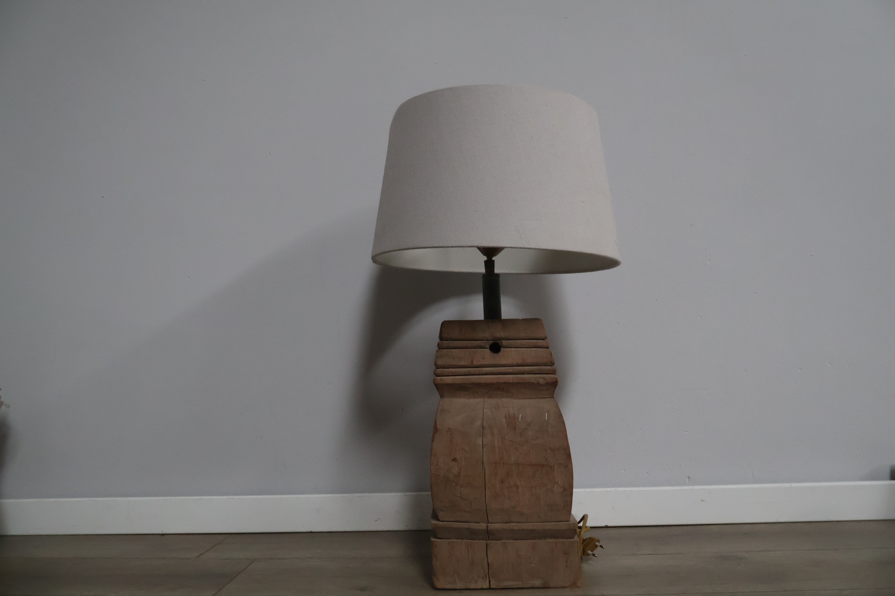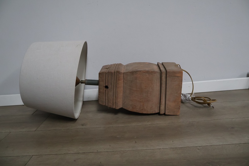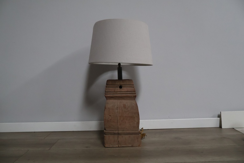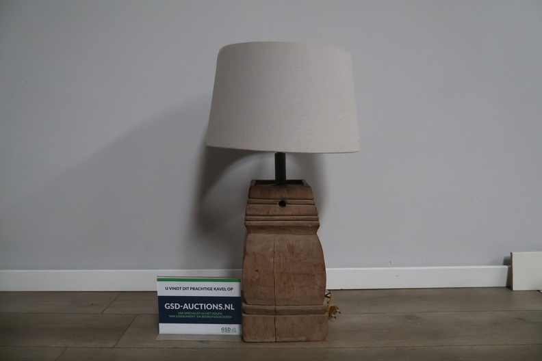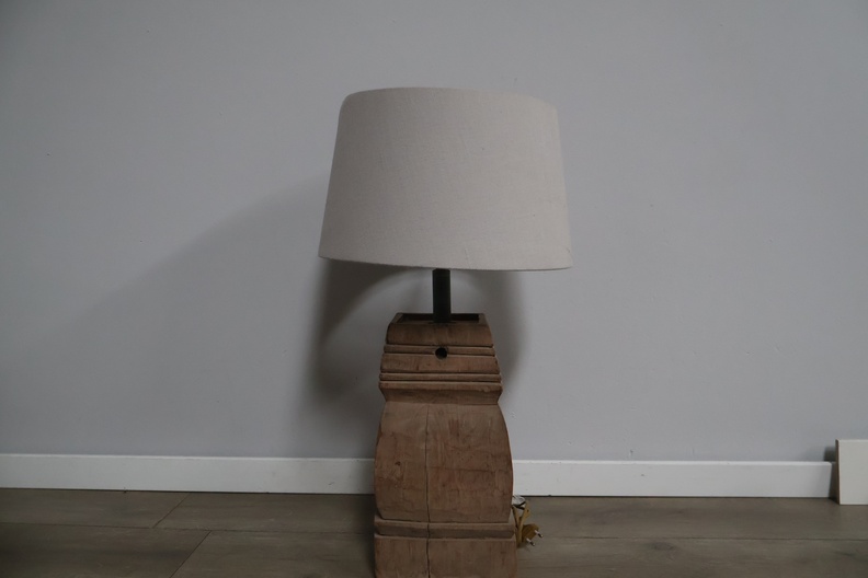 Houten balusterlamp met stoffen kap