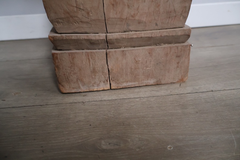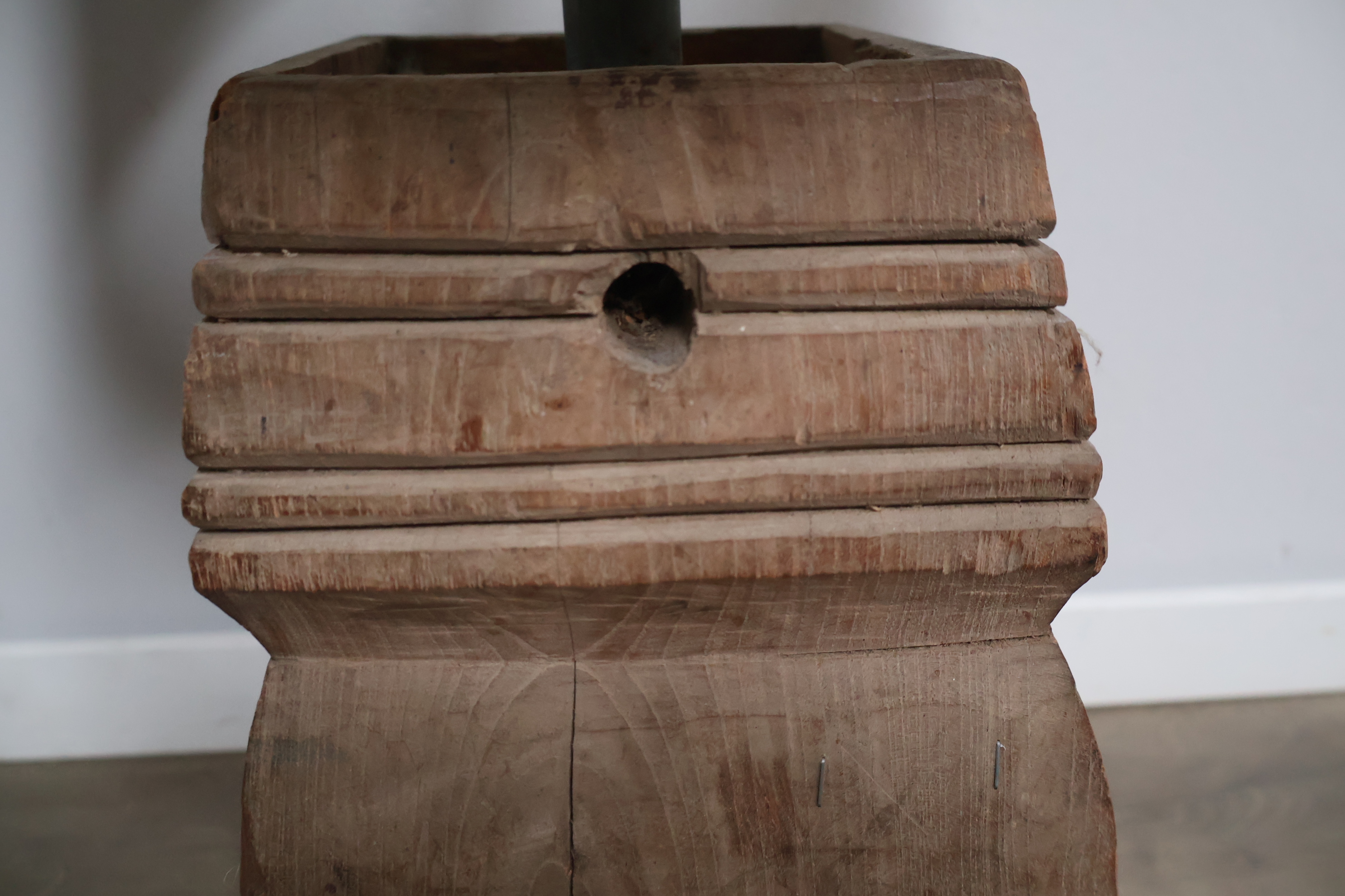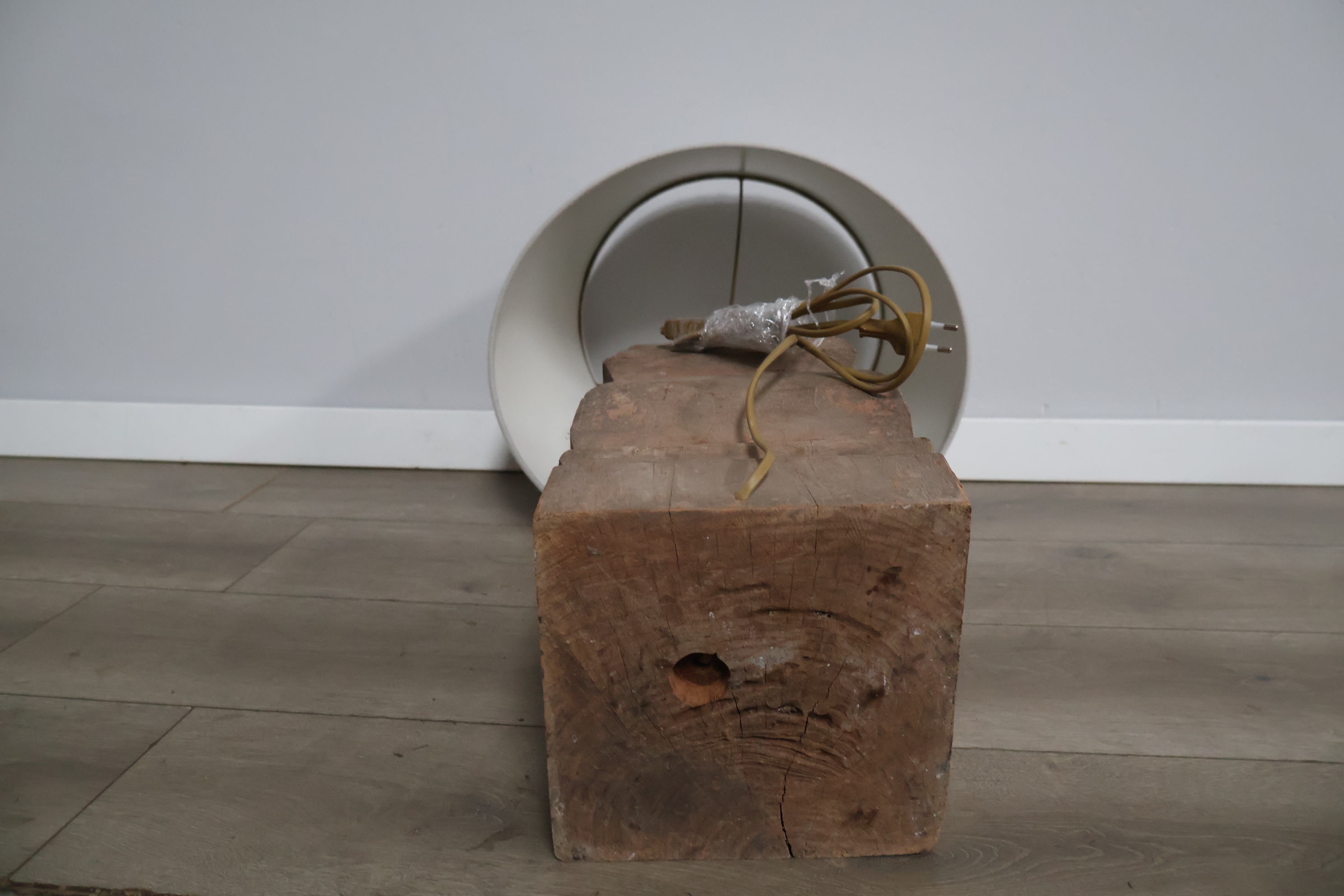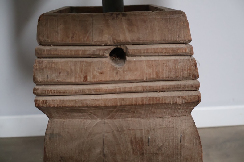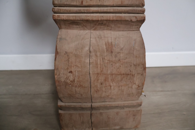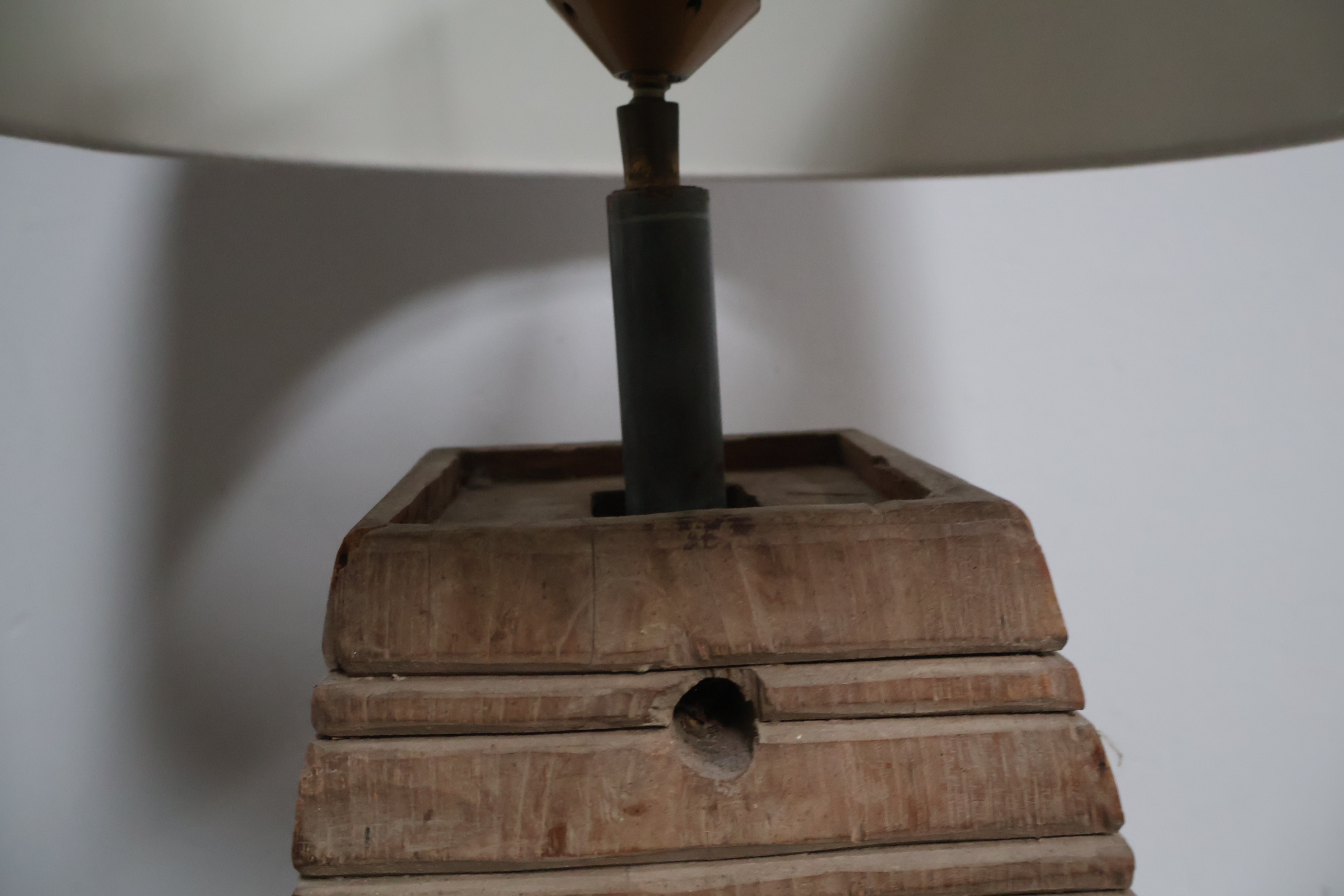 Houten balusterlamp met stoffen kap