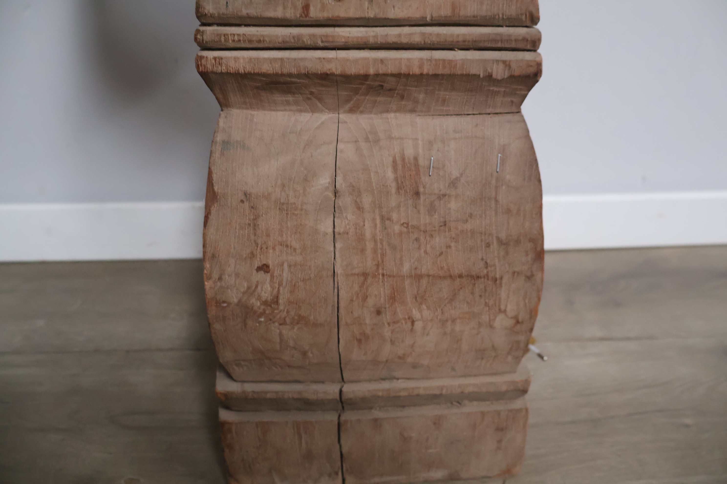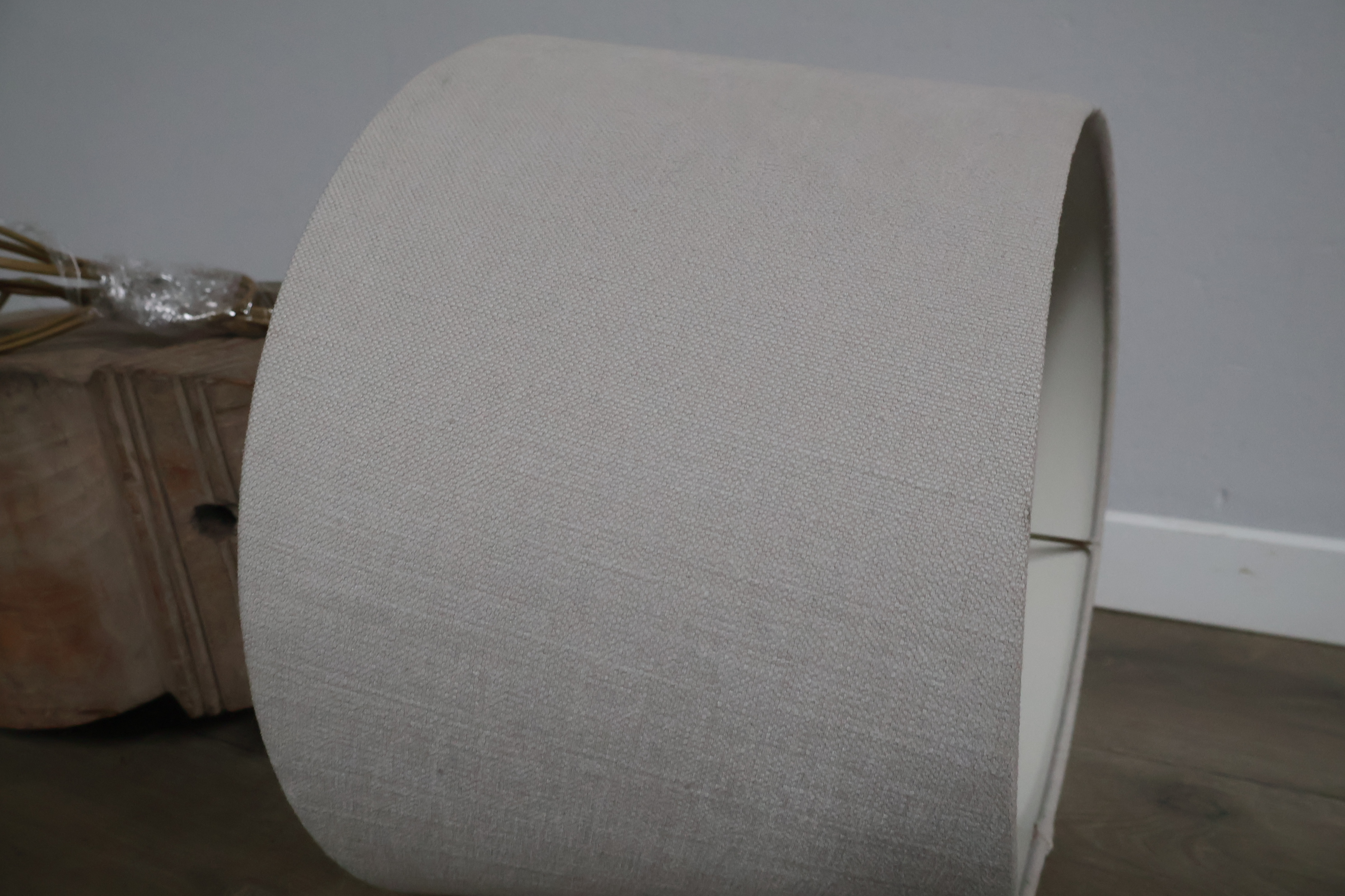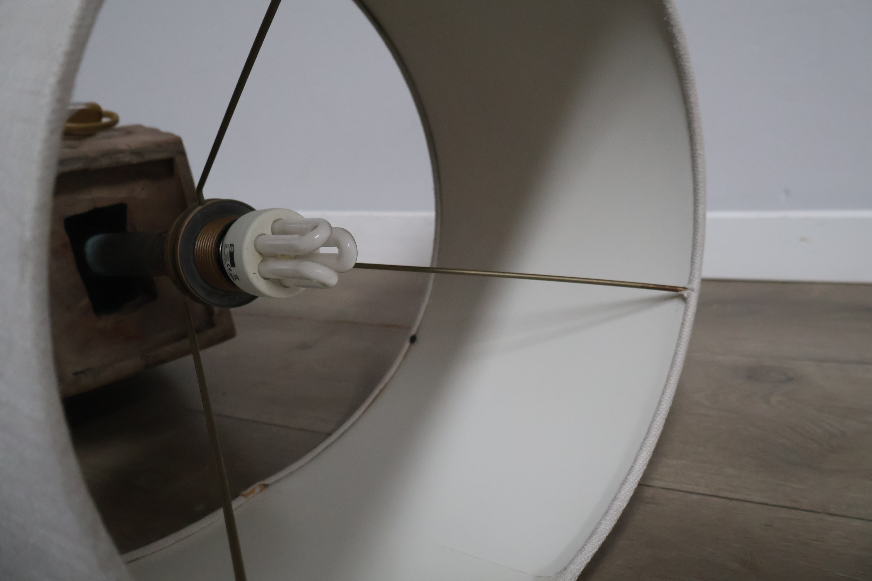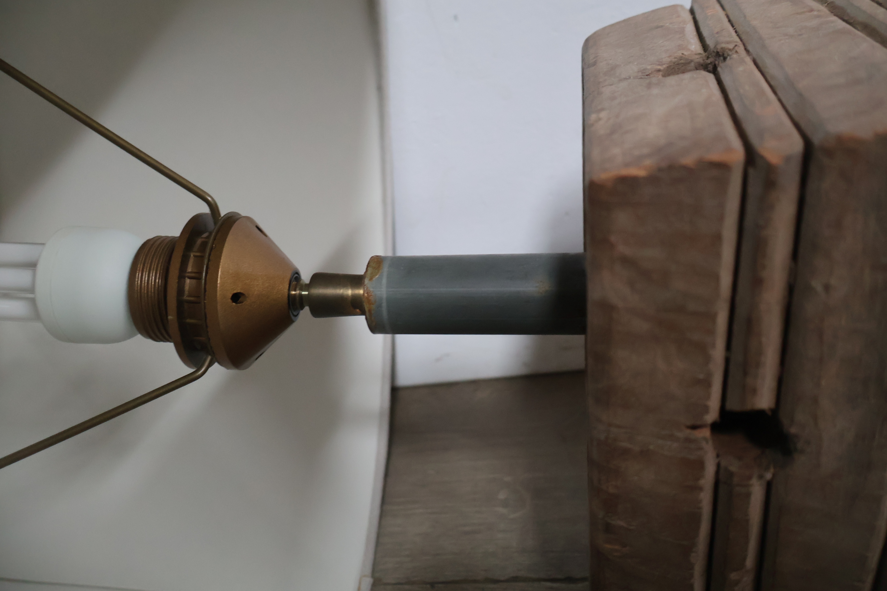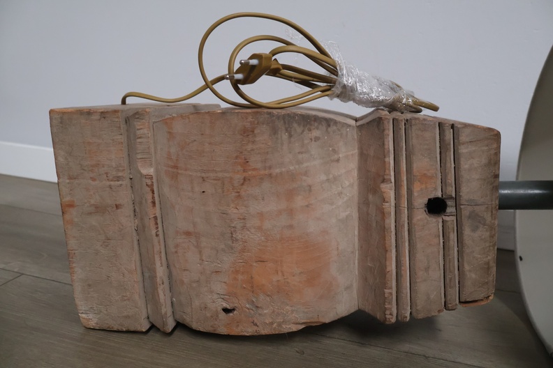 Houten balusterlamp met stoffen kap