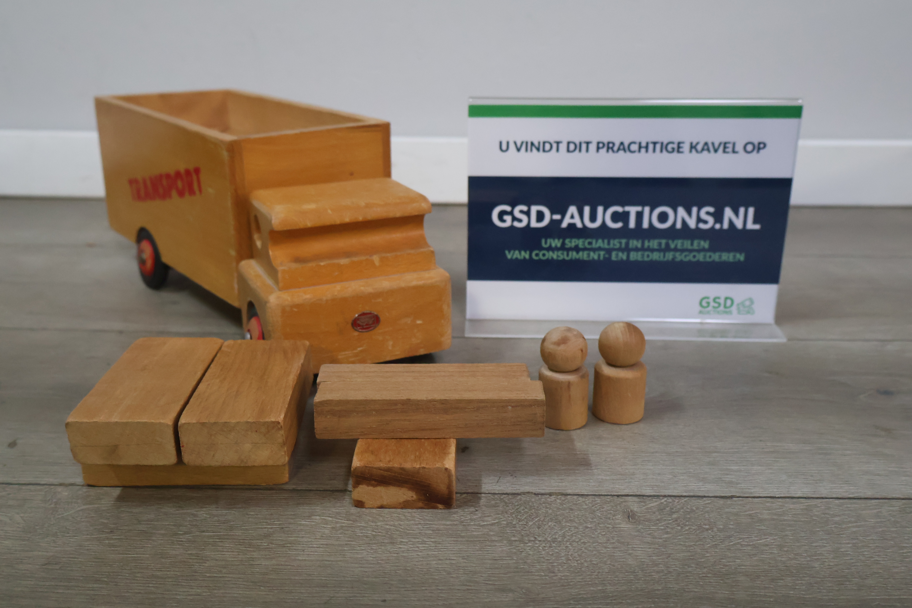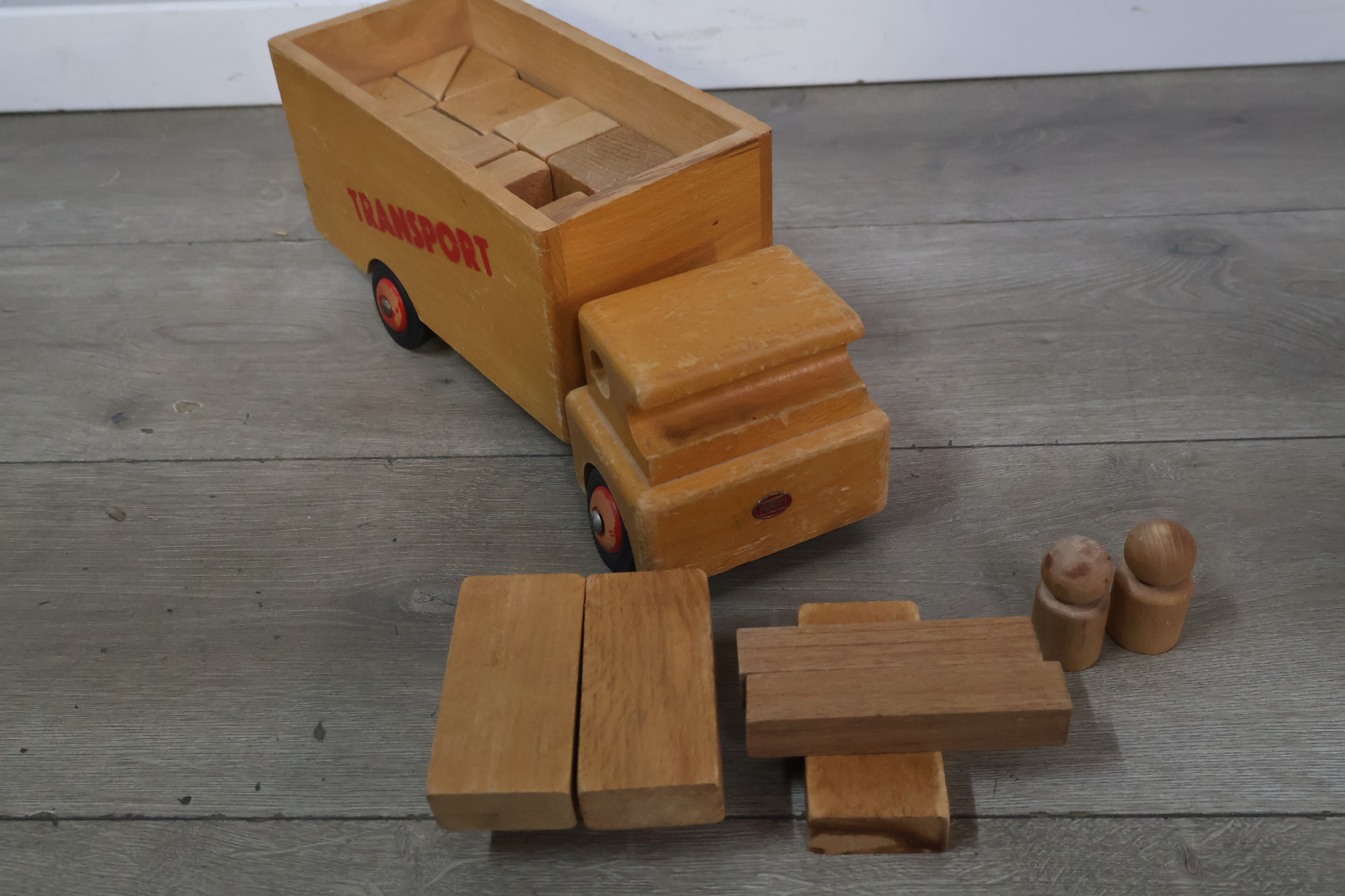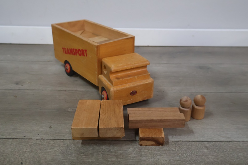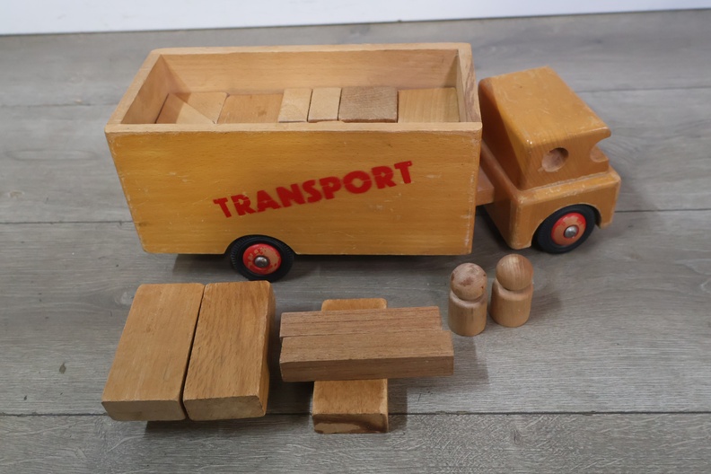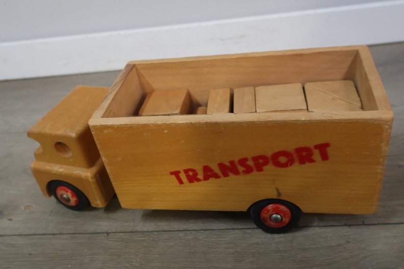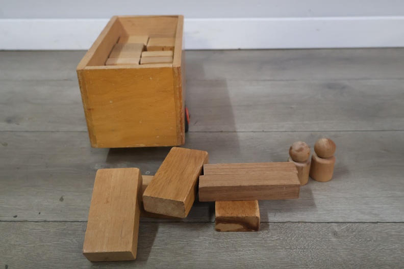 Houten transport speelgoedauto met blokken