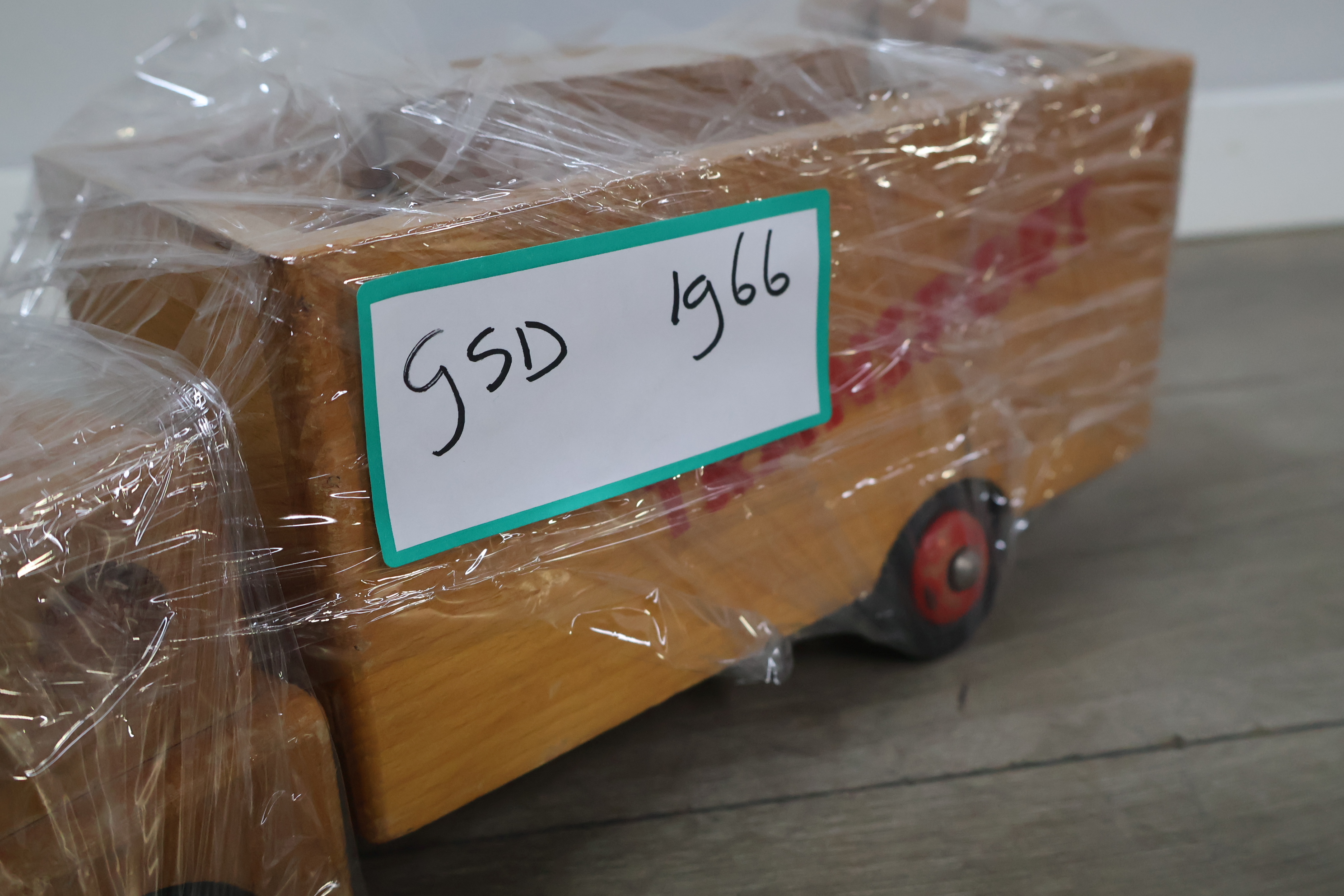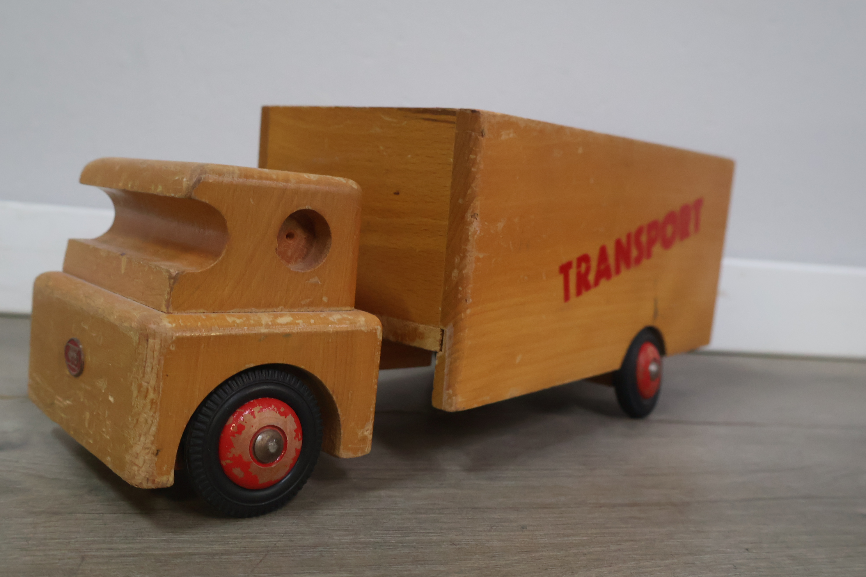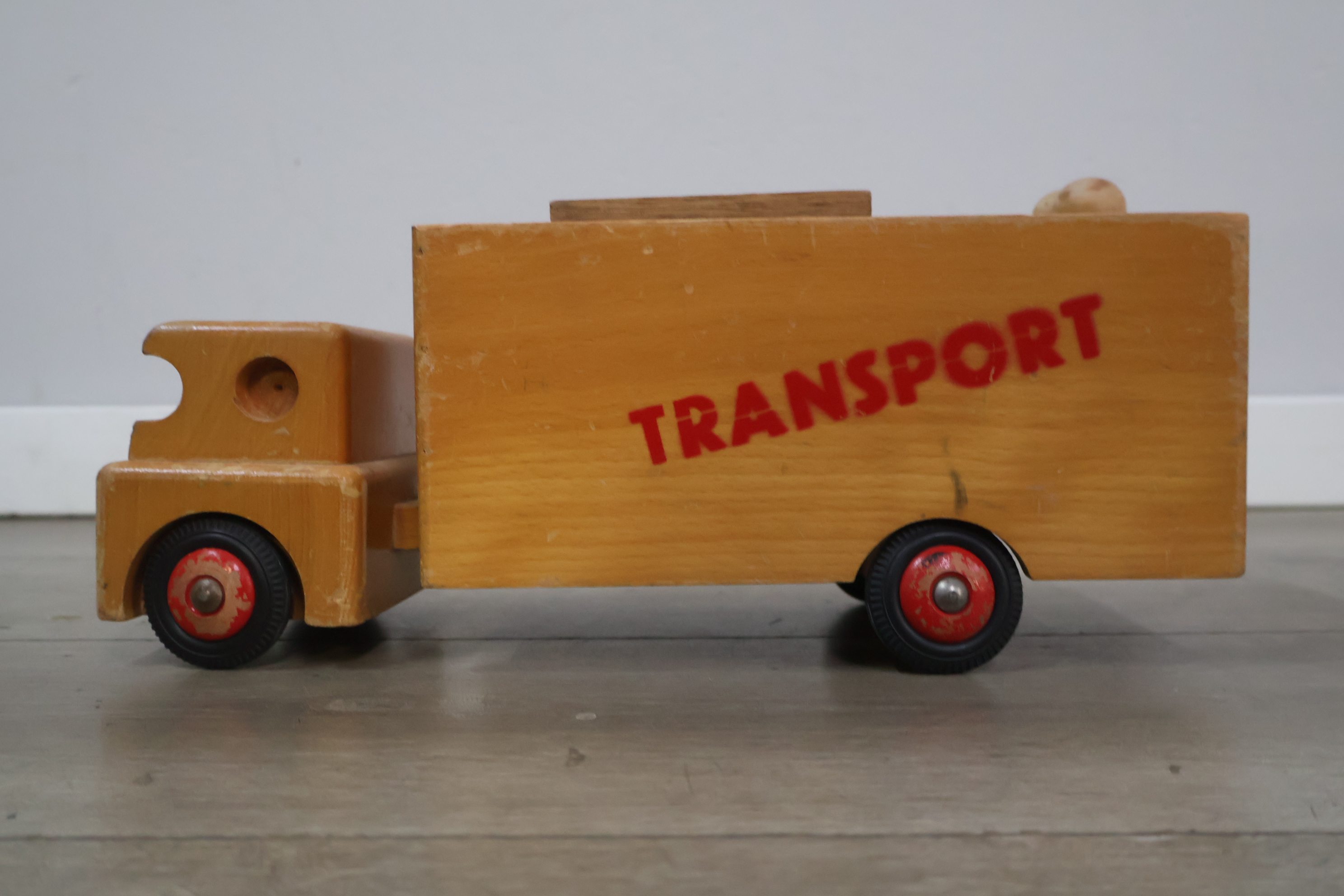Houten transport speelgoedauto met blokken