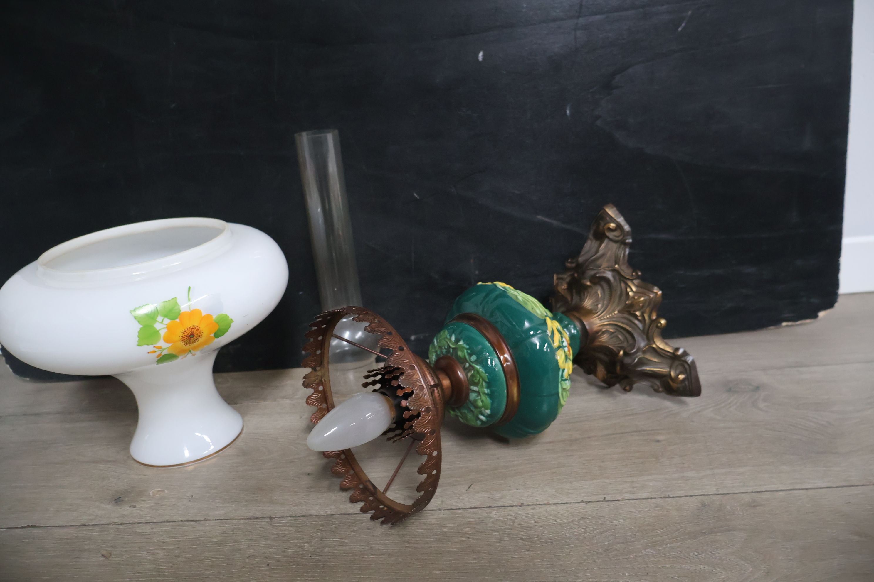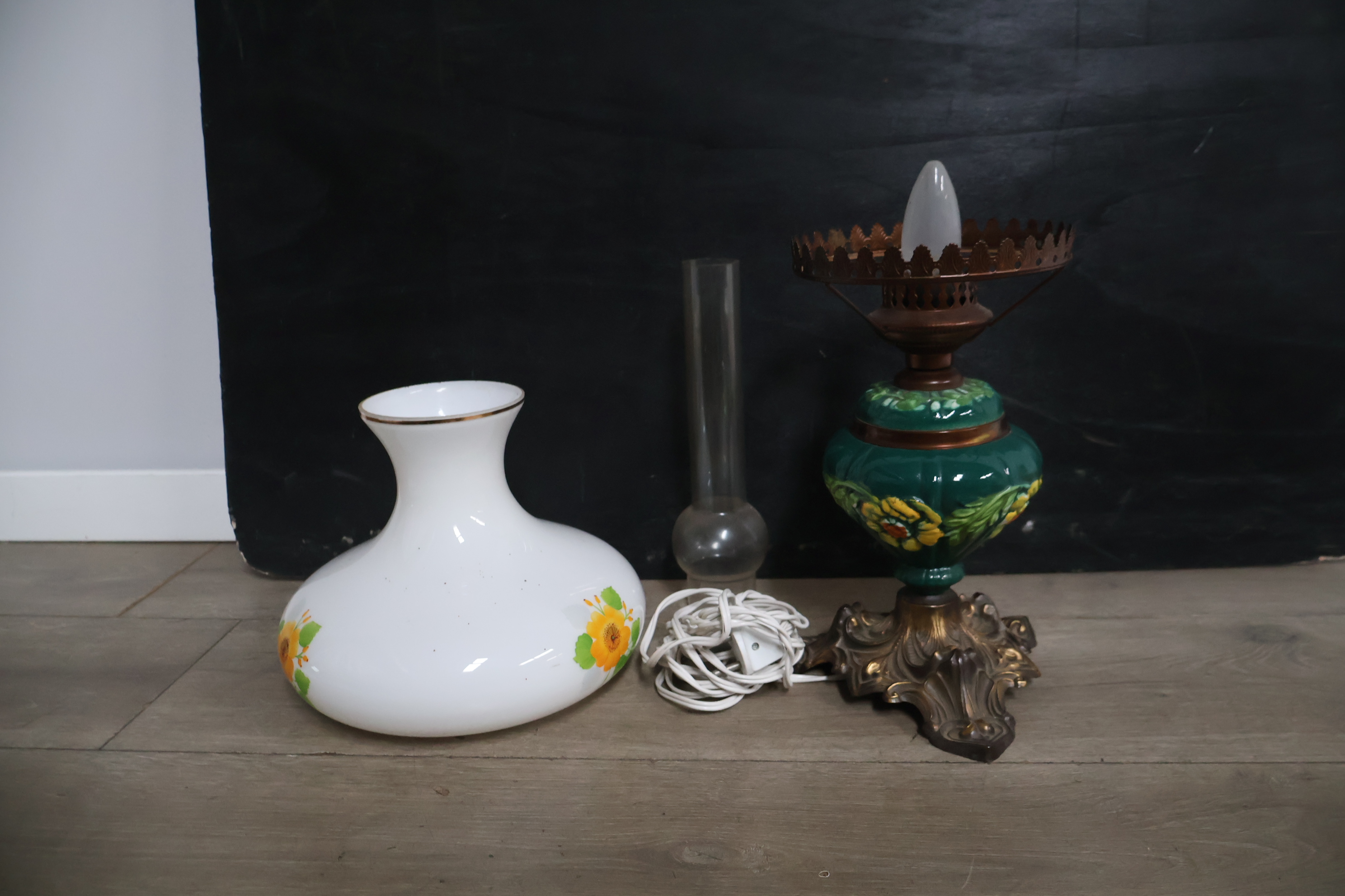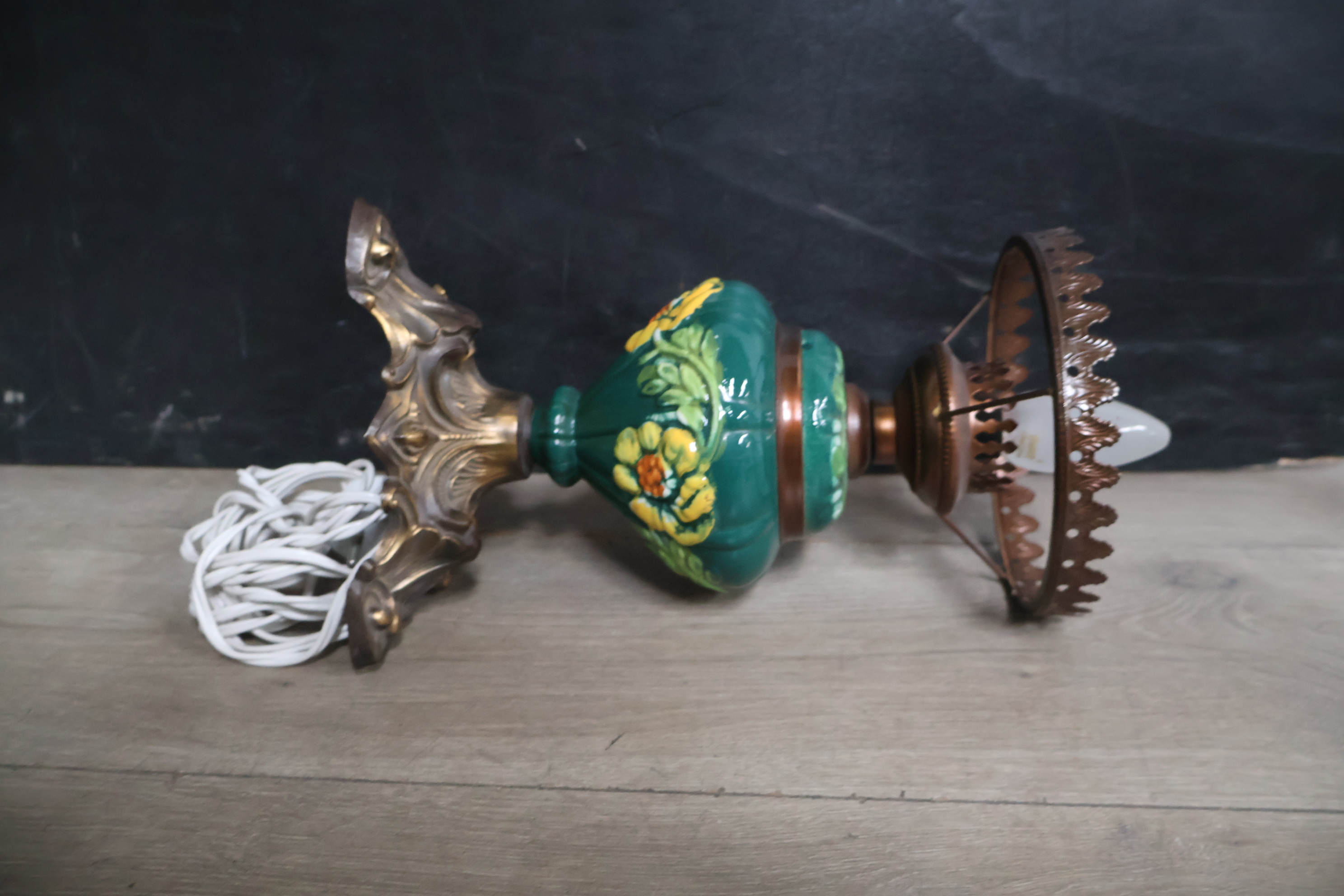 Vintage messing & glazen olielamp