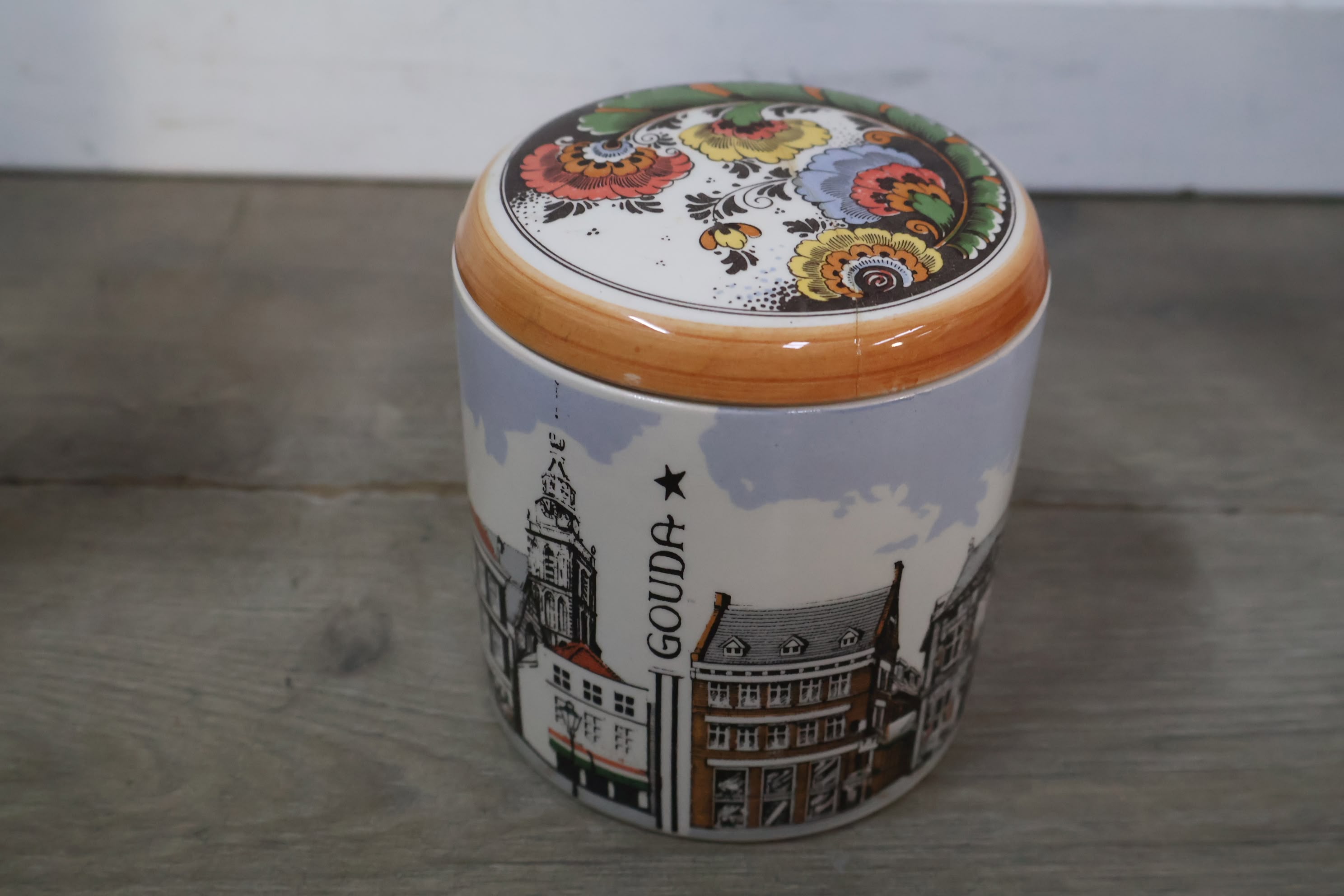 Vintage Gouda Stroopwafelpot met Jeneverfles