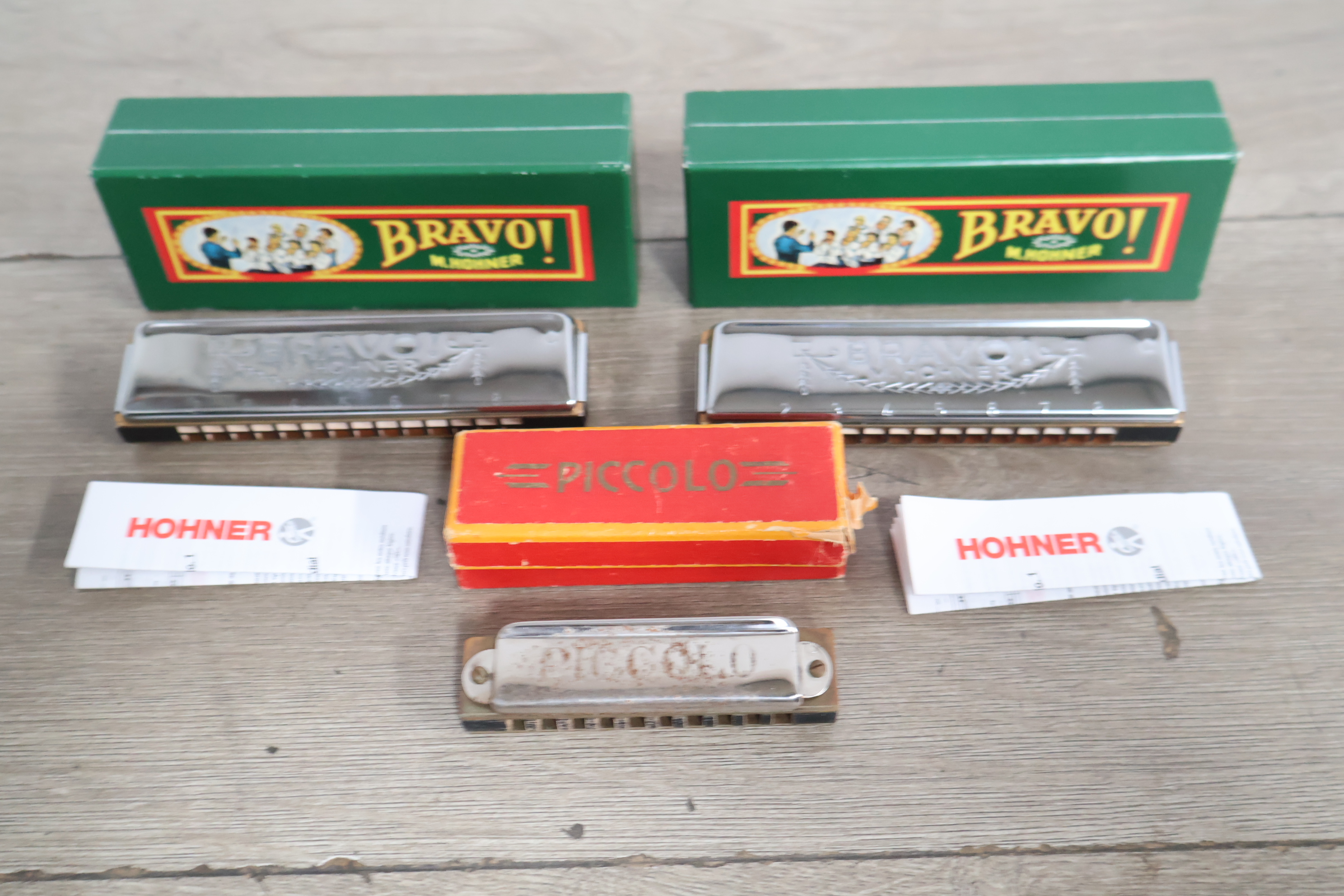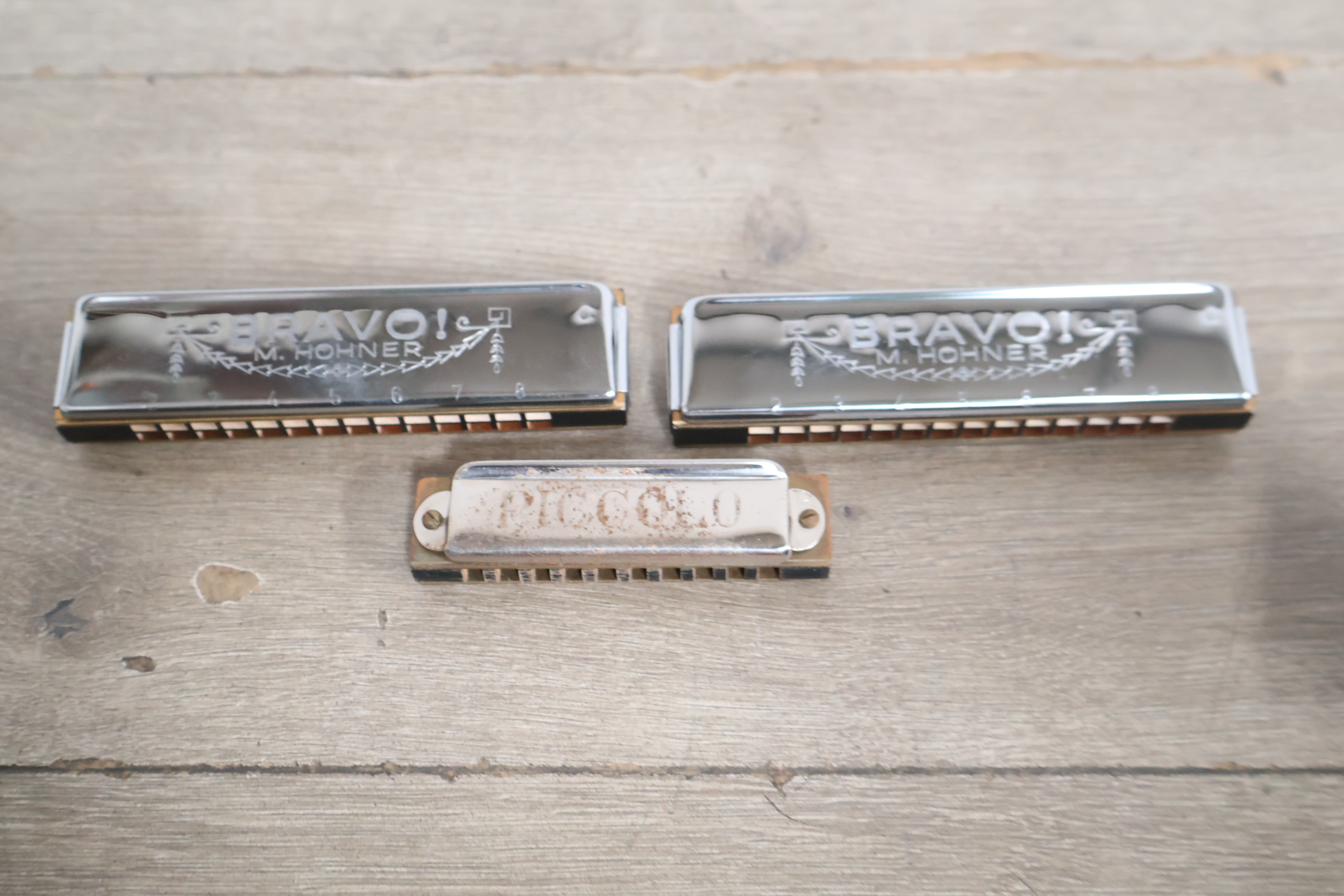 Vintage Hohner bravo en Piccolo mondharmonica's 3 stuks