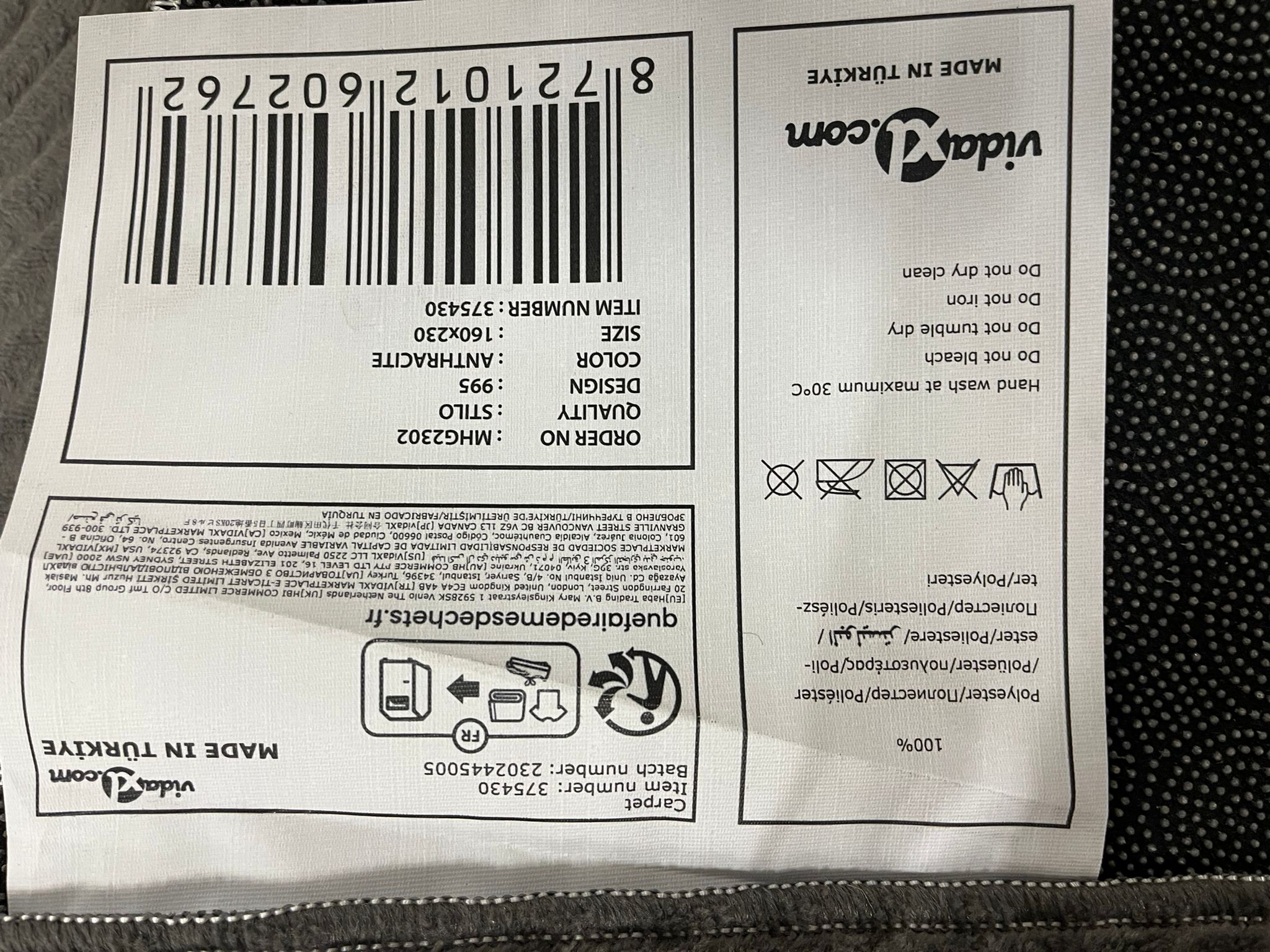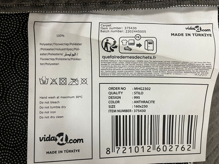 Vidaxl vloerkleed 160x230 stilo antraciet