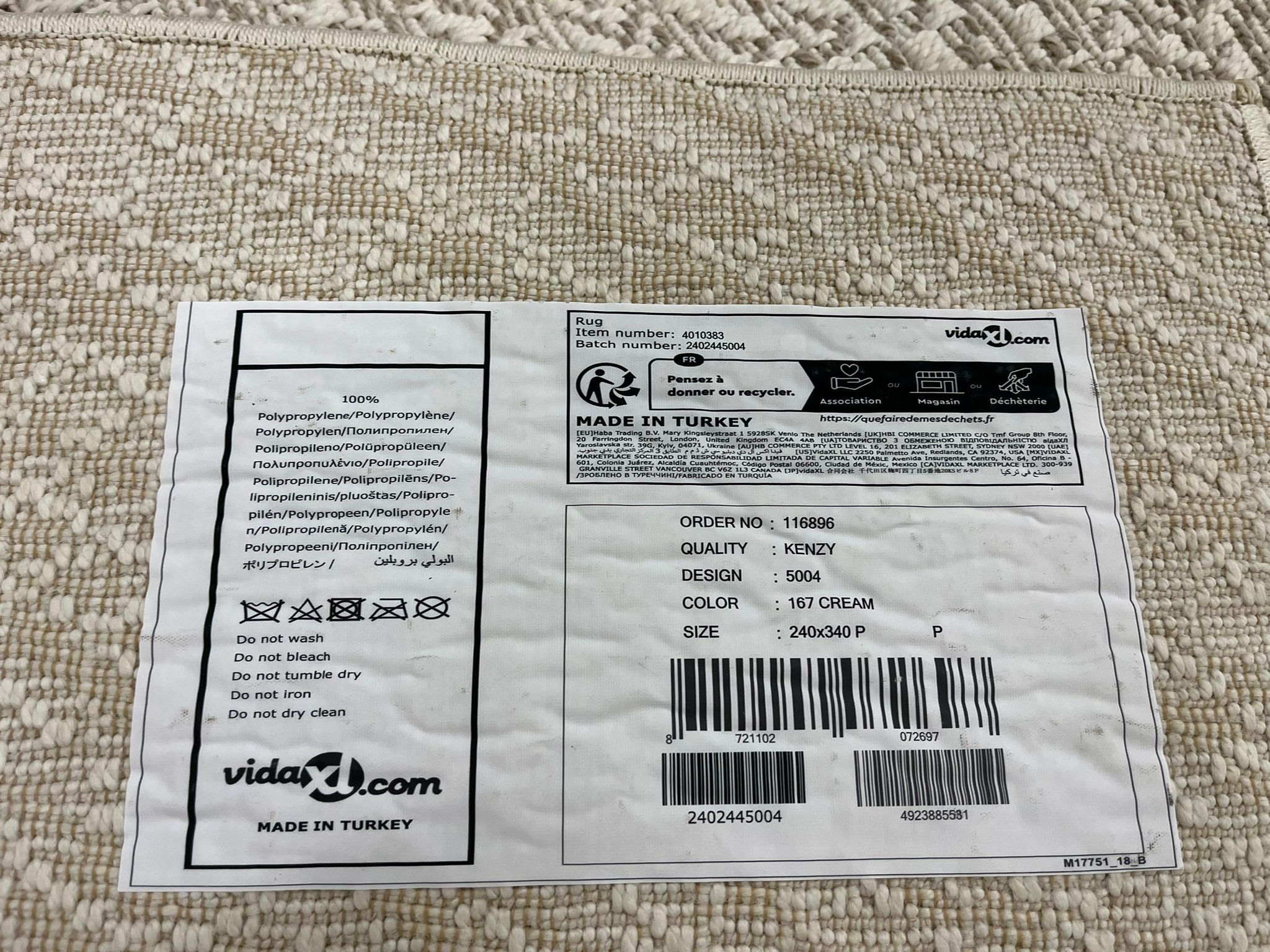 Vidaxl vloerkleed 240x340 kenzy