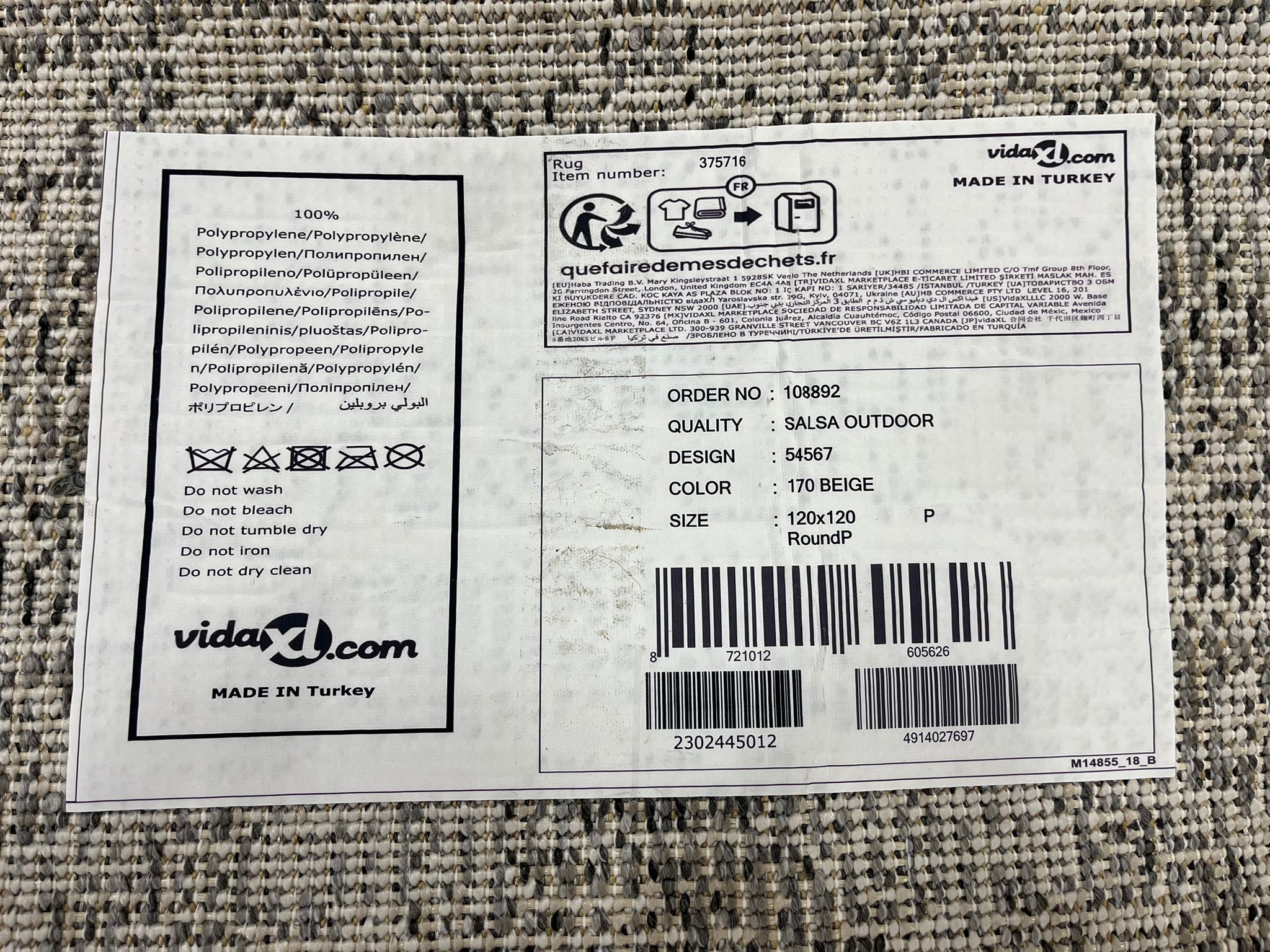 Vidaxl vloerkleed 120x120 salsa outdoor rond