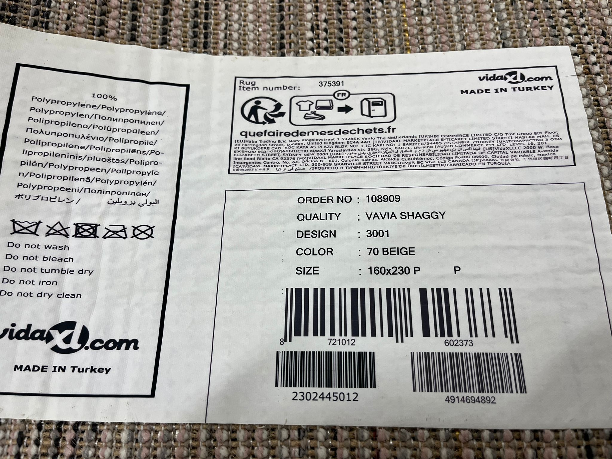 Vidaxl vloerkleed 160x230 vivia shaggy beige