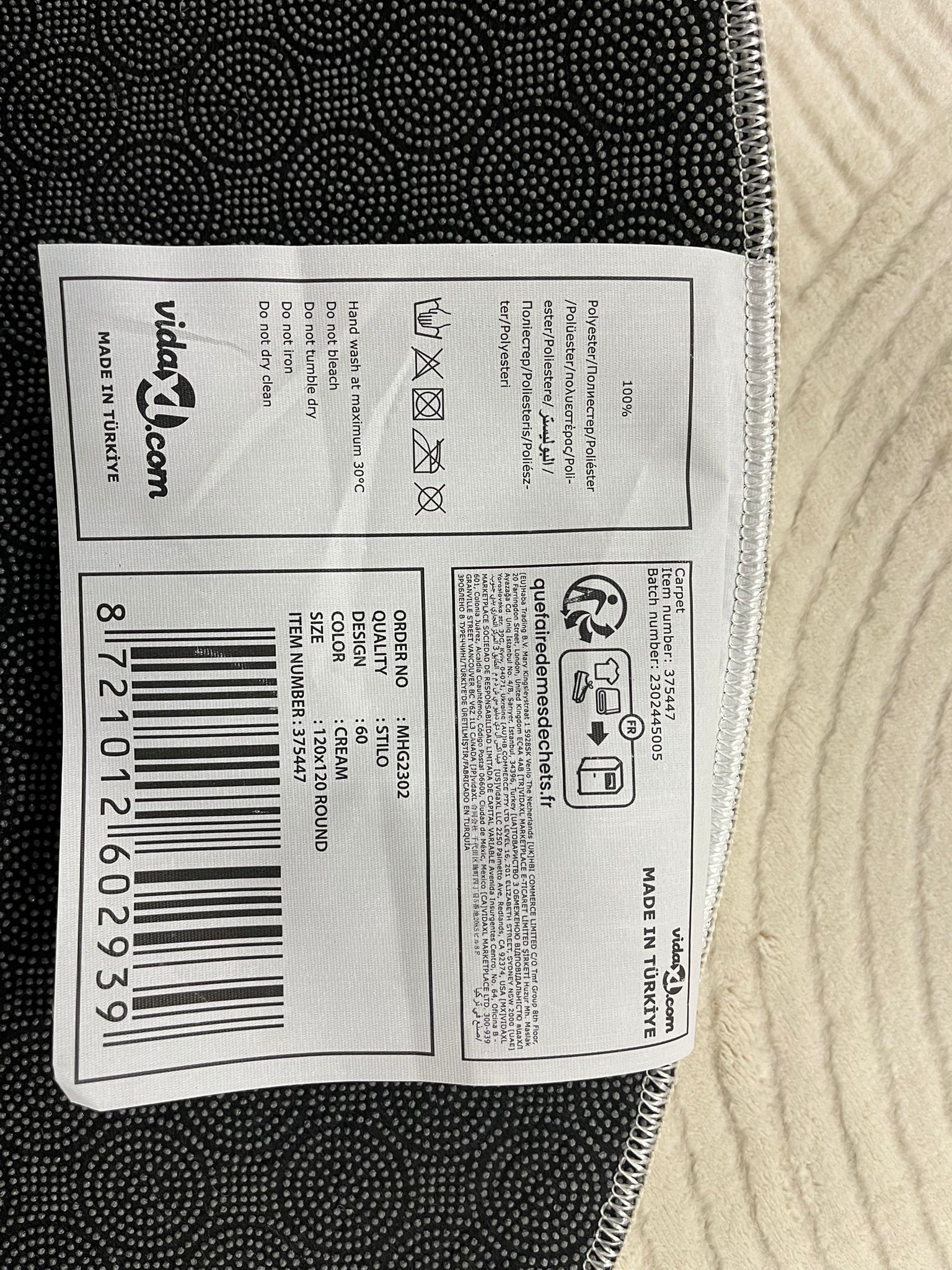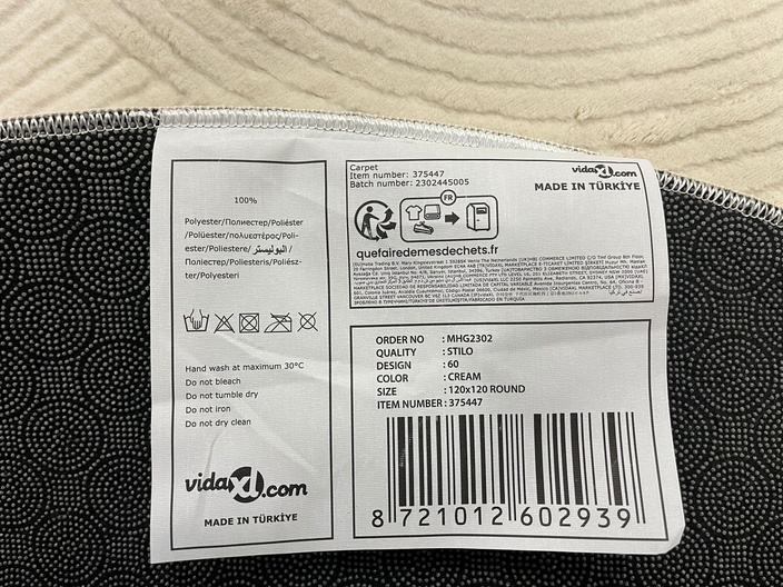 vidaxl vloerkleed stilo 120x120 cream rond