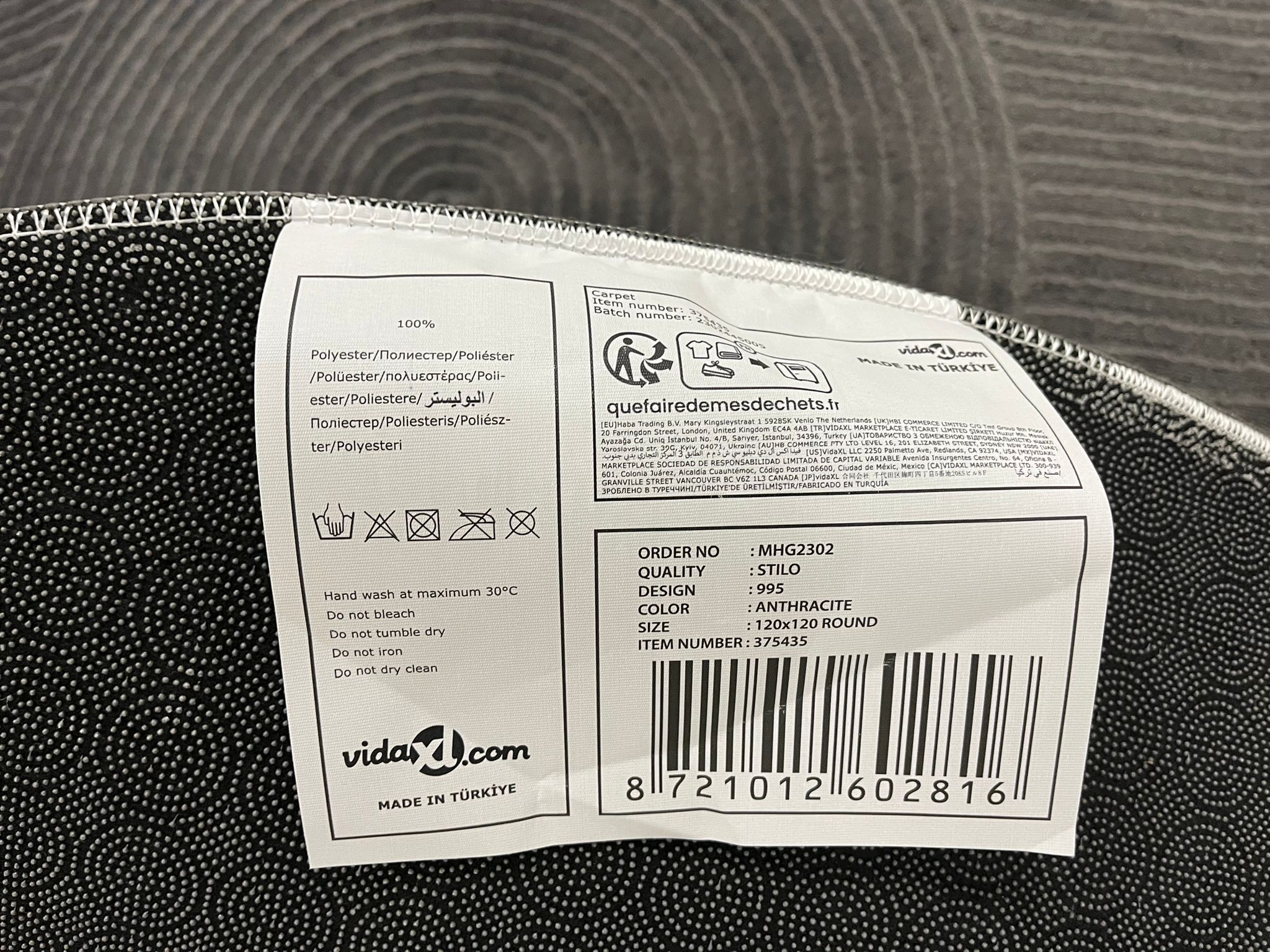 vidaxl vloerkleed stilo 120x120 antraciet rond