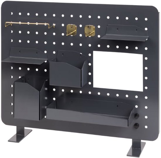 Deze ophangbord-set helpt je om je werkruimte netjes te houden. Gebruik de haken om gereedschap of keukengerei op te hangen, de bakjes voor kleine accessoires en de schappen voor extra opbergruimte. Zo heb je altijd alles binnen handbereik zonder dat je werkblad vol raakt.