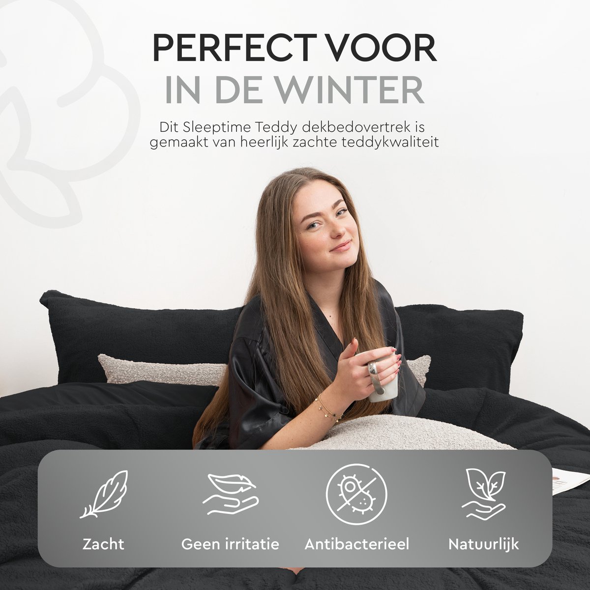 Dekbedovertrek teddy Antraciet 140x220cm+1kussensloop