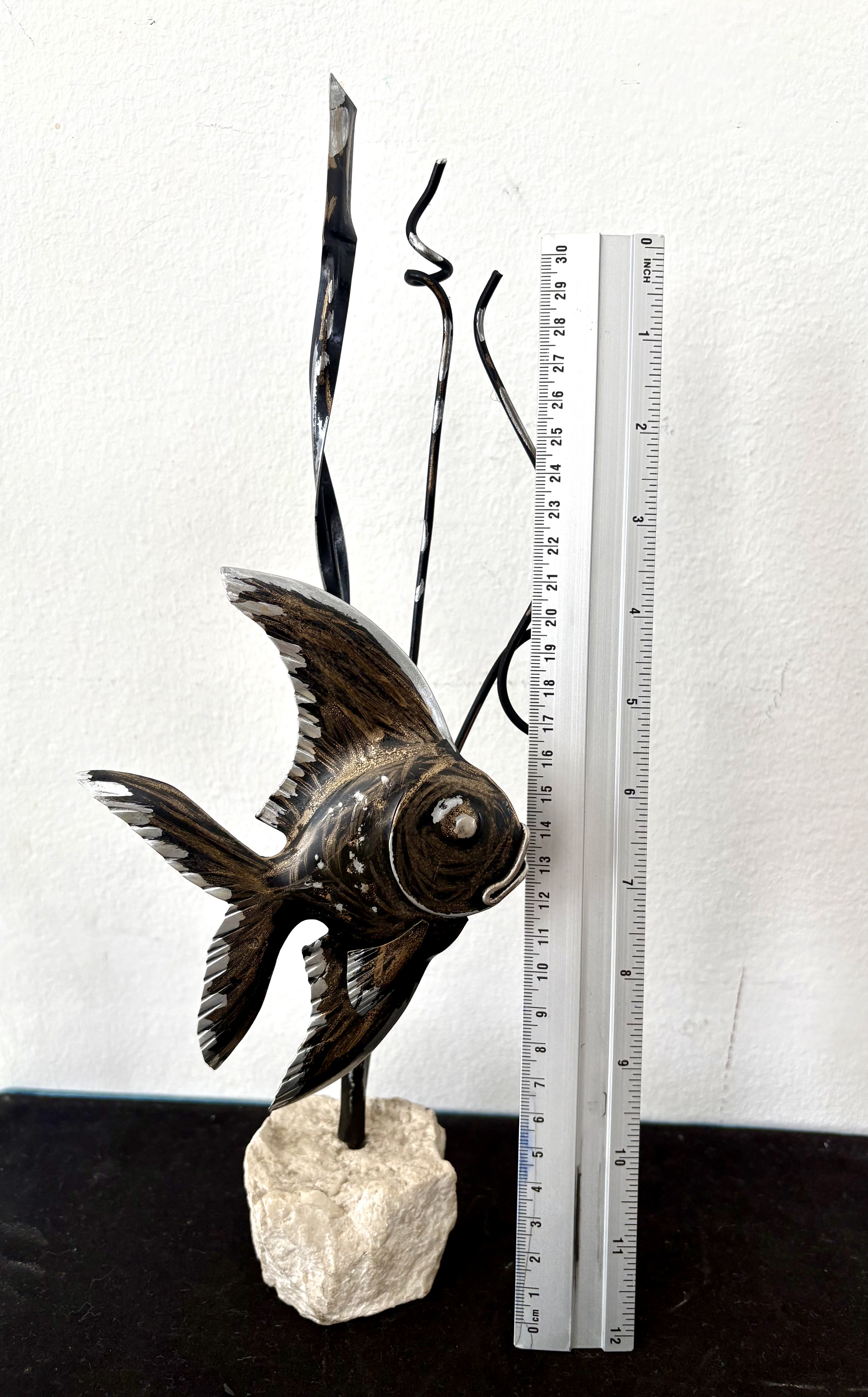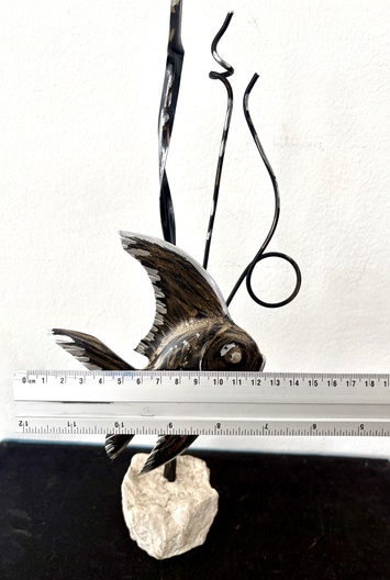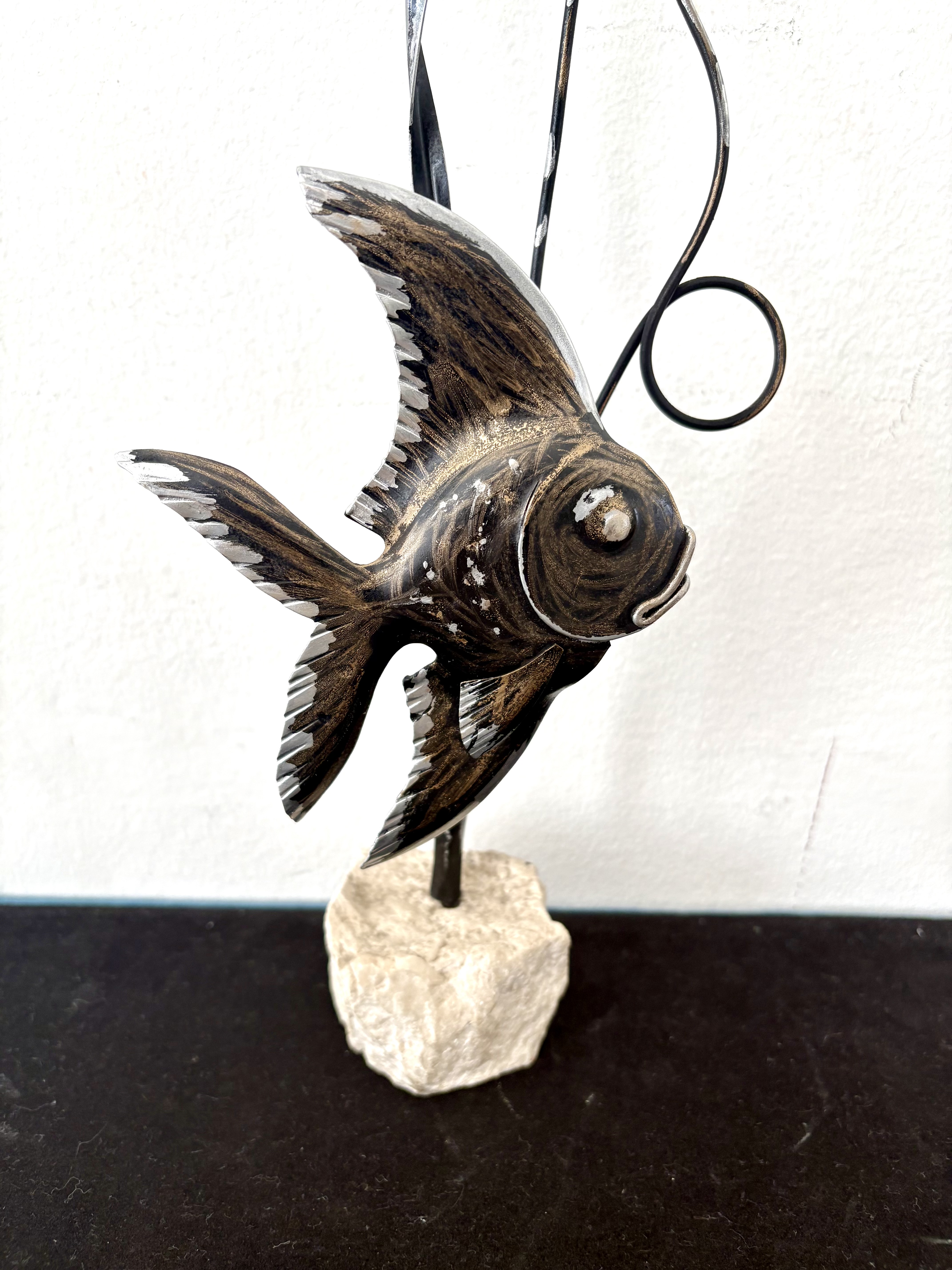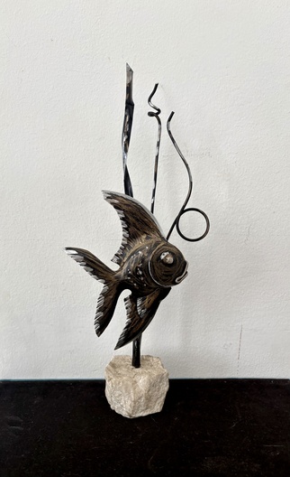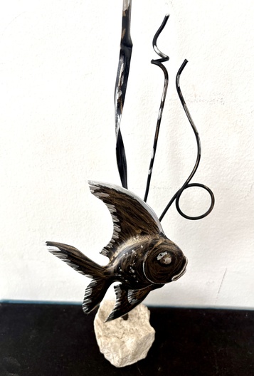Sculpture vis op steen
