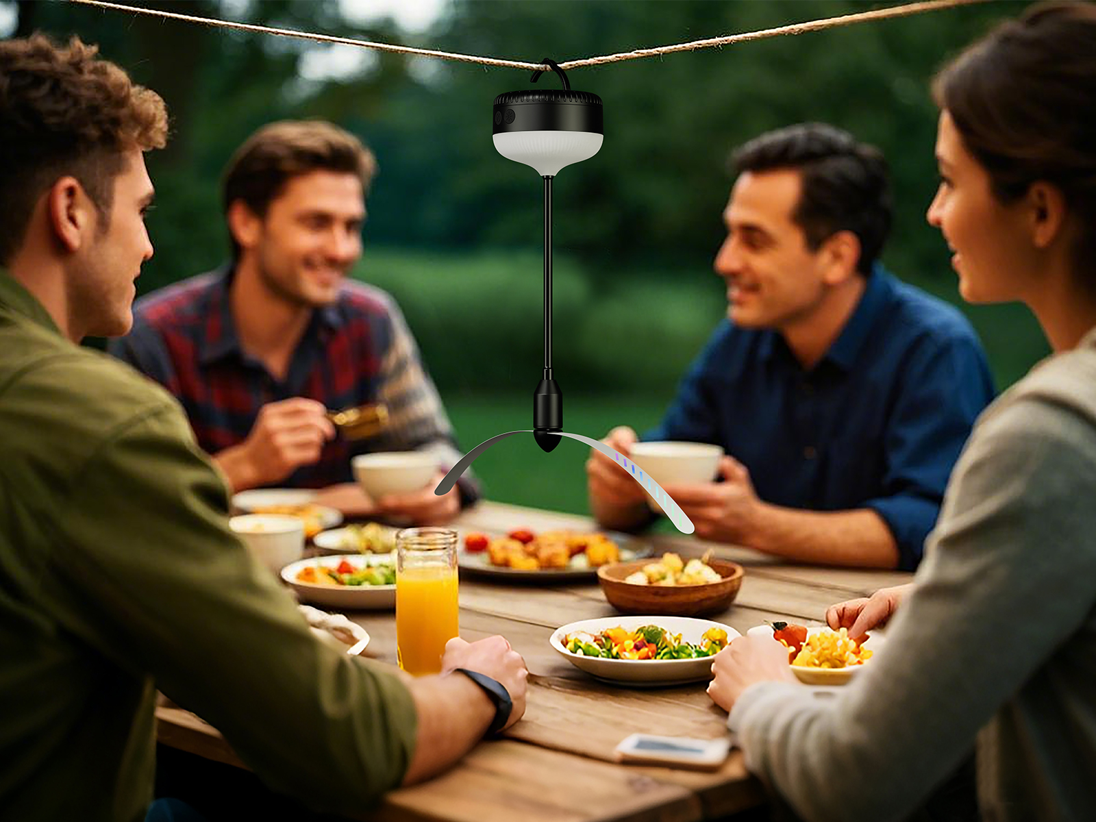 Voorzien van een warme gele verlichting die niet alleen insecten afweert, maar ook zorgt voor een gezellige sfeer in de avond.