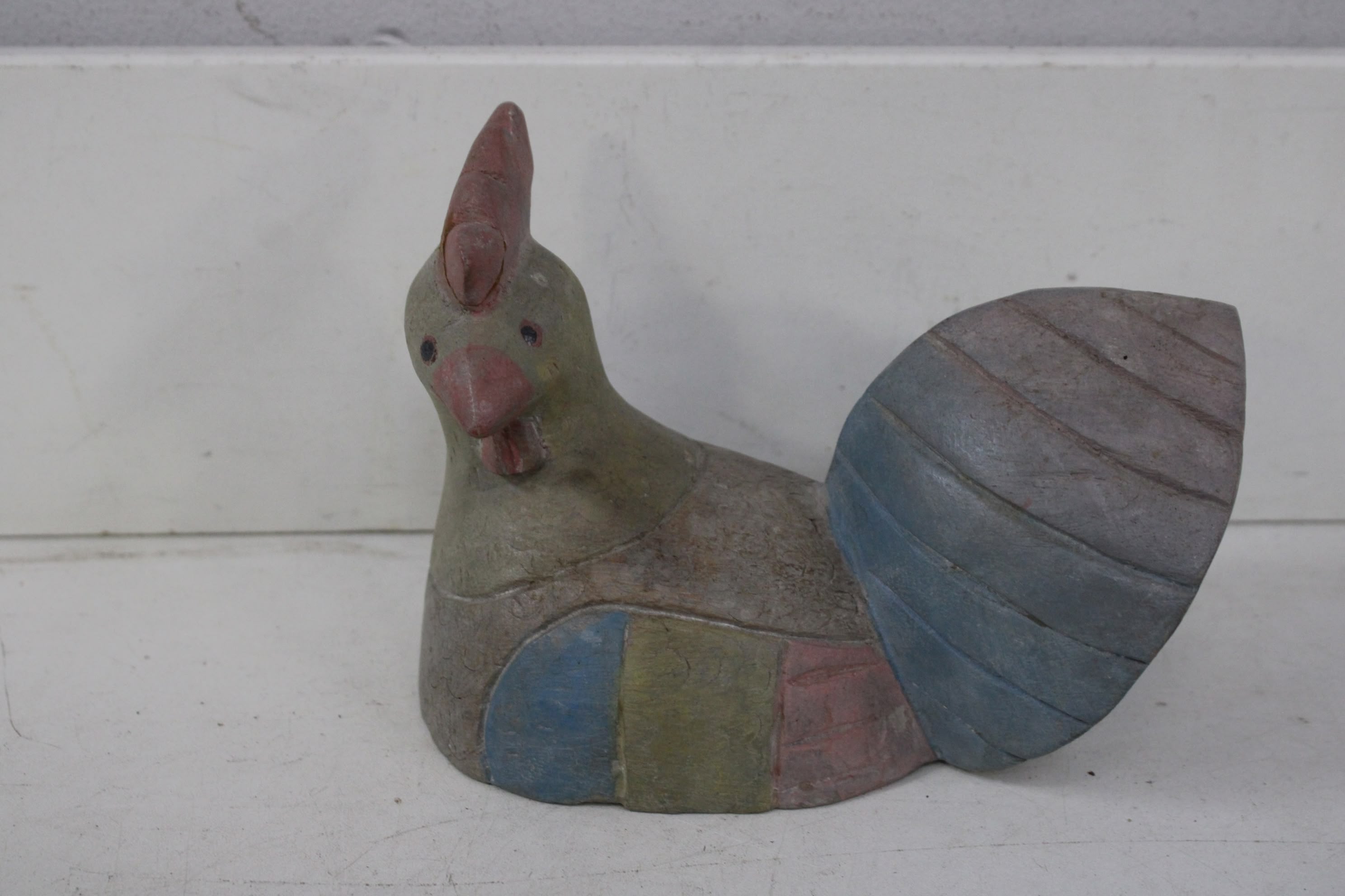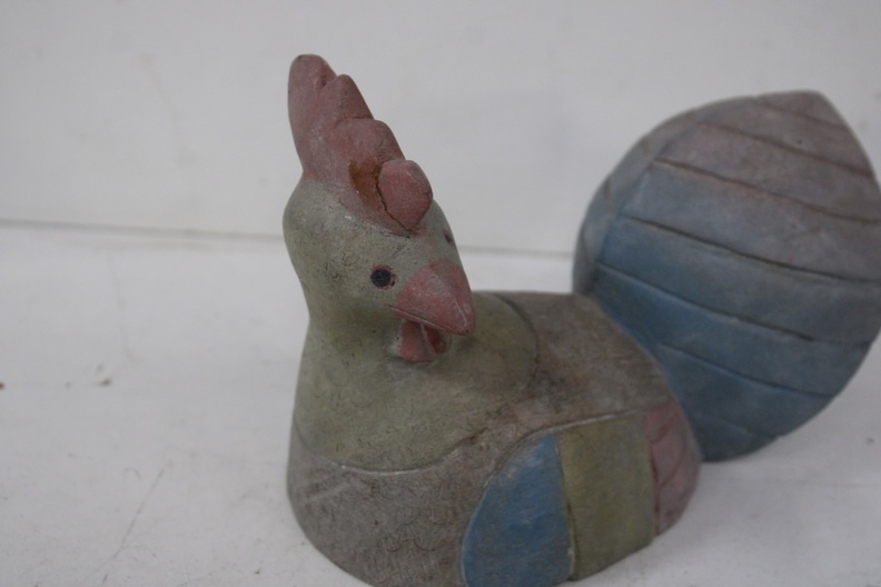 Vintage Gestoken Houten Kip'