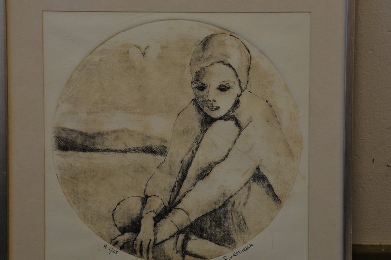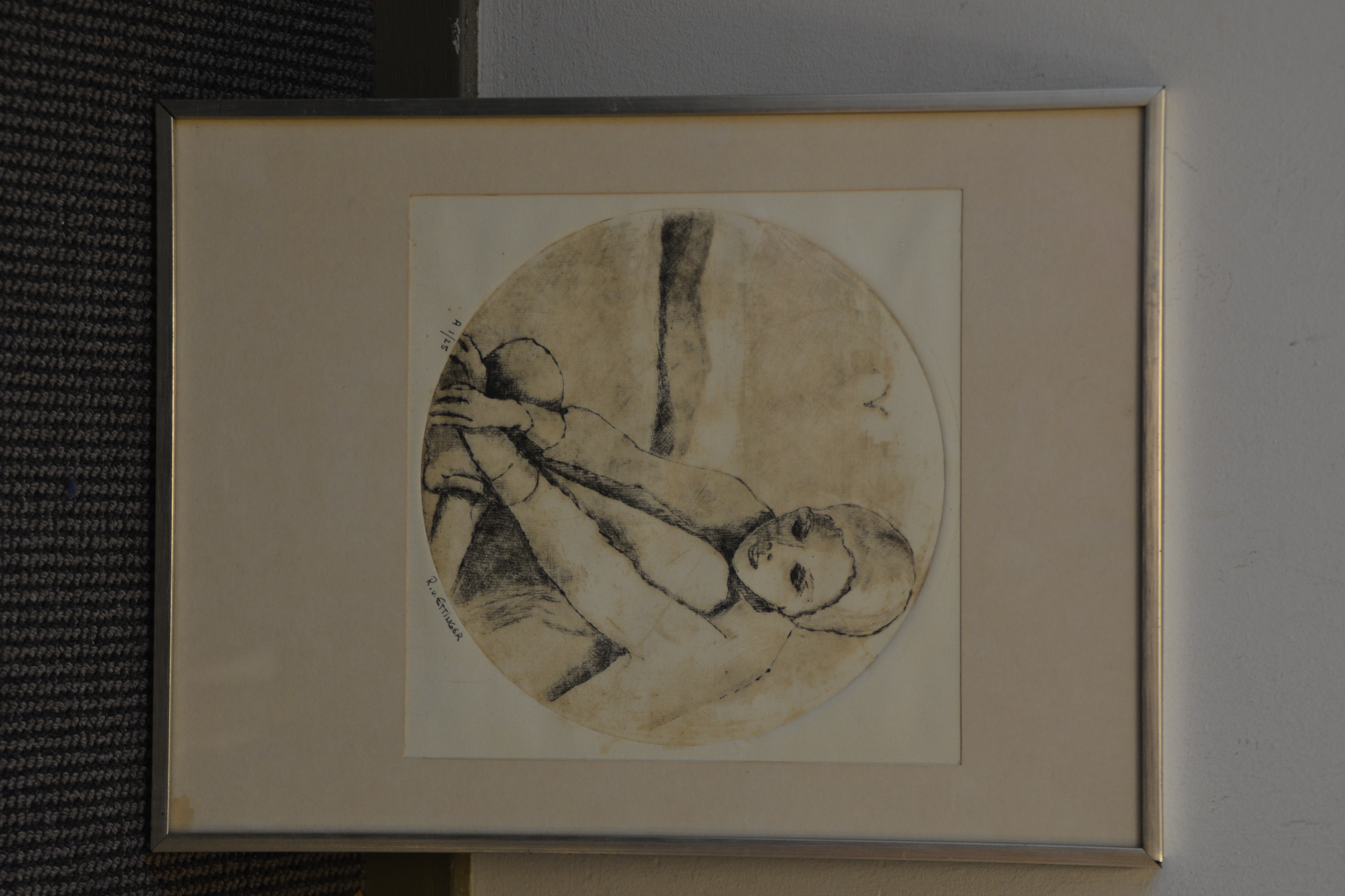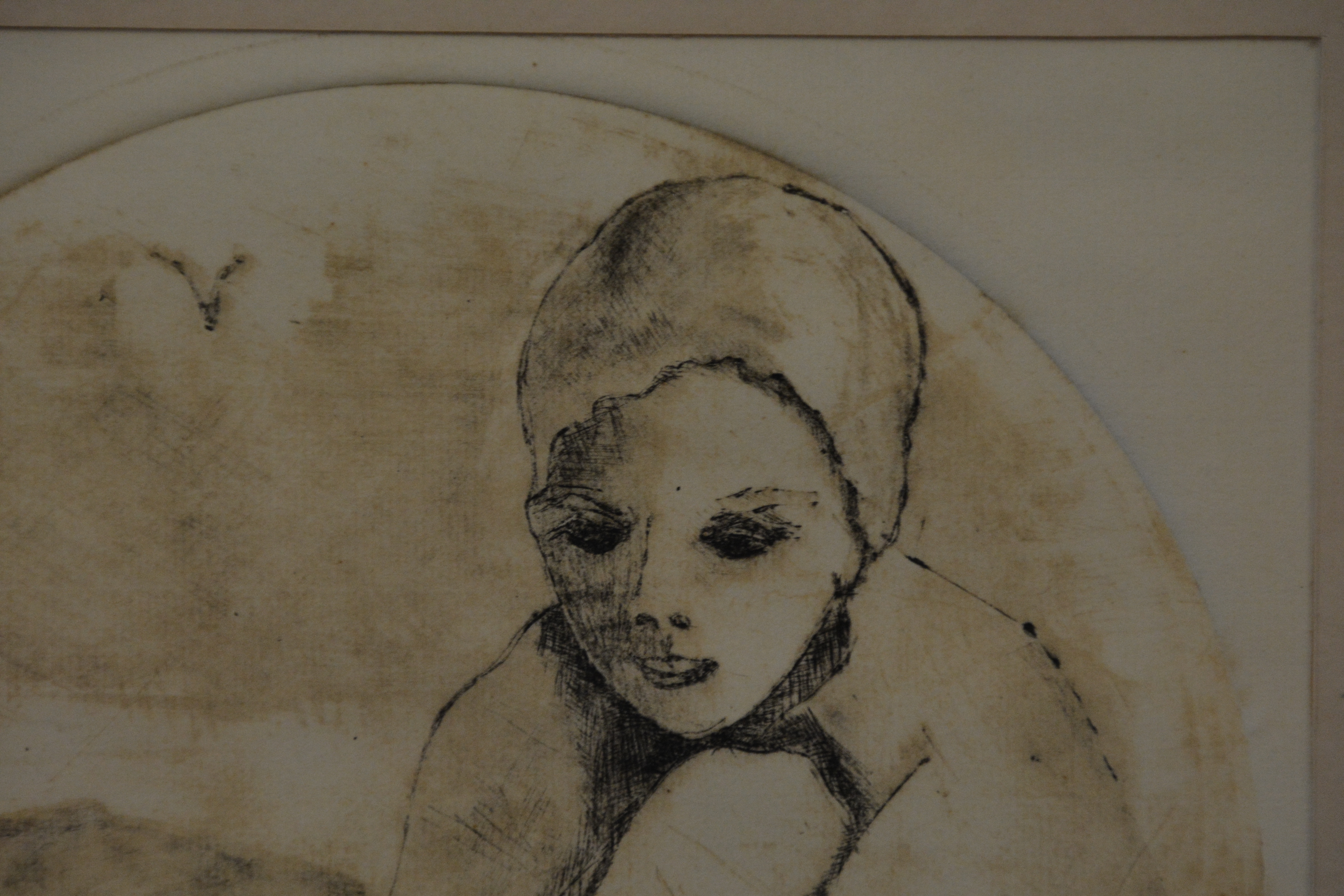Ingelijste ets: Vrouw met badmuts, no. 1/25 stuks.