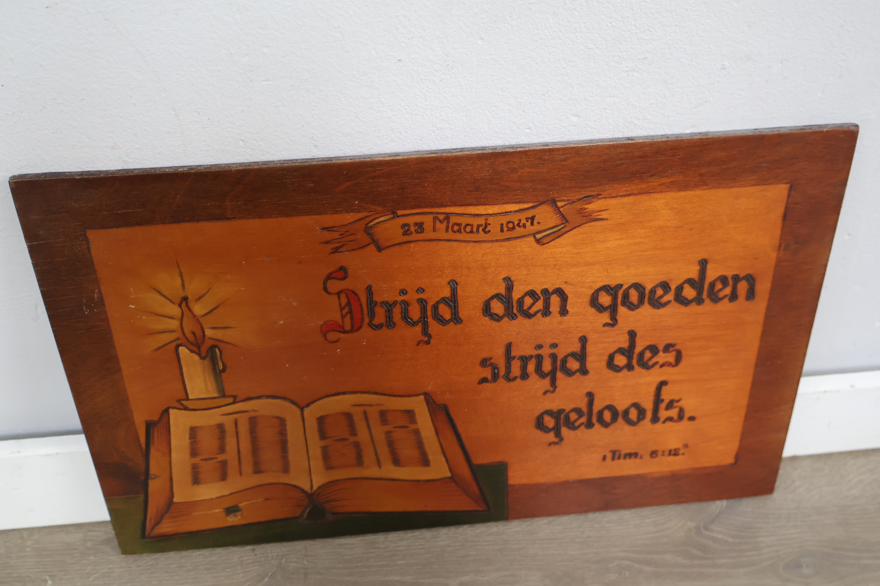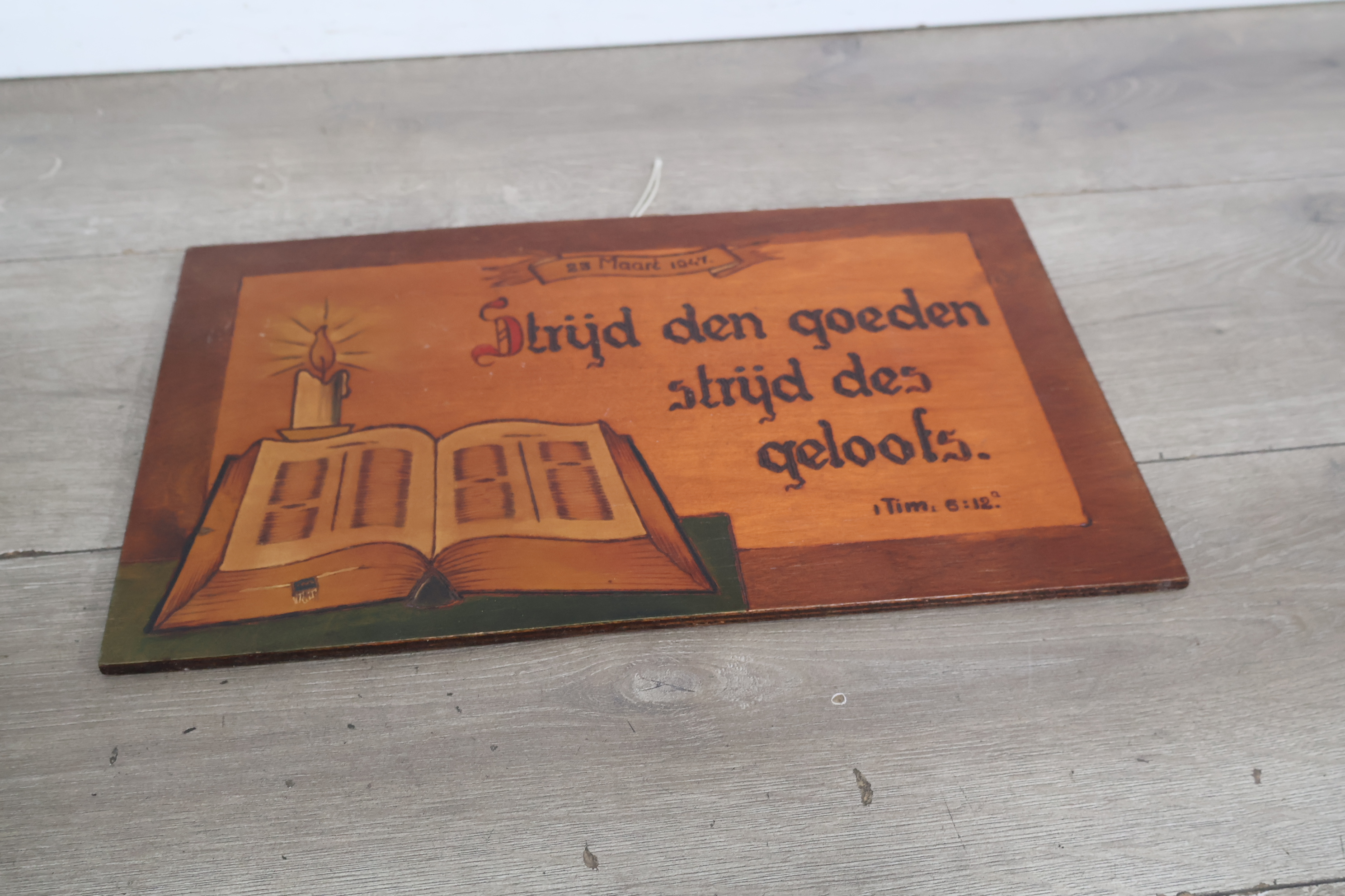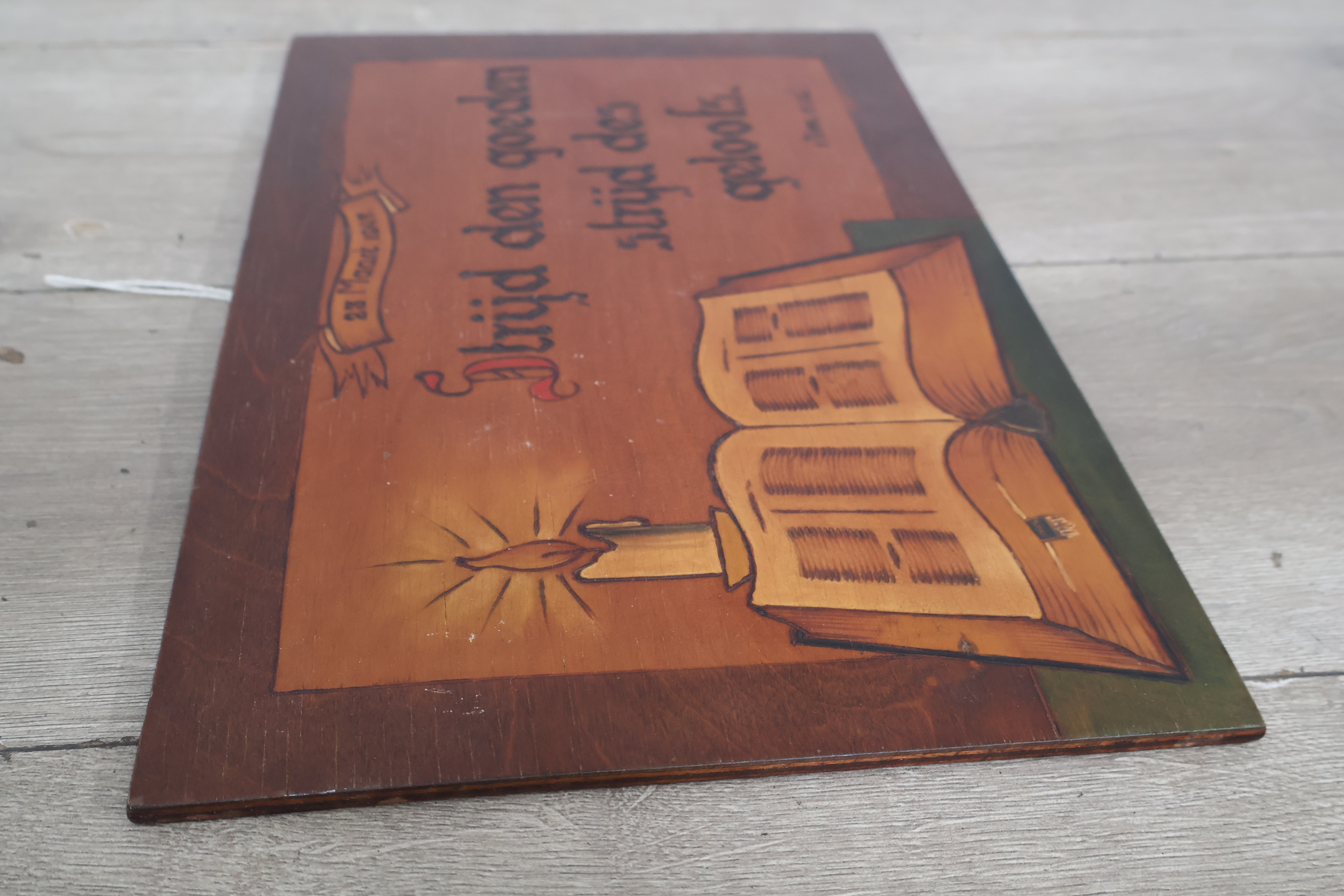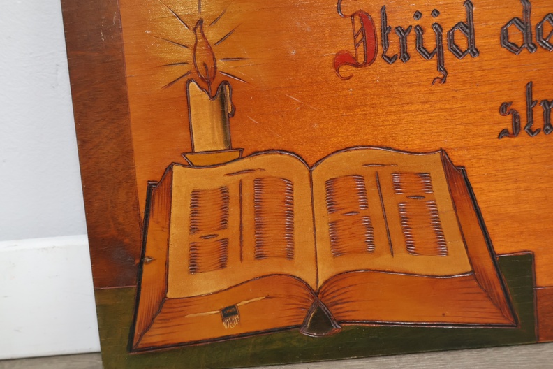 Religieuze houten wandbord