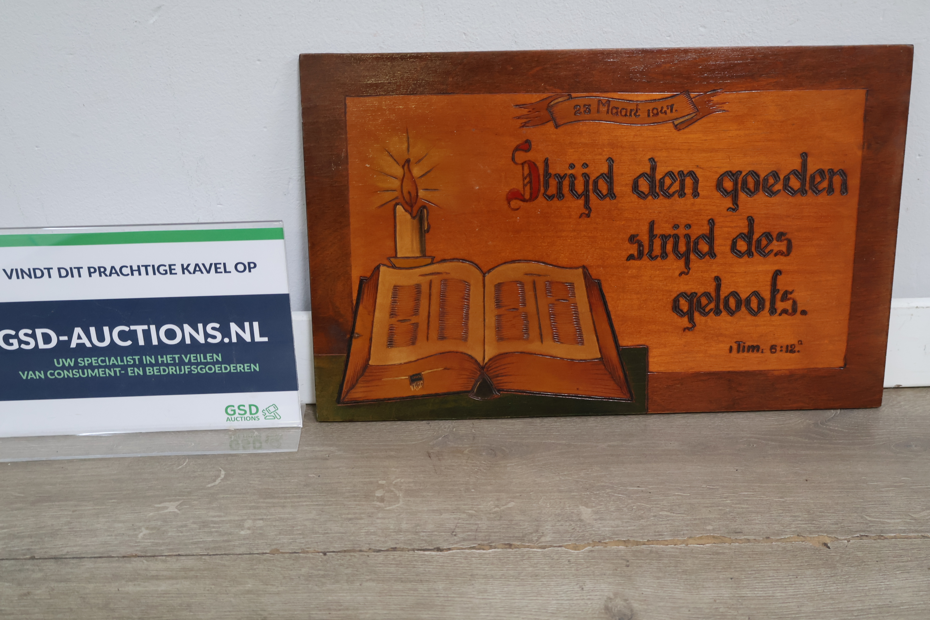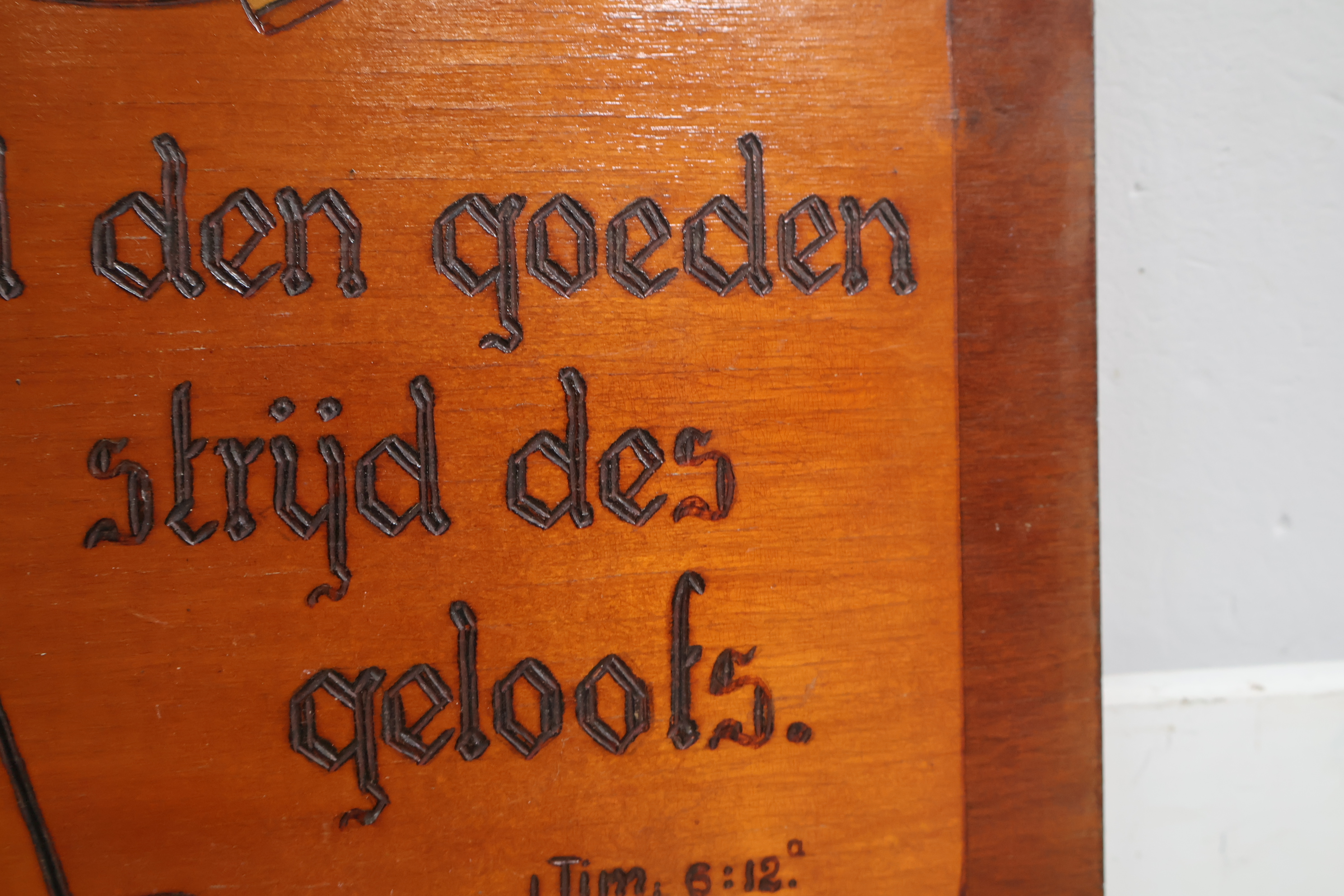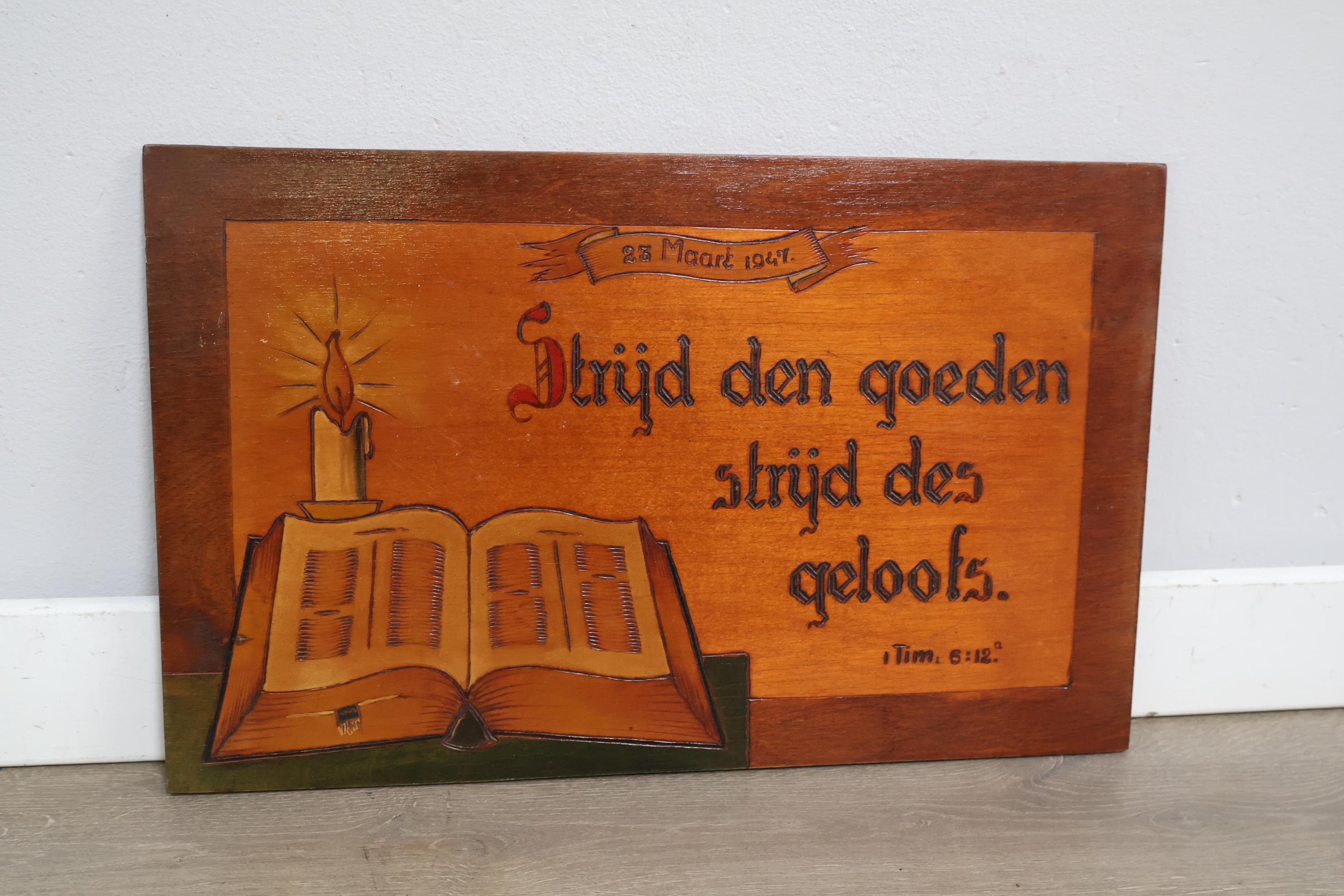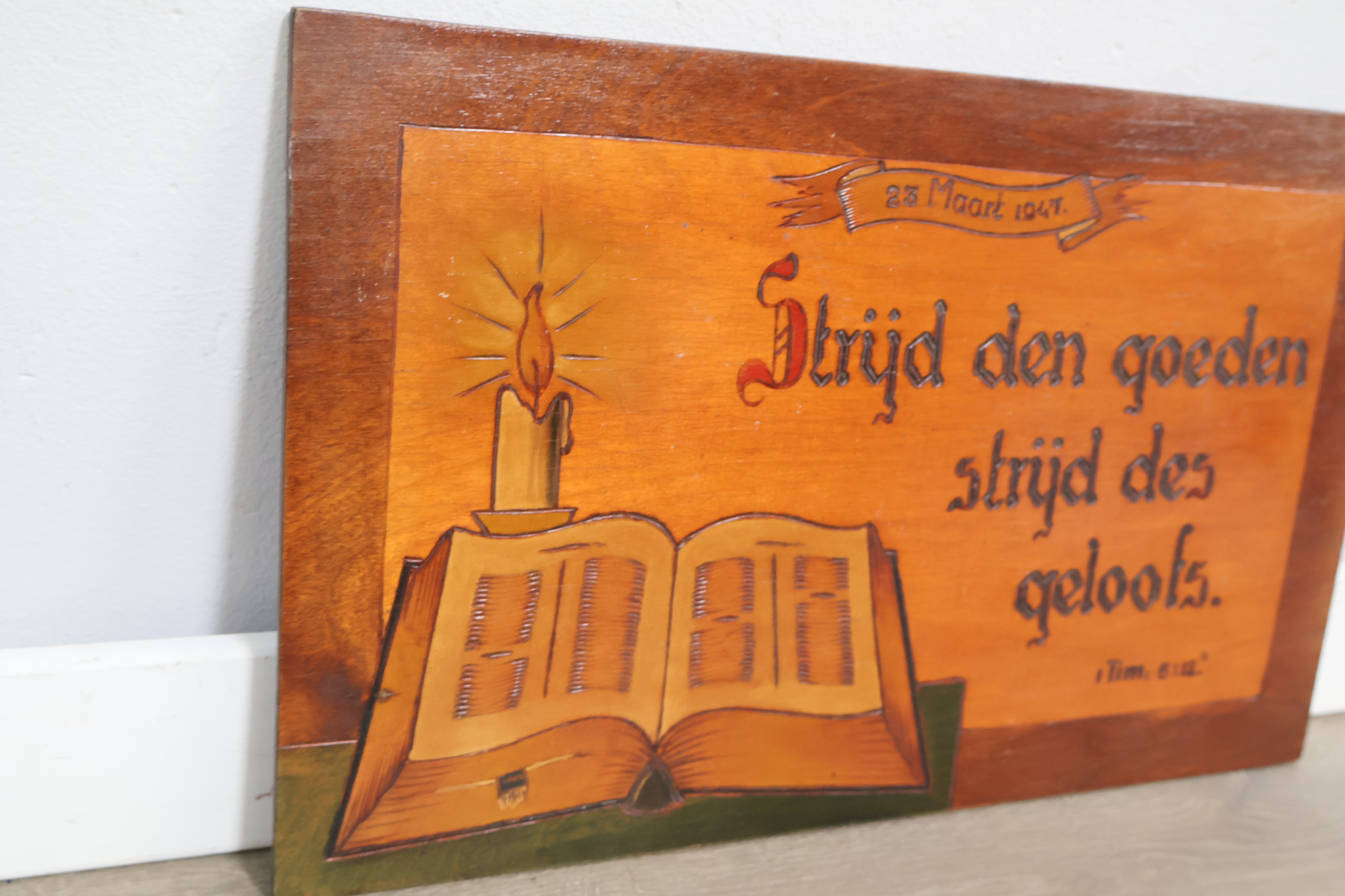 Religieuze houten wandbord