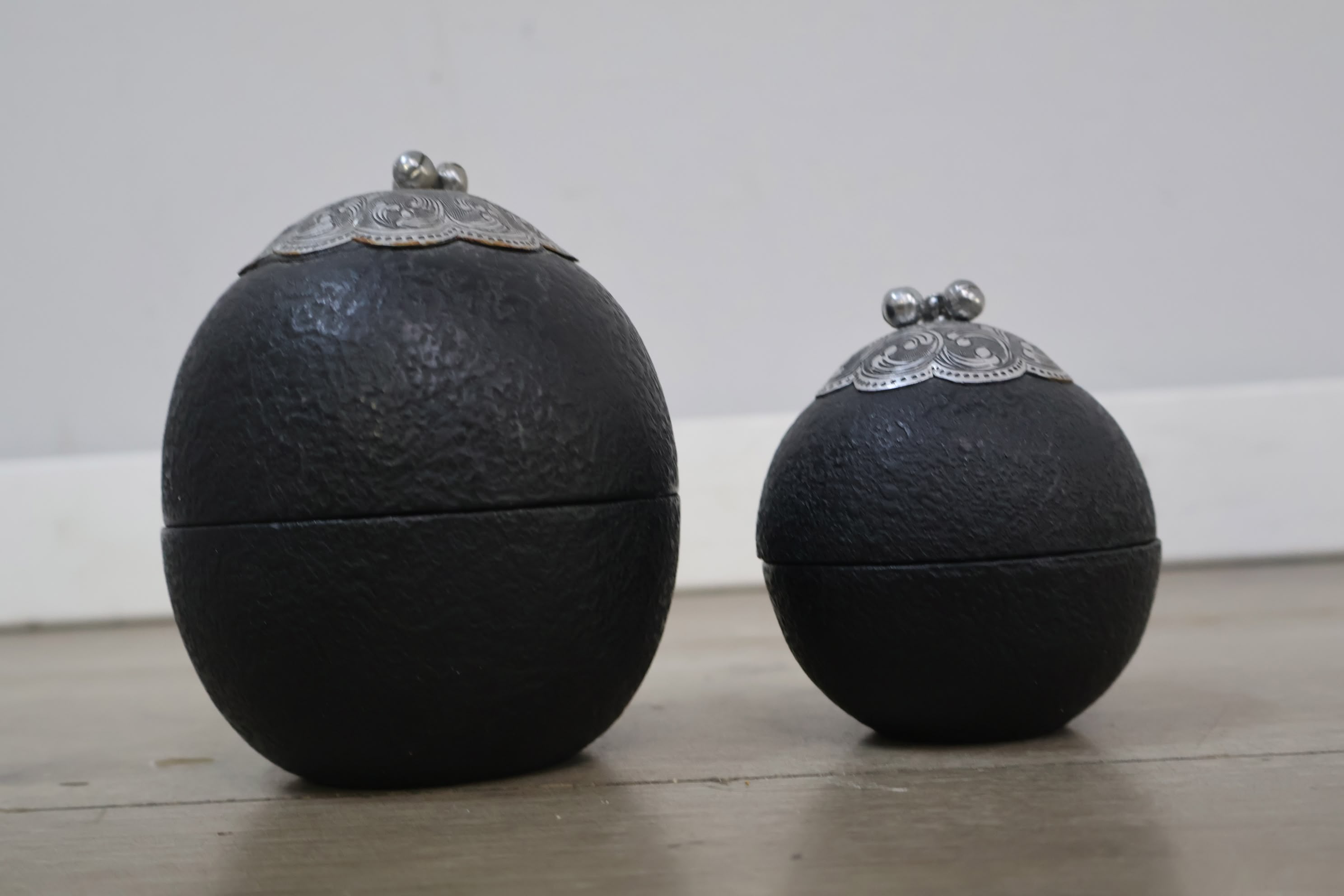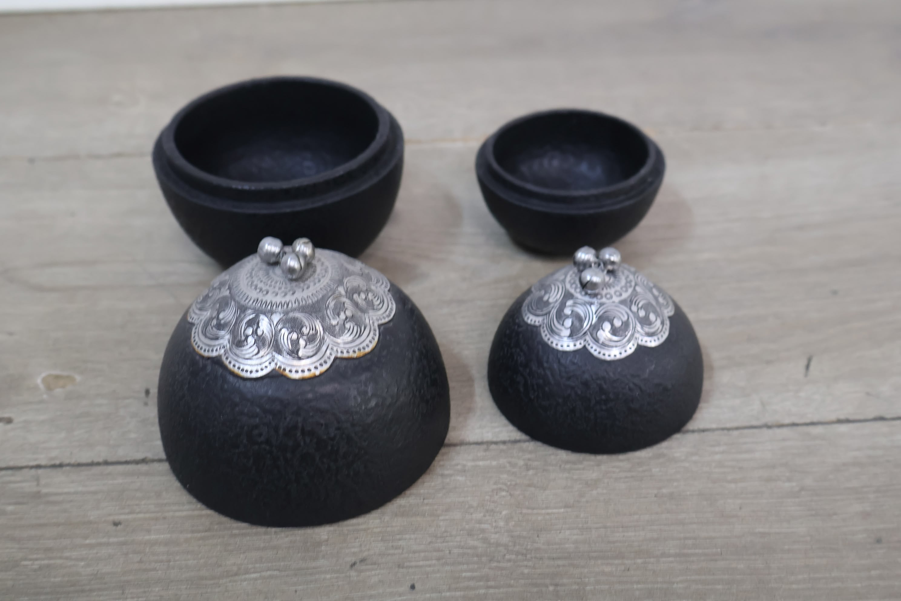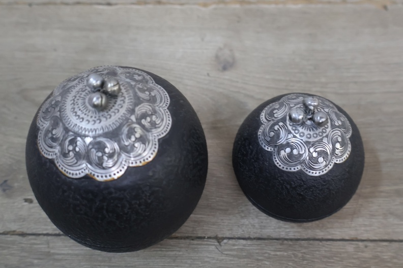 Set van 2 Zwarte Trinket Boxes met Metalen Deksels
