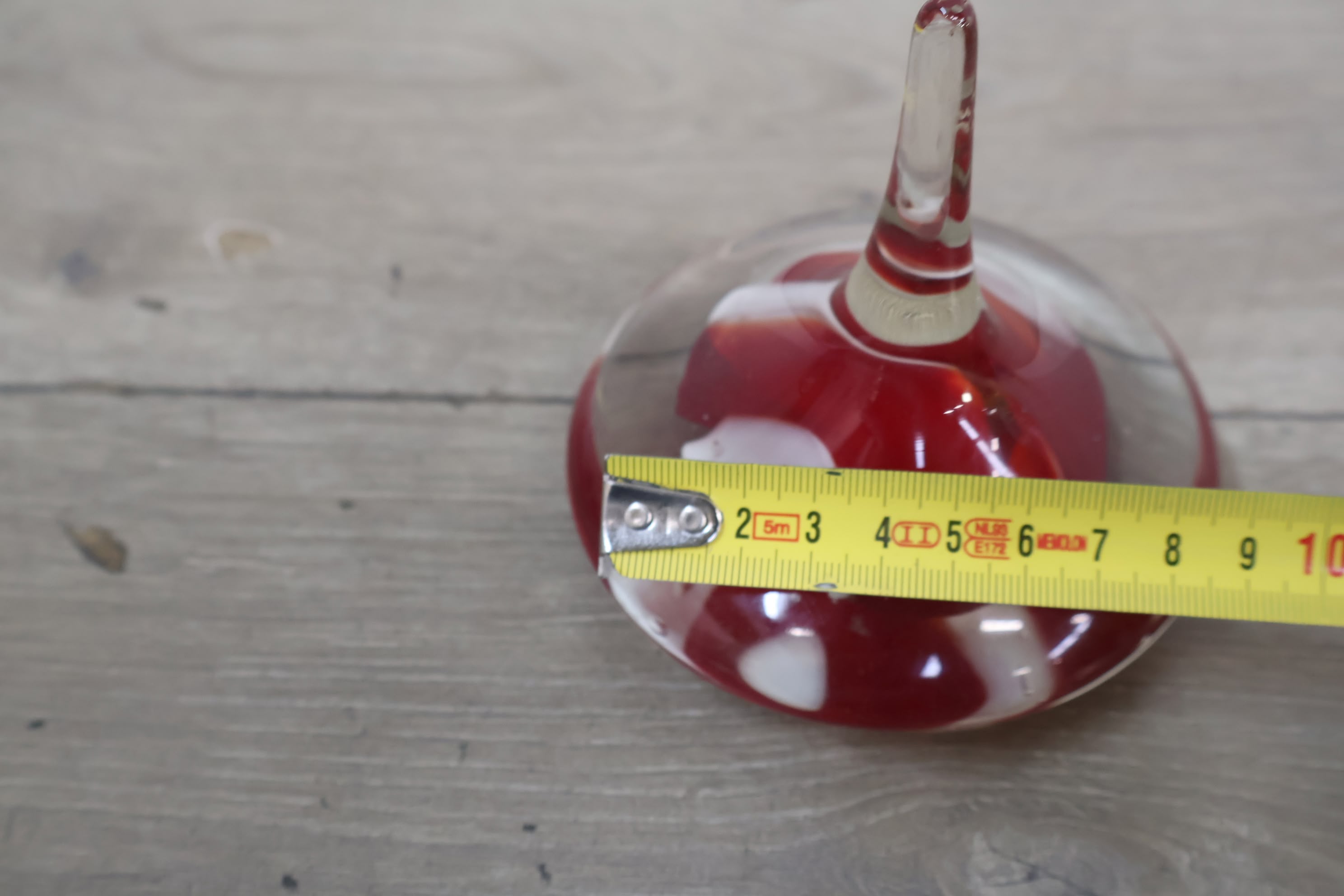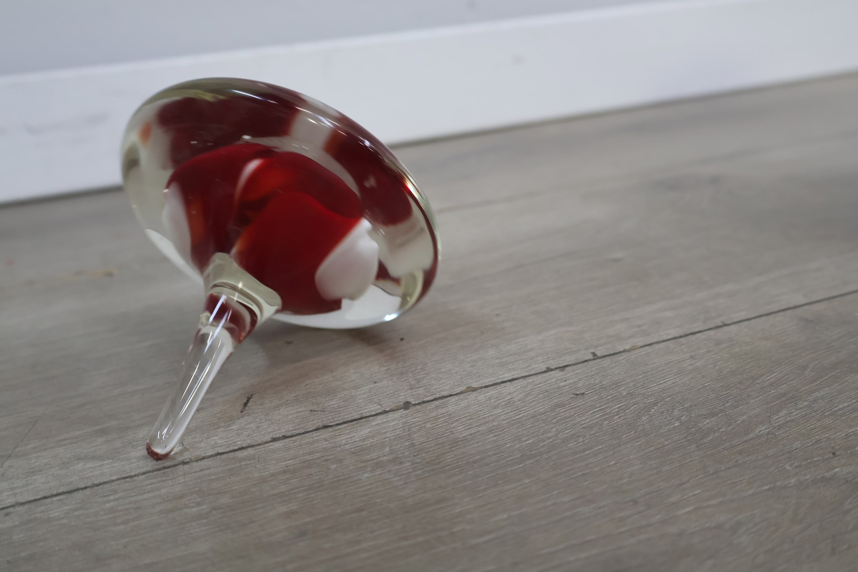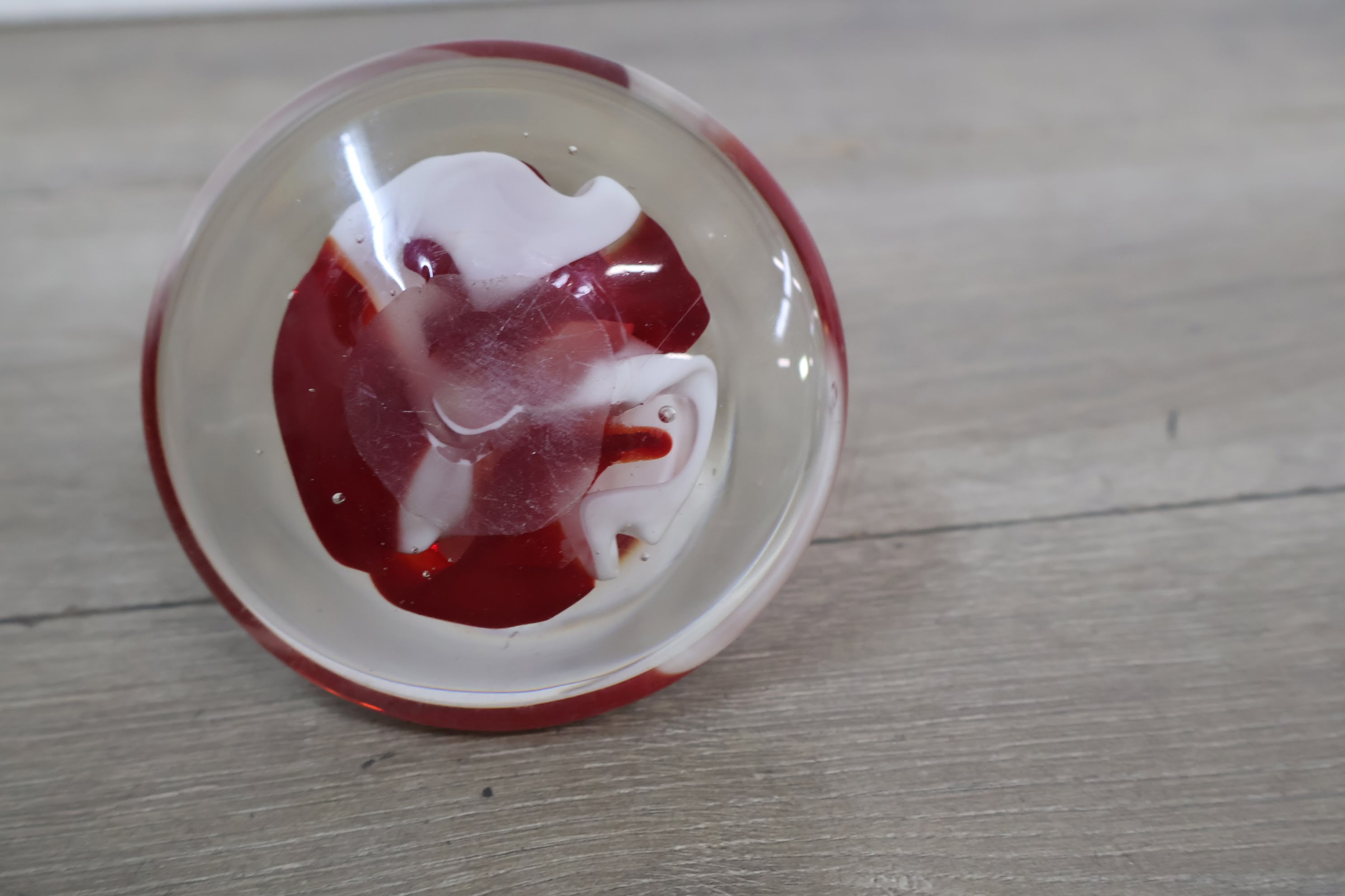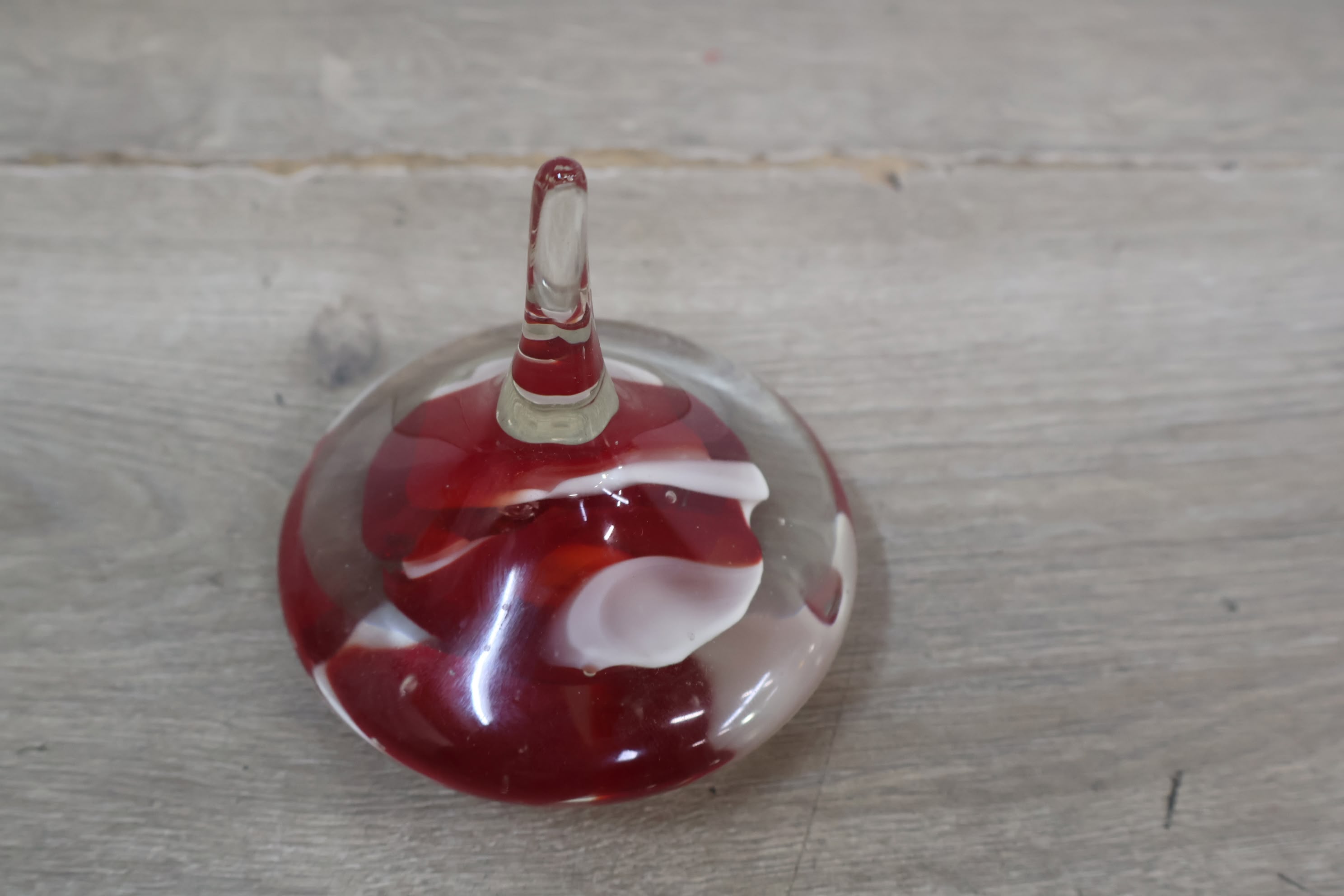 Vintage Glazen Presse-Papier met Rood/Witte Tinten