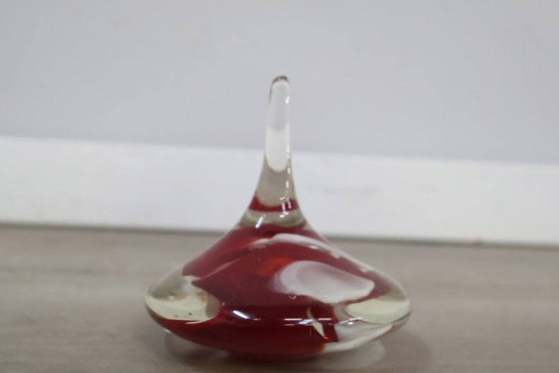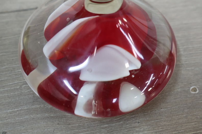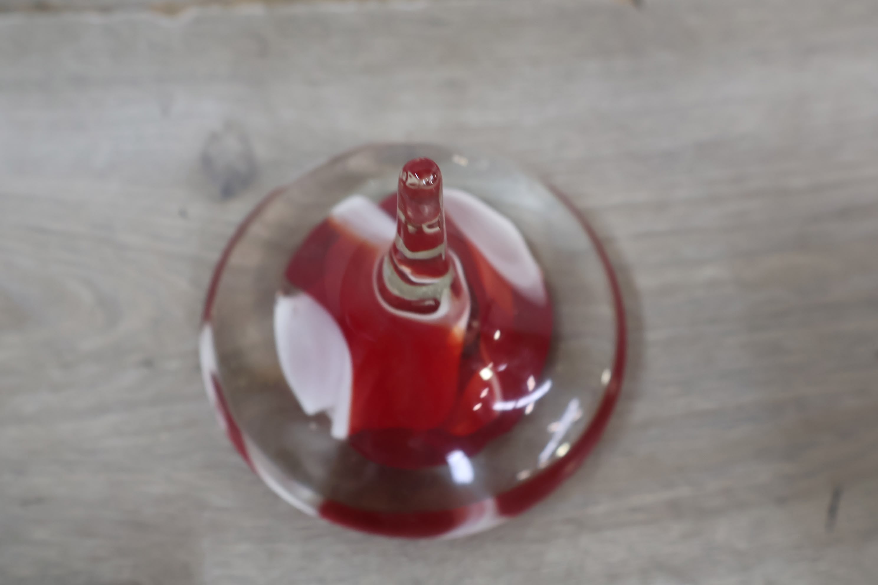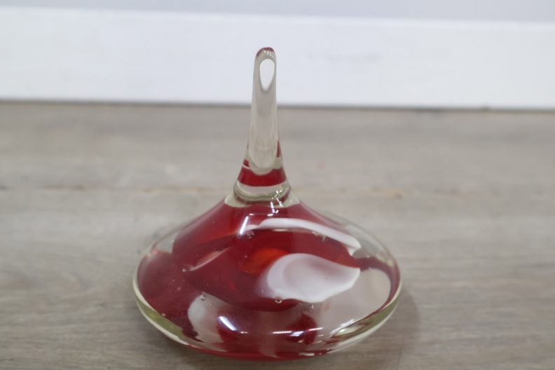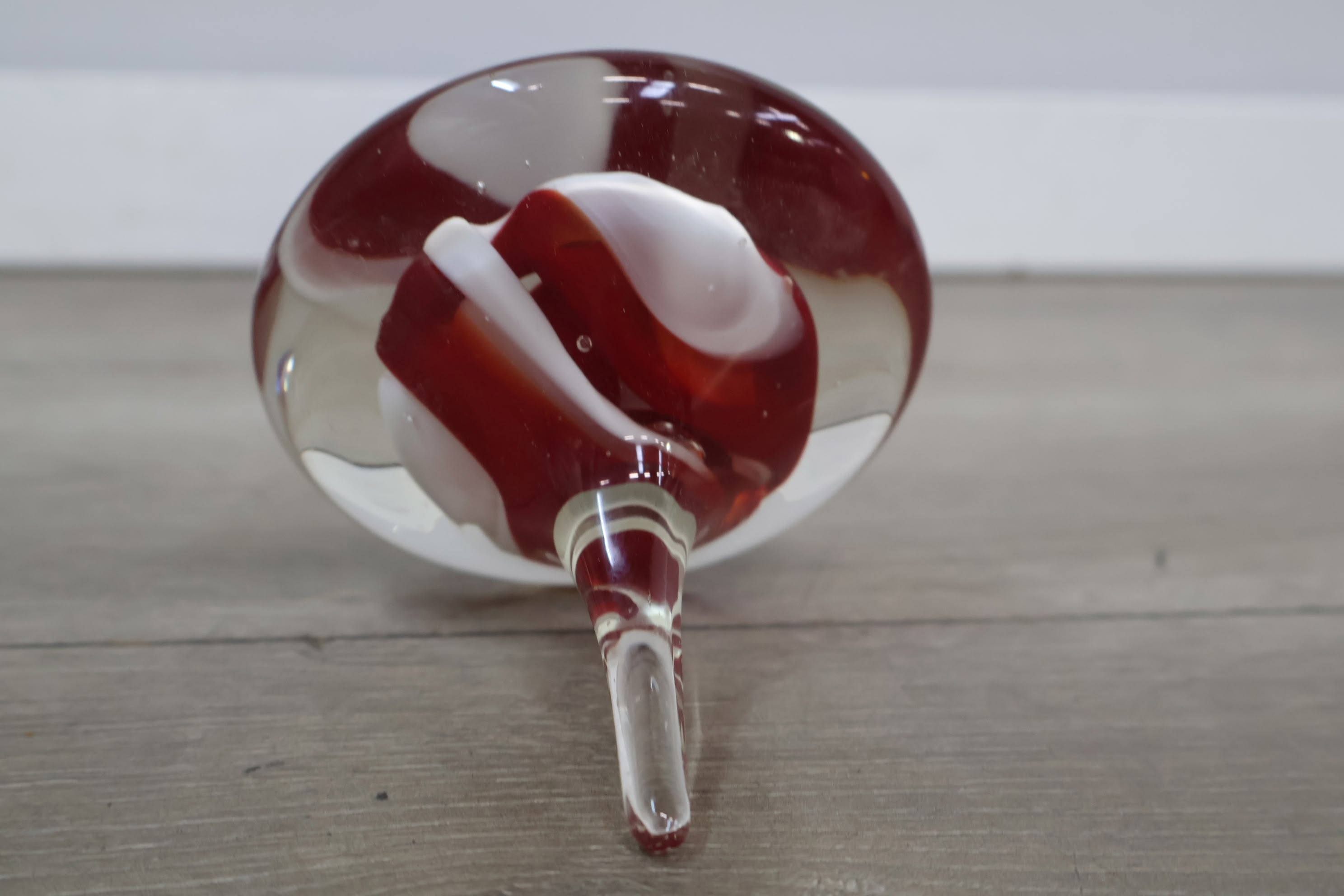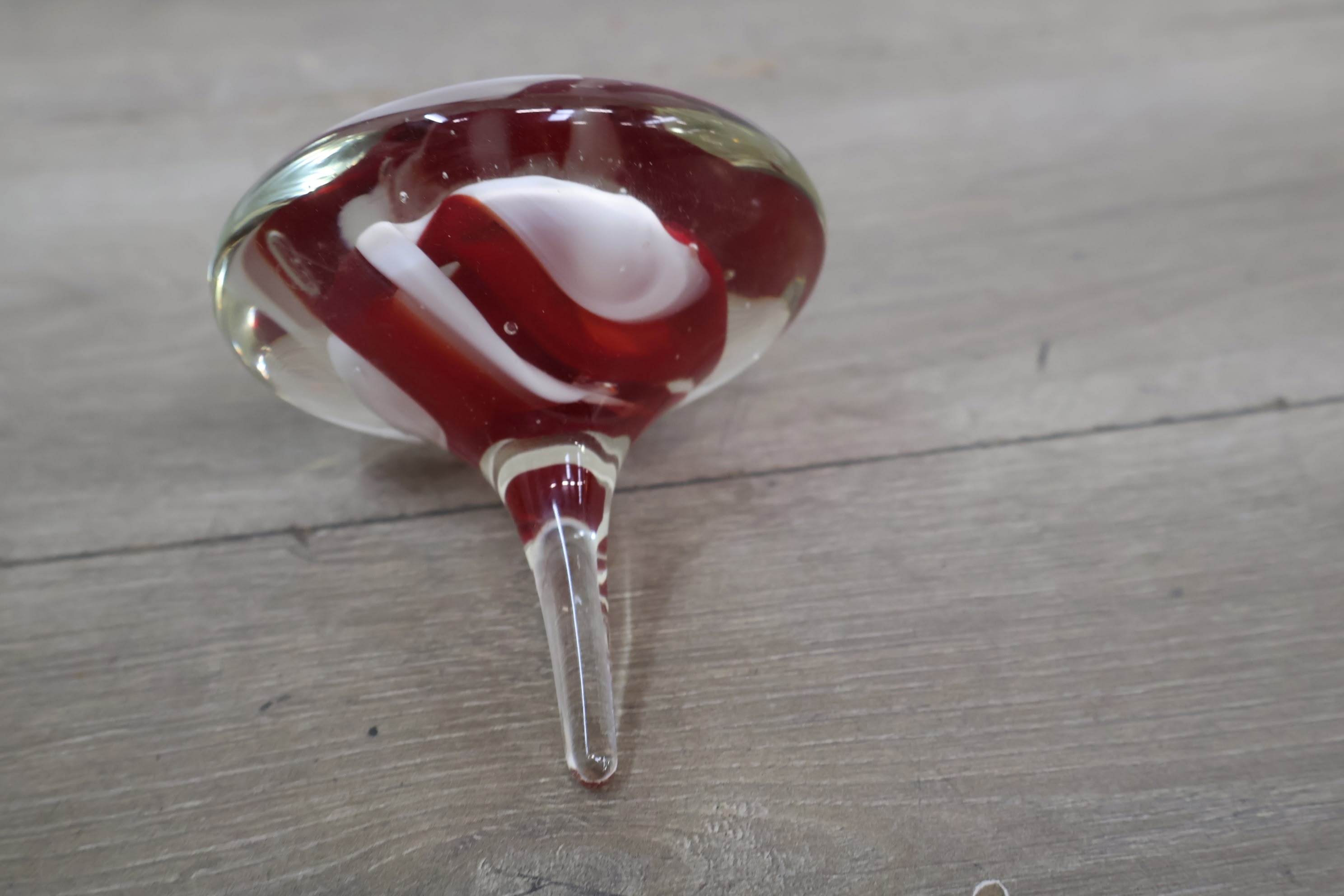 Vintage Glazen Presse-Papier met Rood/Witte Tinten